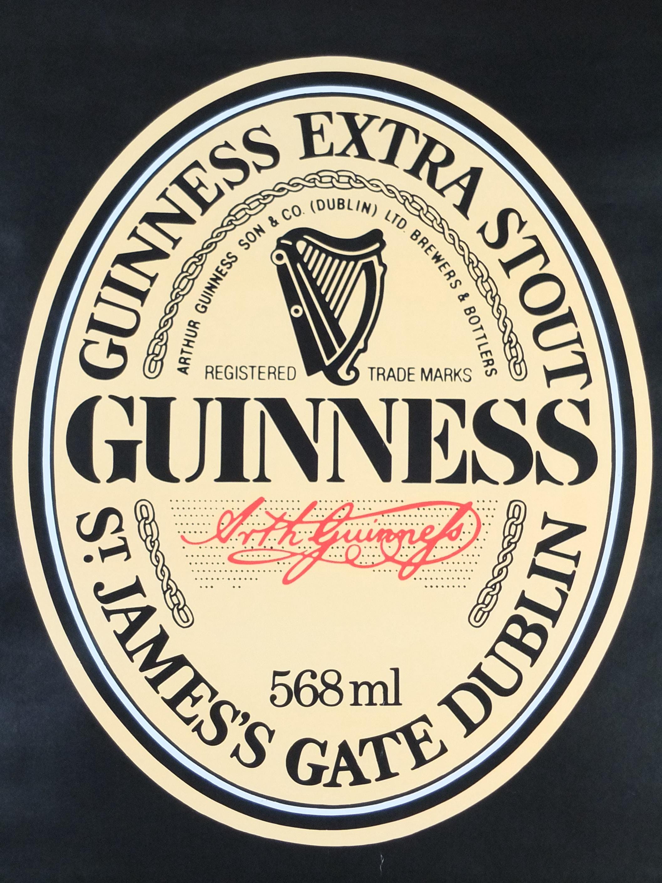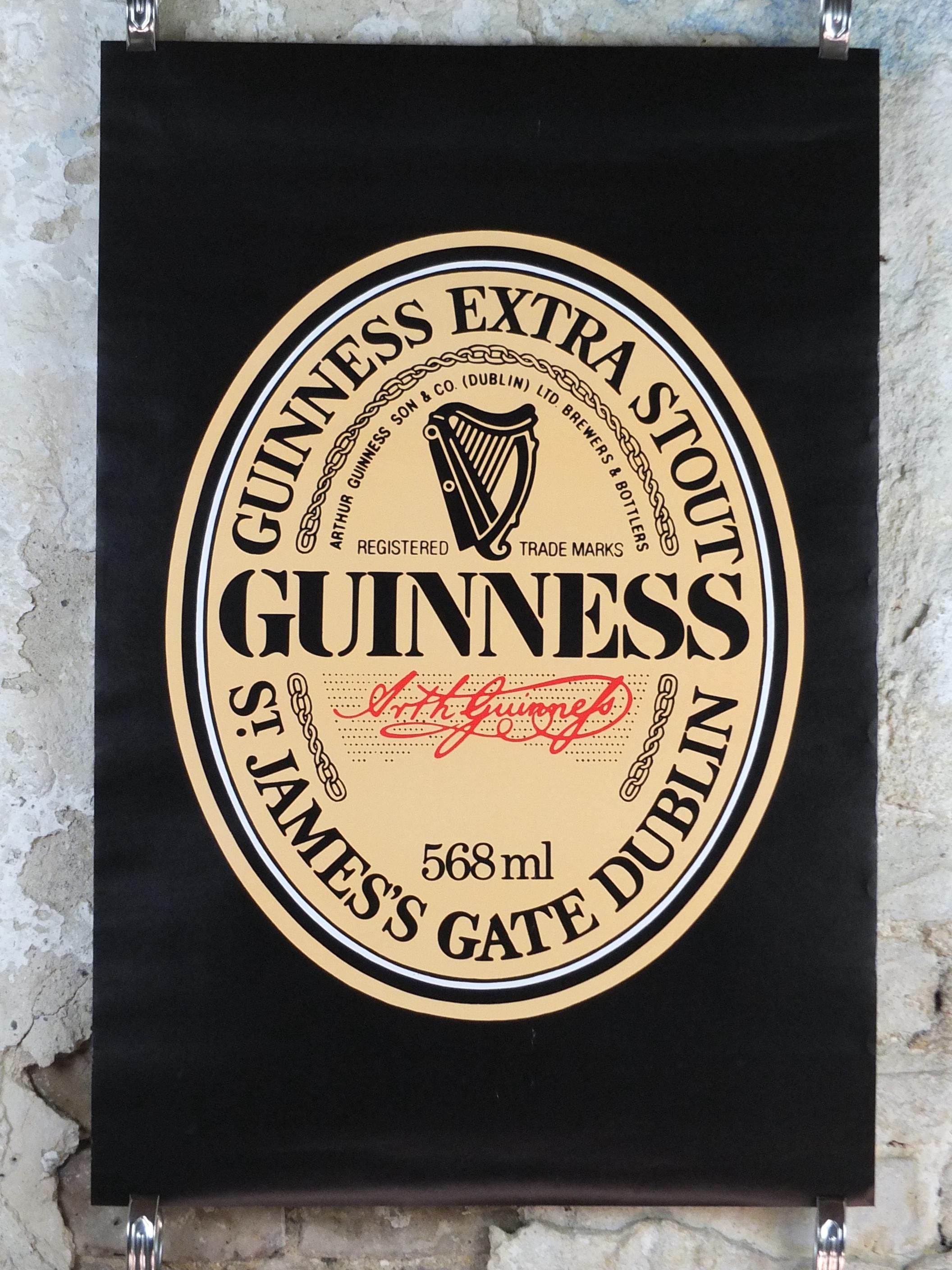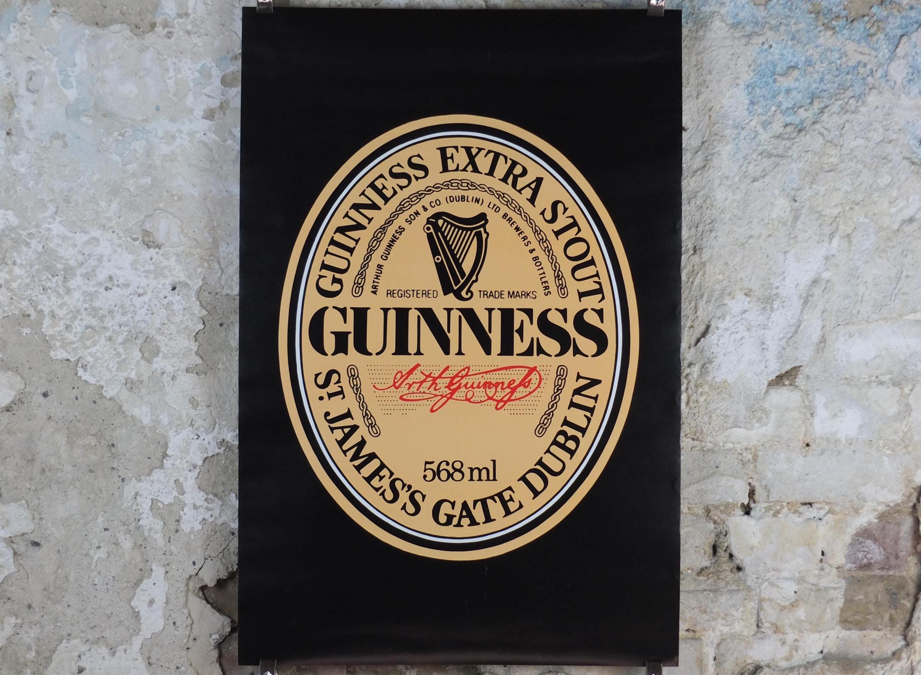 This poster is advertising Guinness, and shows the 568ml label of the Guinness brands From the 1990s.
