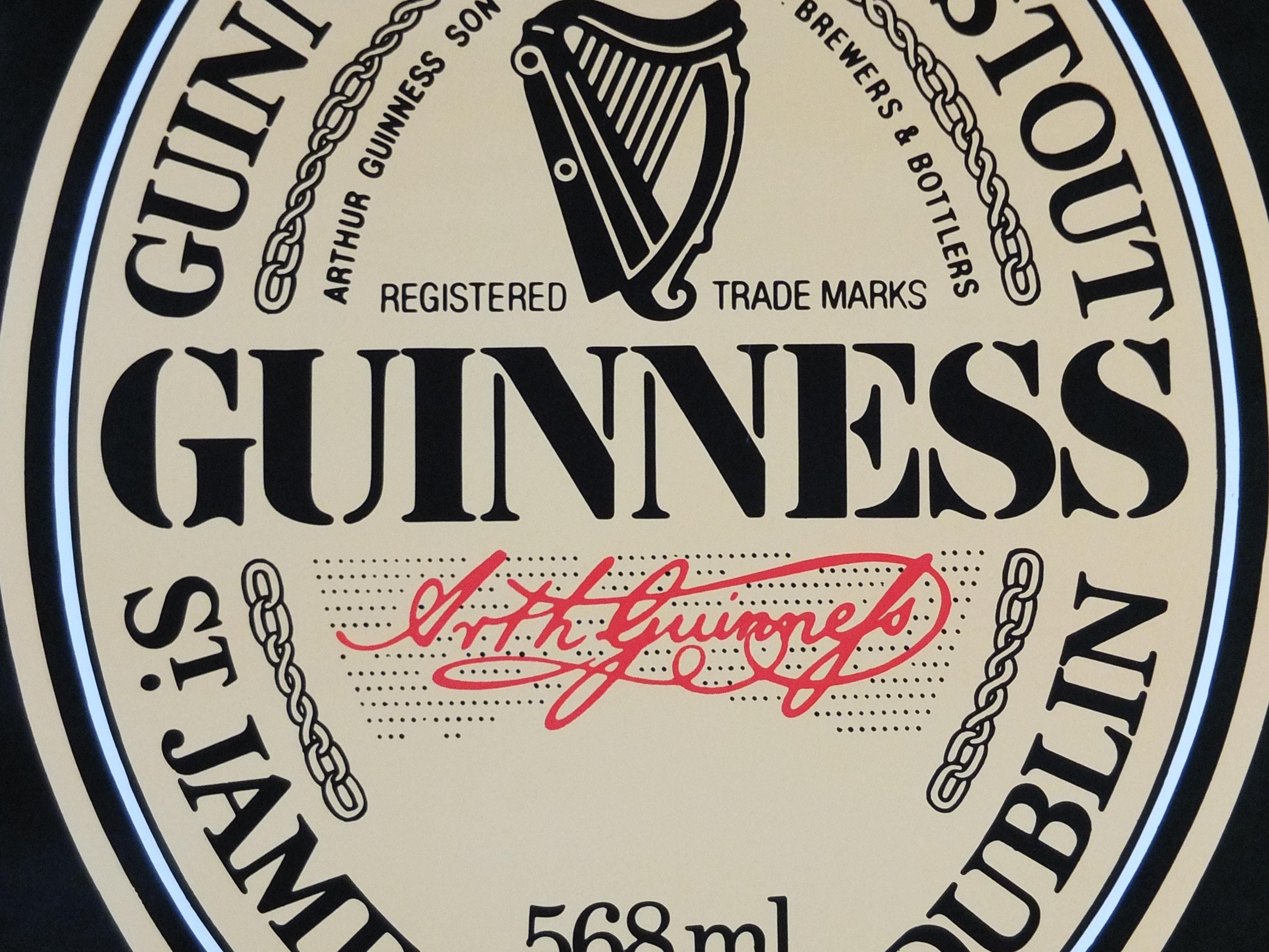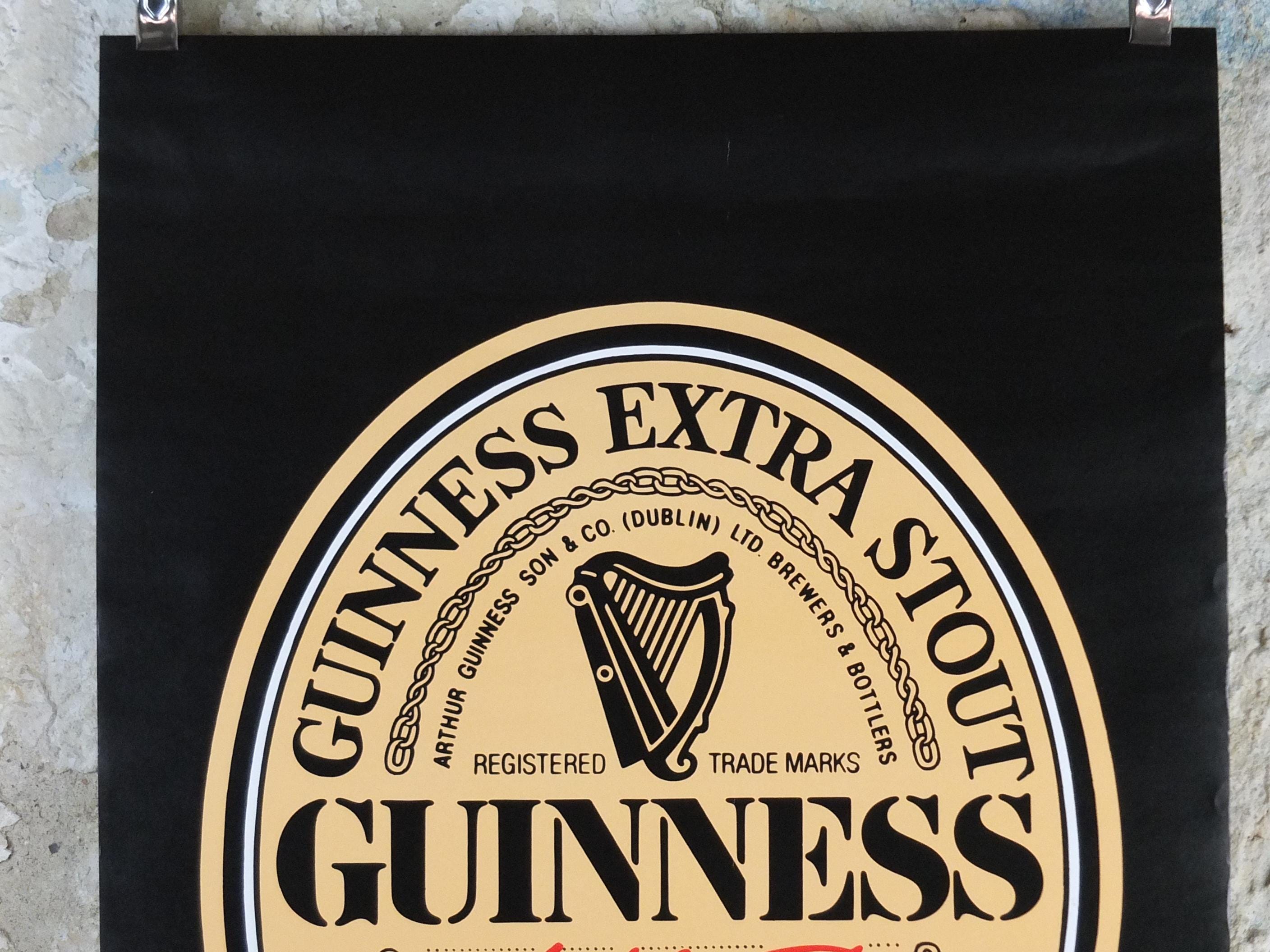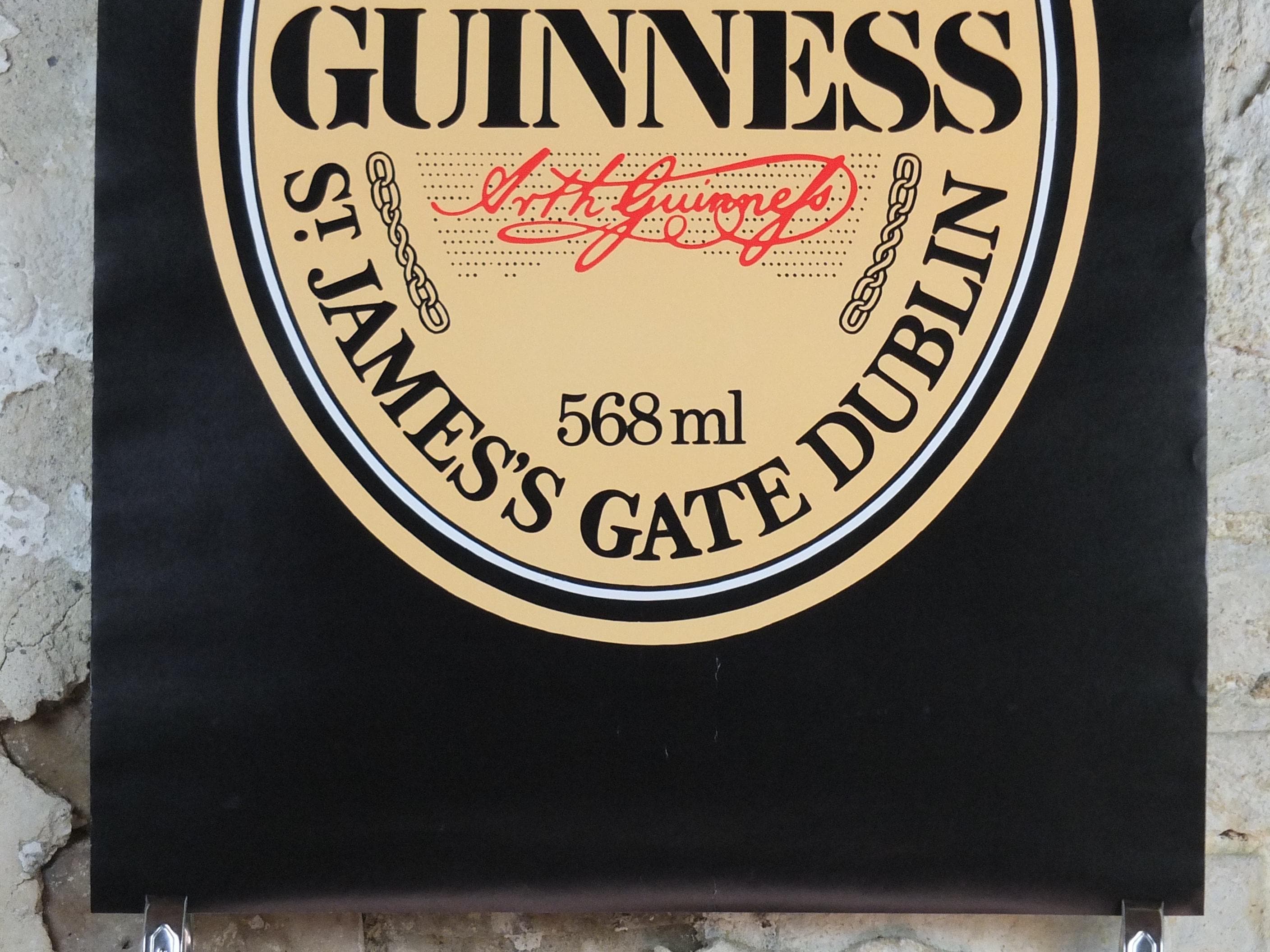 This poster is advertising Guinness, and shows the 568ml label of the Guinness brands From the 1990s.