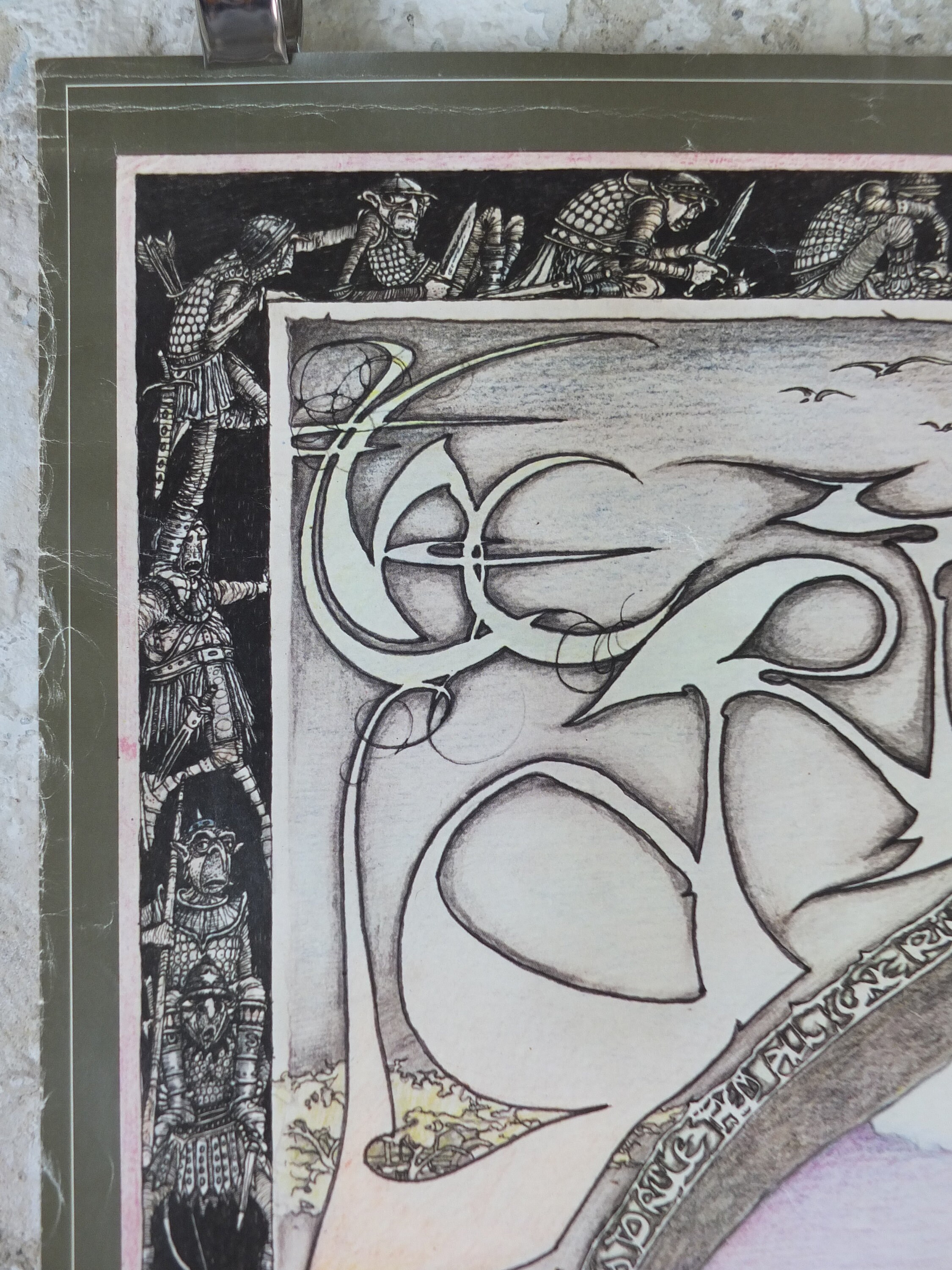 This famous poster is from the iconic Jimmy Cauty original drawing of Lord of the Rings in 1976.