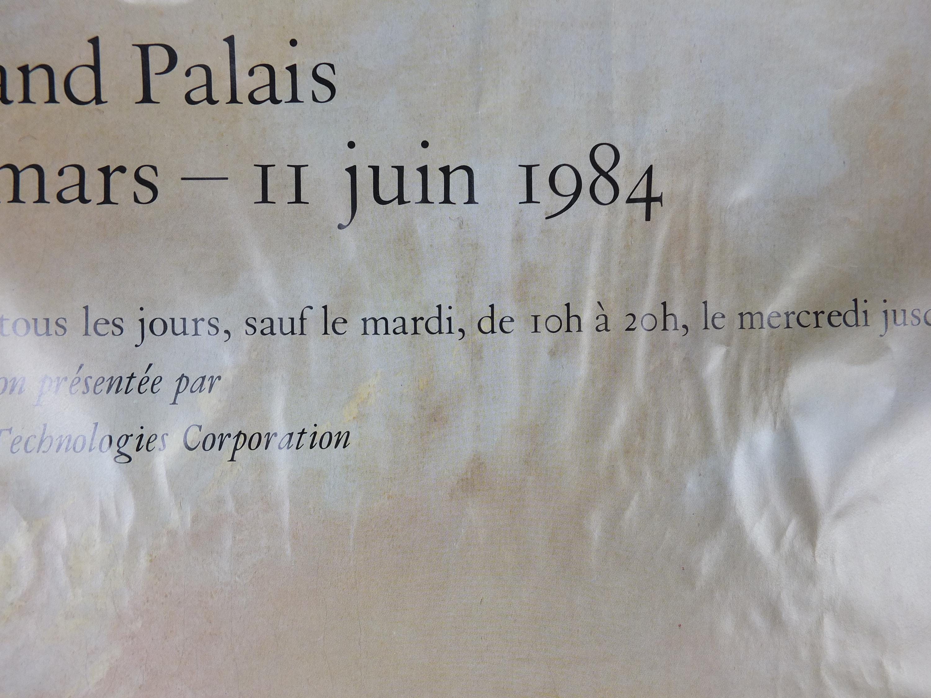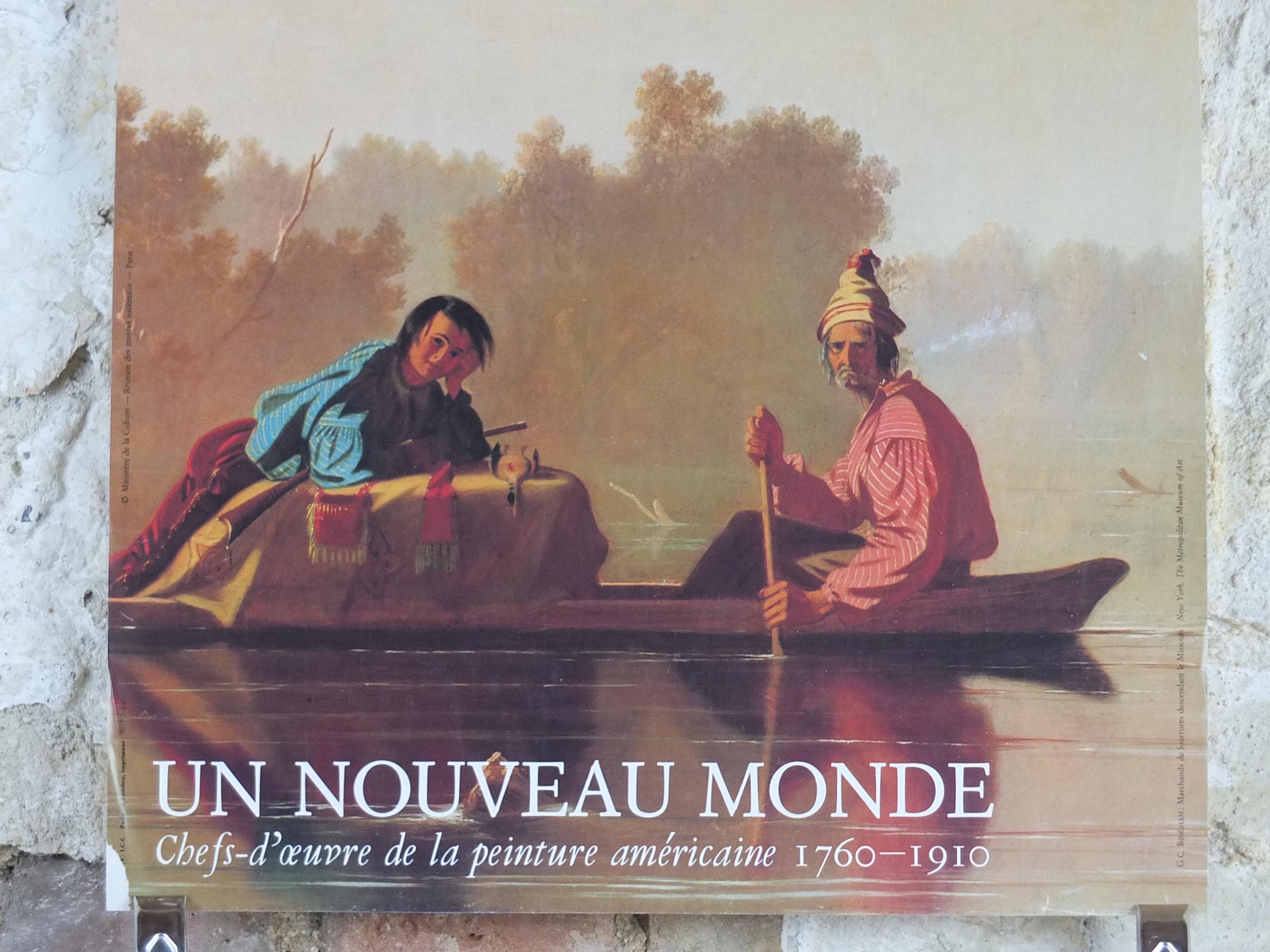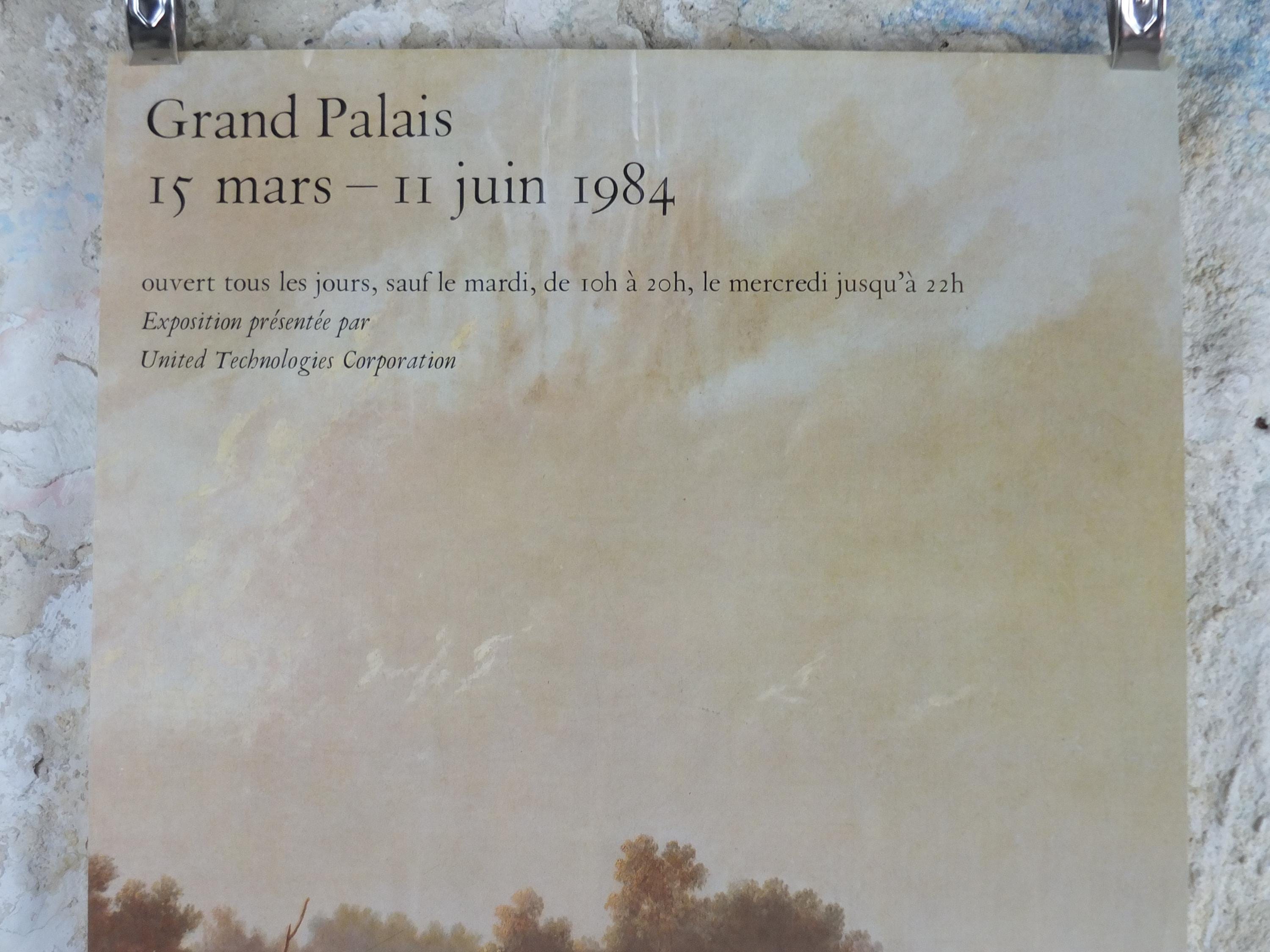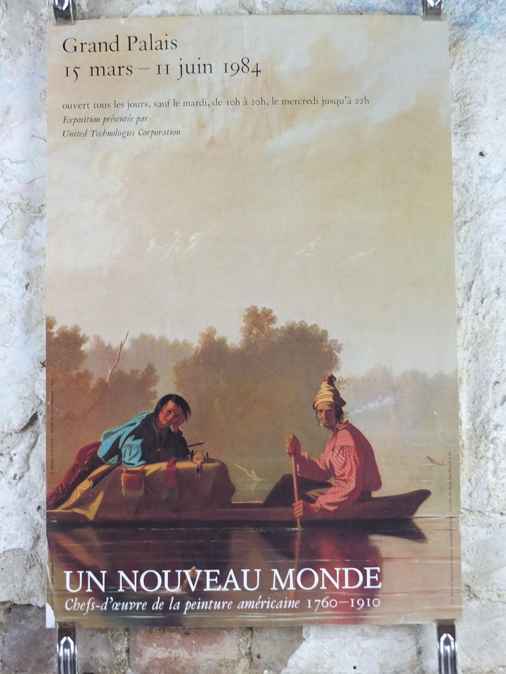 This exhibition poster is from the Grand Palais in France for an exhibition in 1984 featuring "Marchands de fourrures descendant le Missouri" or "Fur Traders Descending the Missouri" from G.C. Bingham. Beautiful with soft greens and golds. From the Louvre Museum shop.