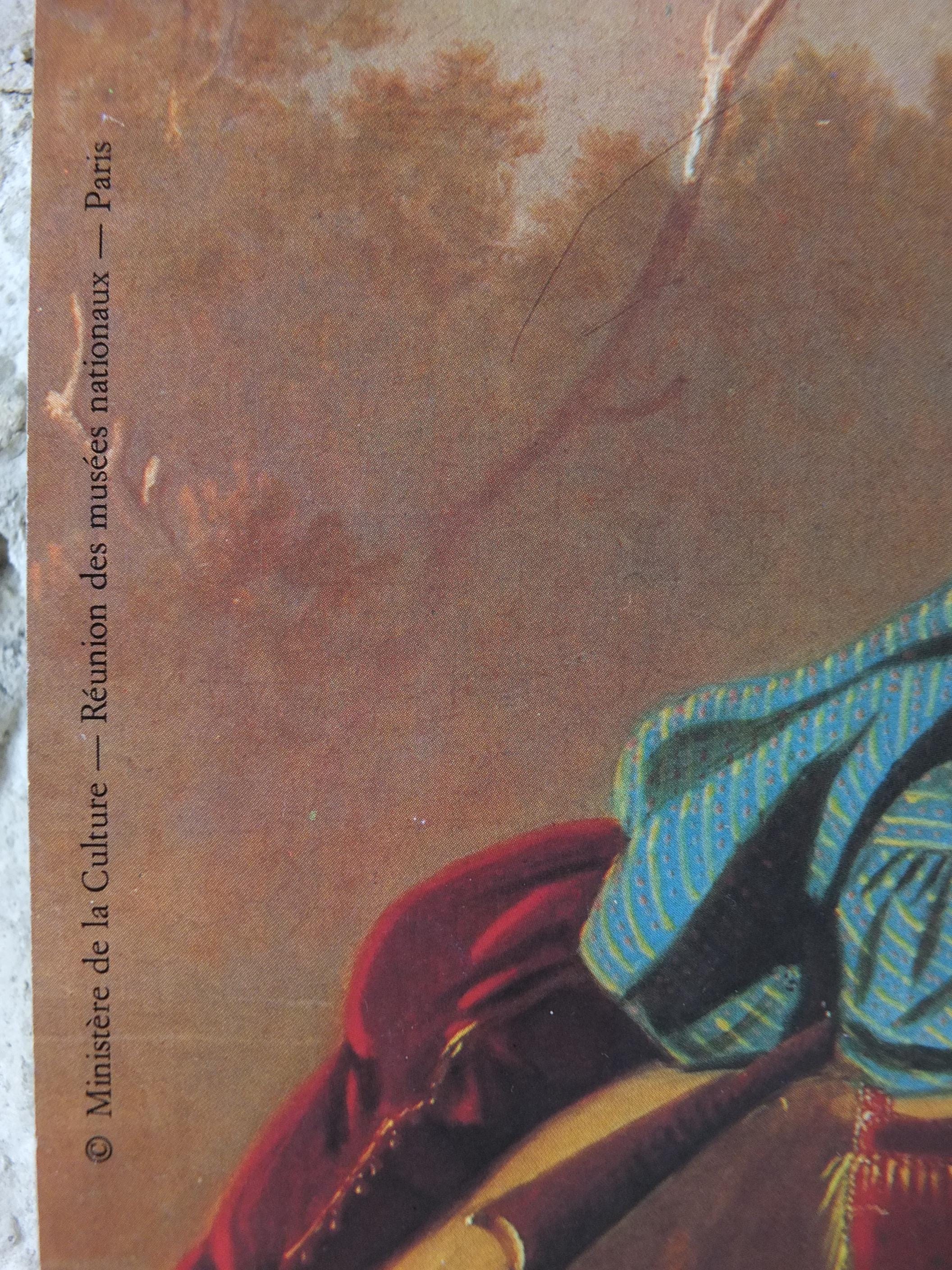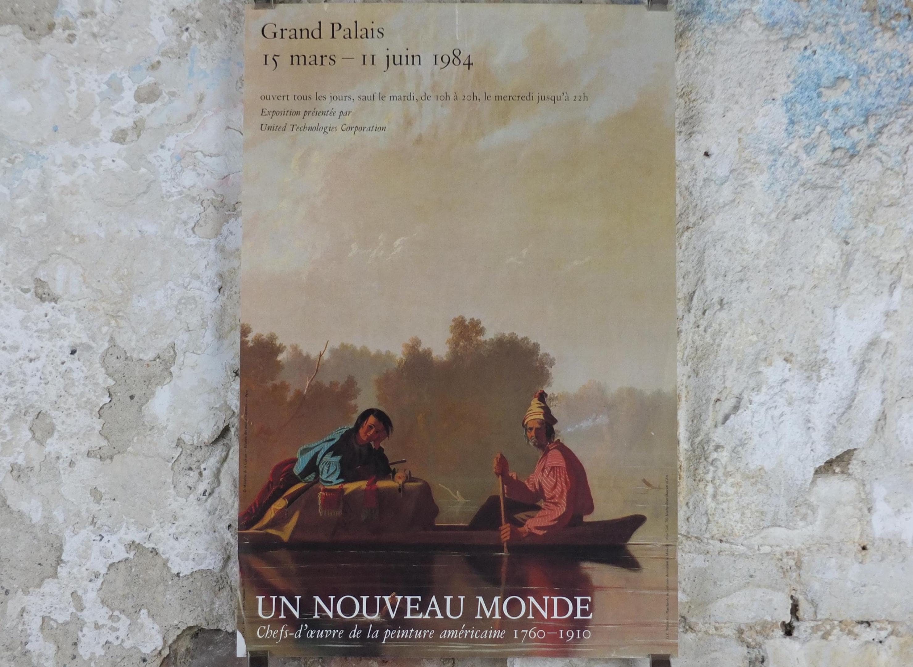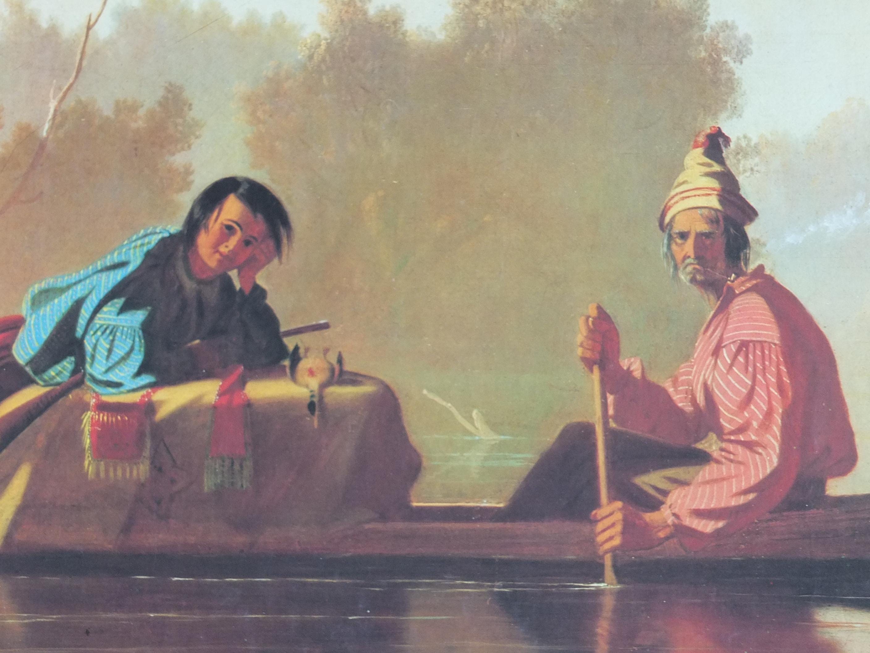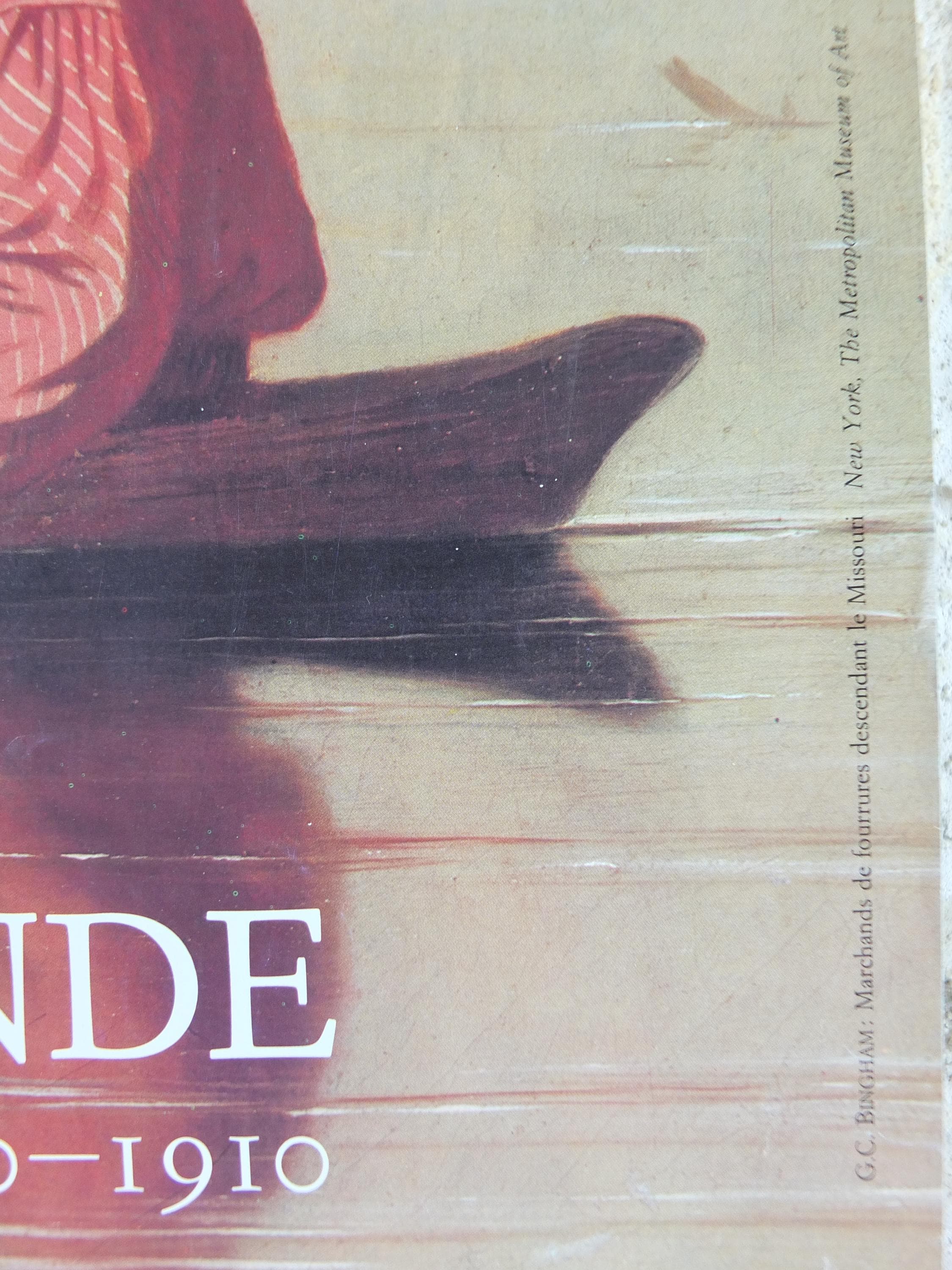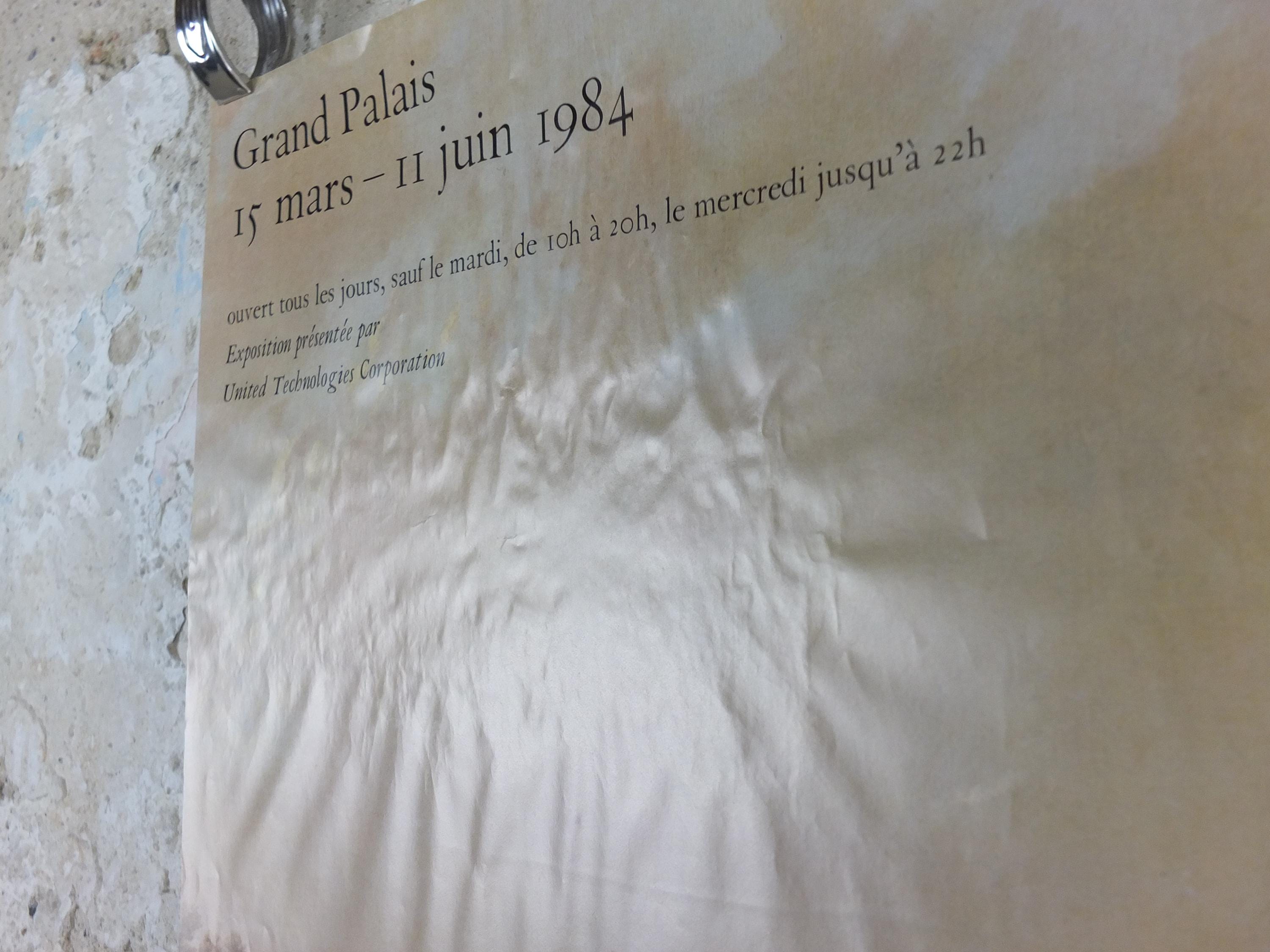 This exhibition poster is from the Grand Palais in France for an exhibition in 1984 featuring "Marchands de fourrures descendant le Missouri" or "Fur Traders Descending the Missouri" from G.C. Bingham. Beautiful with soft greens and golds. From the Louvre Museum shop.