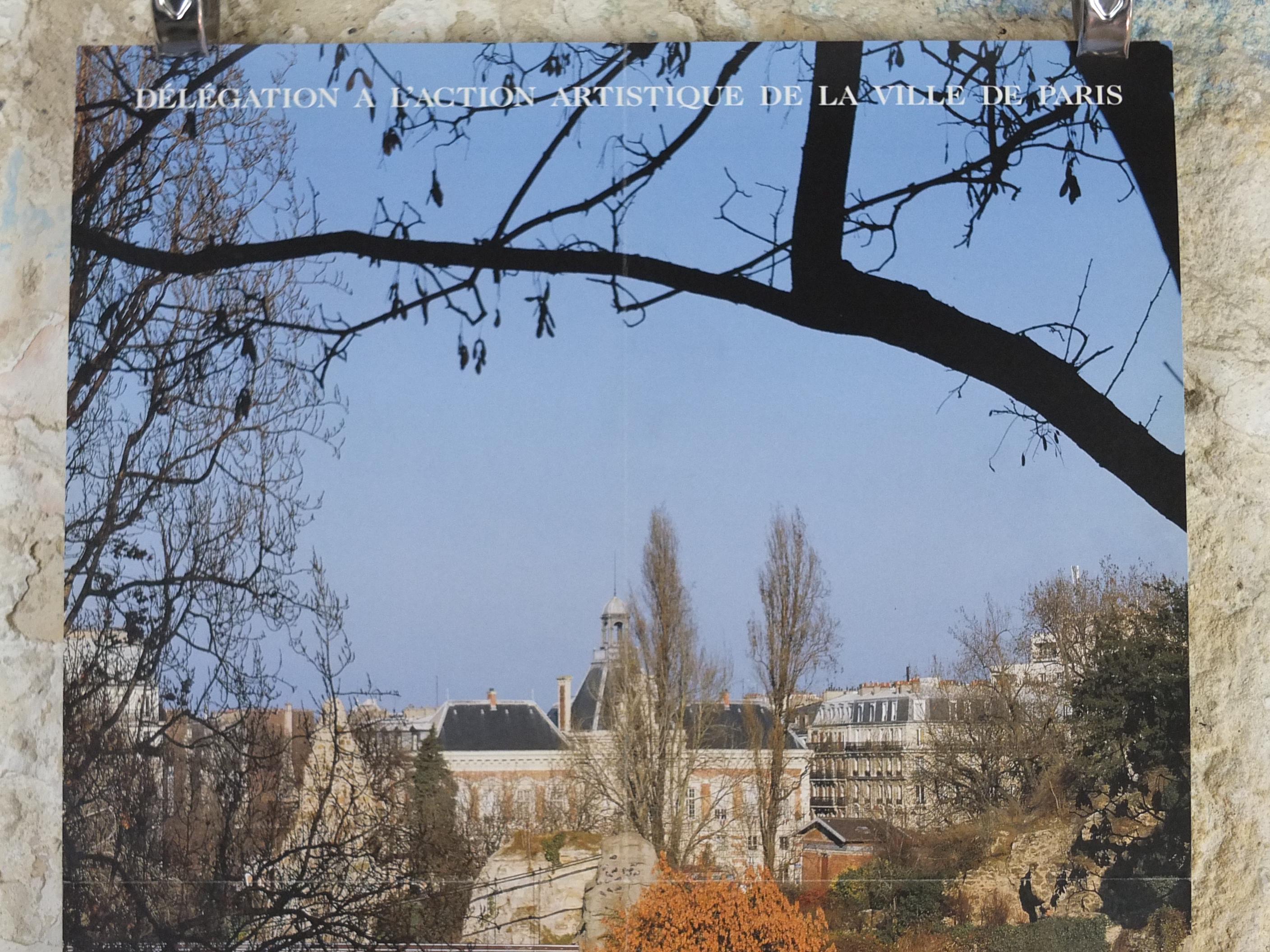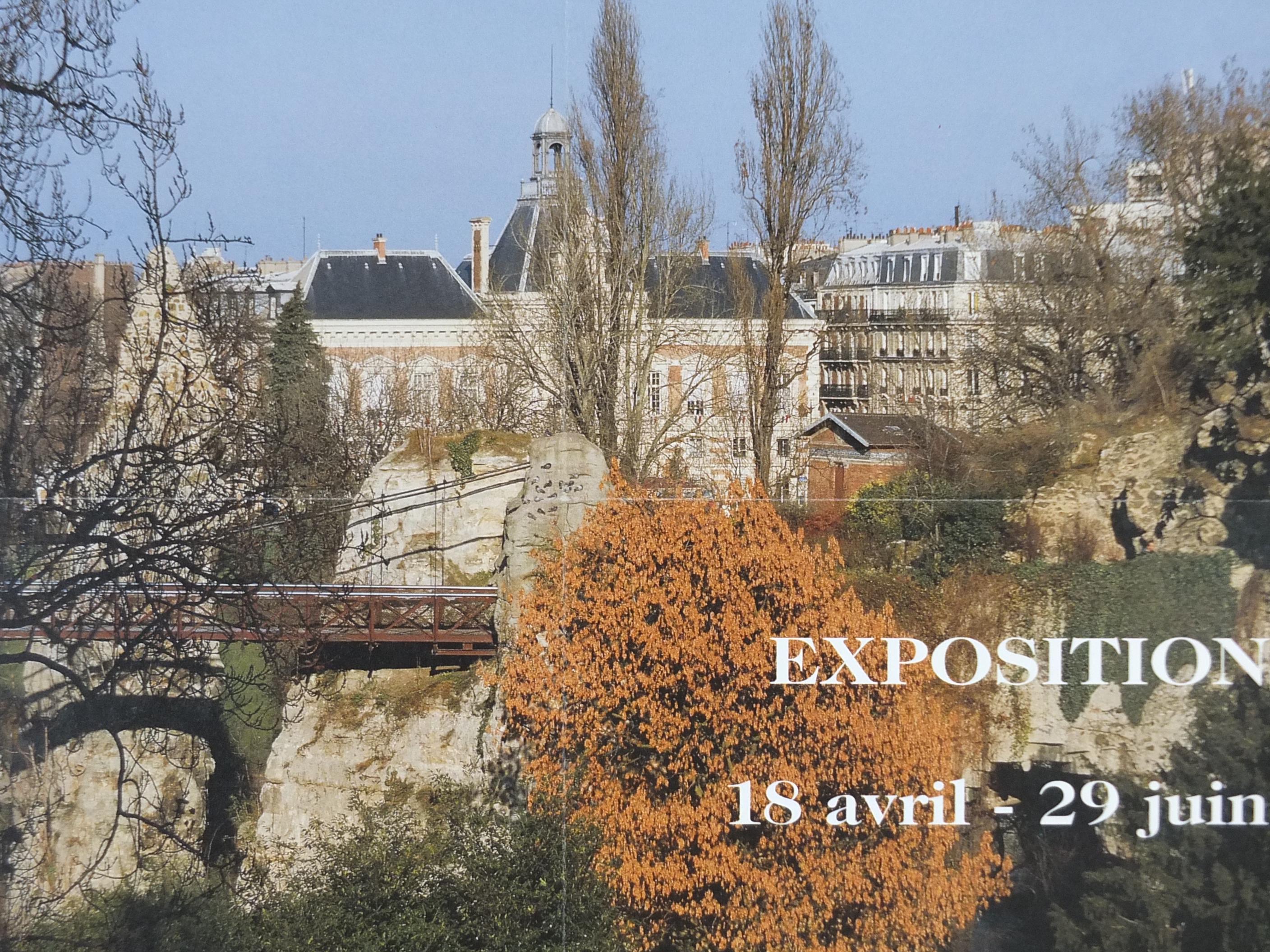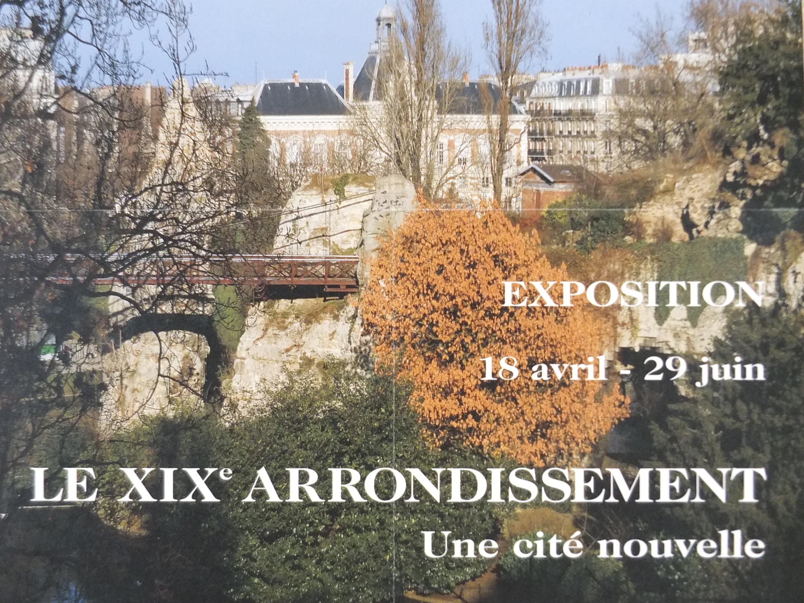 The exhibition's theme, "Une cité nouvelle" (A New City), is perfectly embodied by the Parc des Buttes-Chaumont featured on the poster because the park is a powerful symbol of 19th-century urban transformation. The 19th arrondissement was a grim, undeveloped area, annexed to Paris in 1860, that was home to quarries, dumps, and the historic gallows. Under the direction of Baron Haussmann and Napoleon III, the land was dramatically engineered—using the latest technologies like concrete and dynamite—to create a picturesque, romantic landscape complete with an artificial lake, cliffs, and a temple. This effort turned a desolate, industrial wasteland into a beautiful, modern green space, thus representing the transformation of the city's outskirts into a revitalized and integrated "New City" for its rapidly growing population.