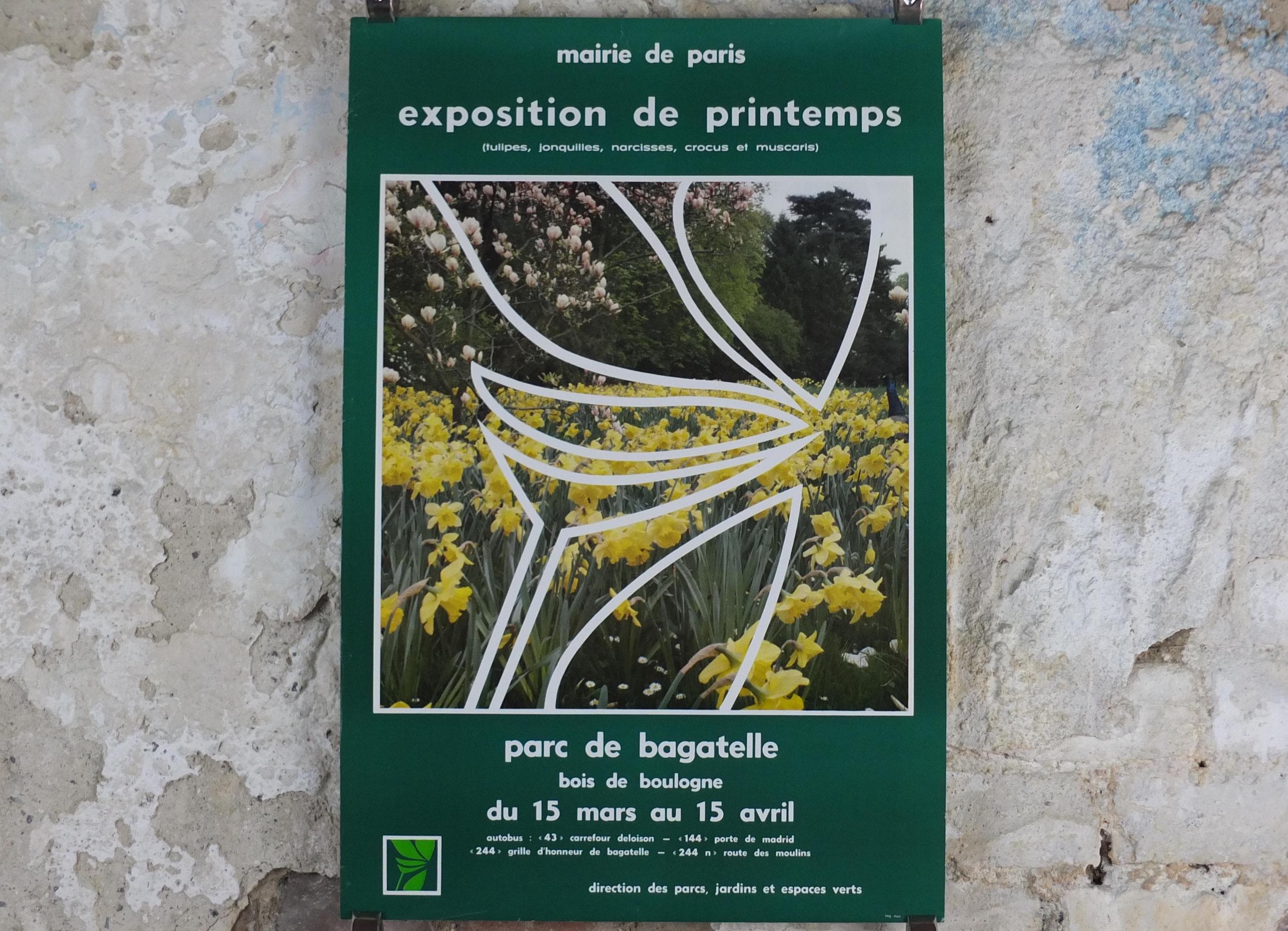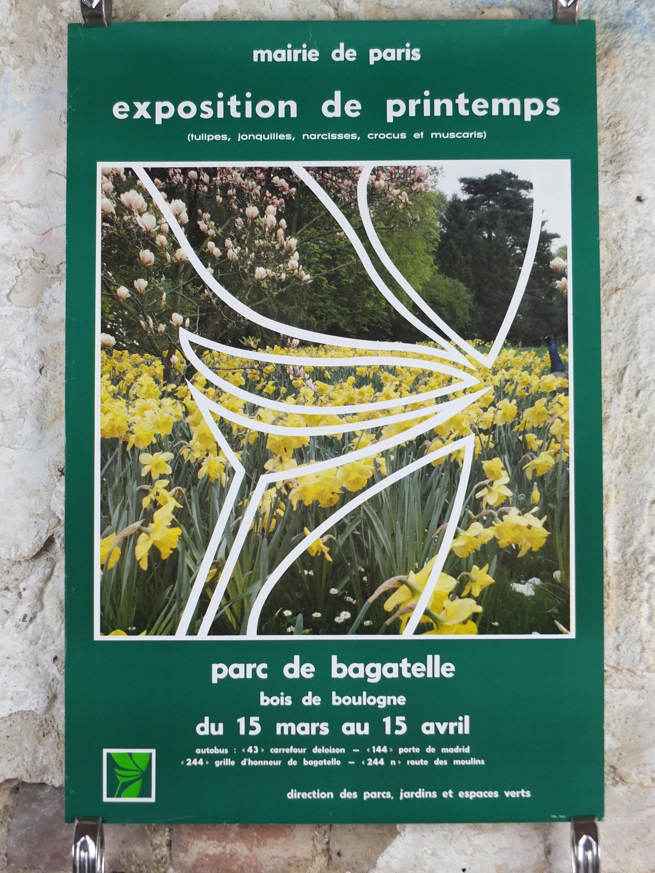 This is an advertising poster for the Spring Exhibition Paris from 1983 showing rows of daffodils.