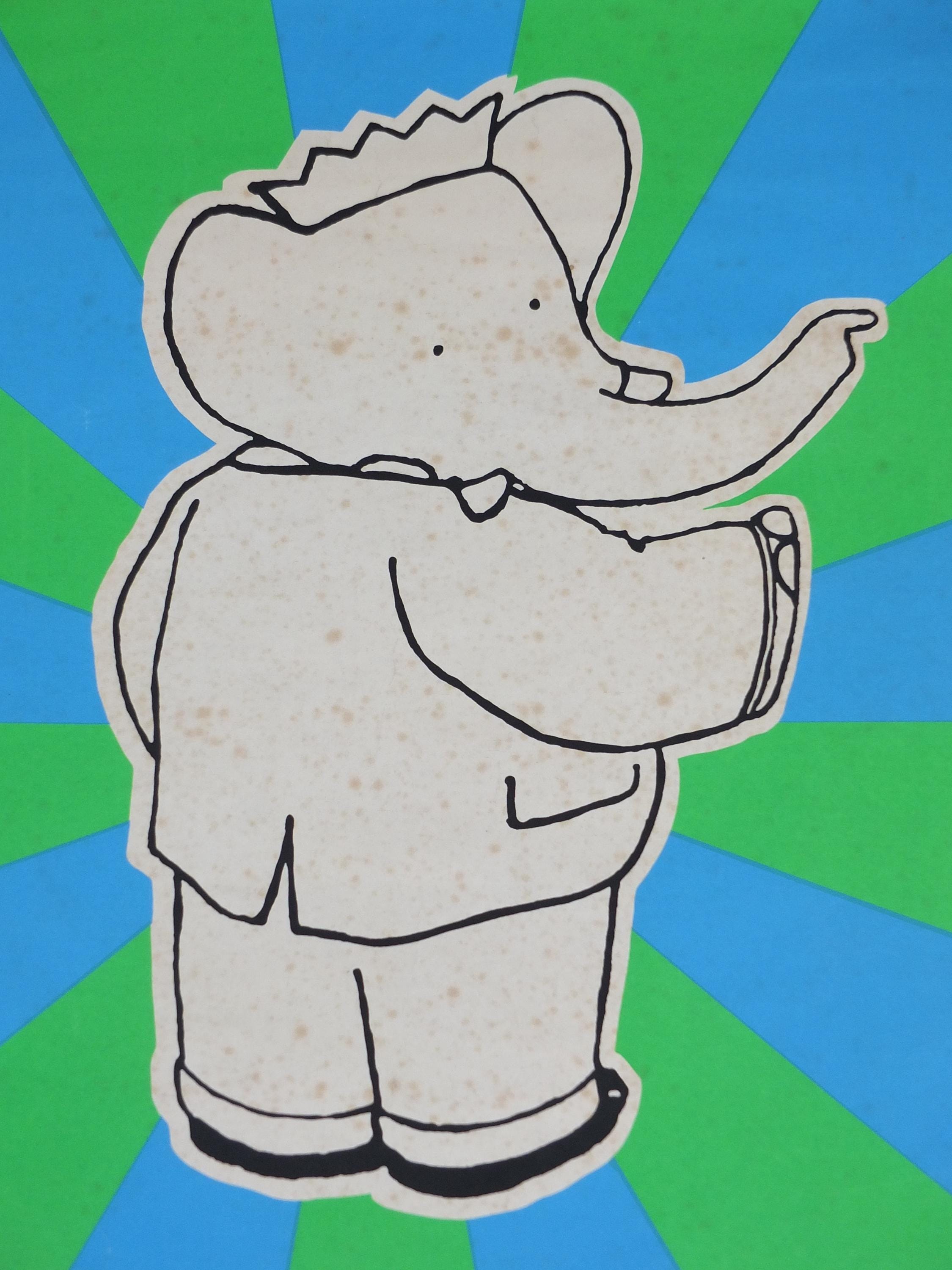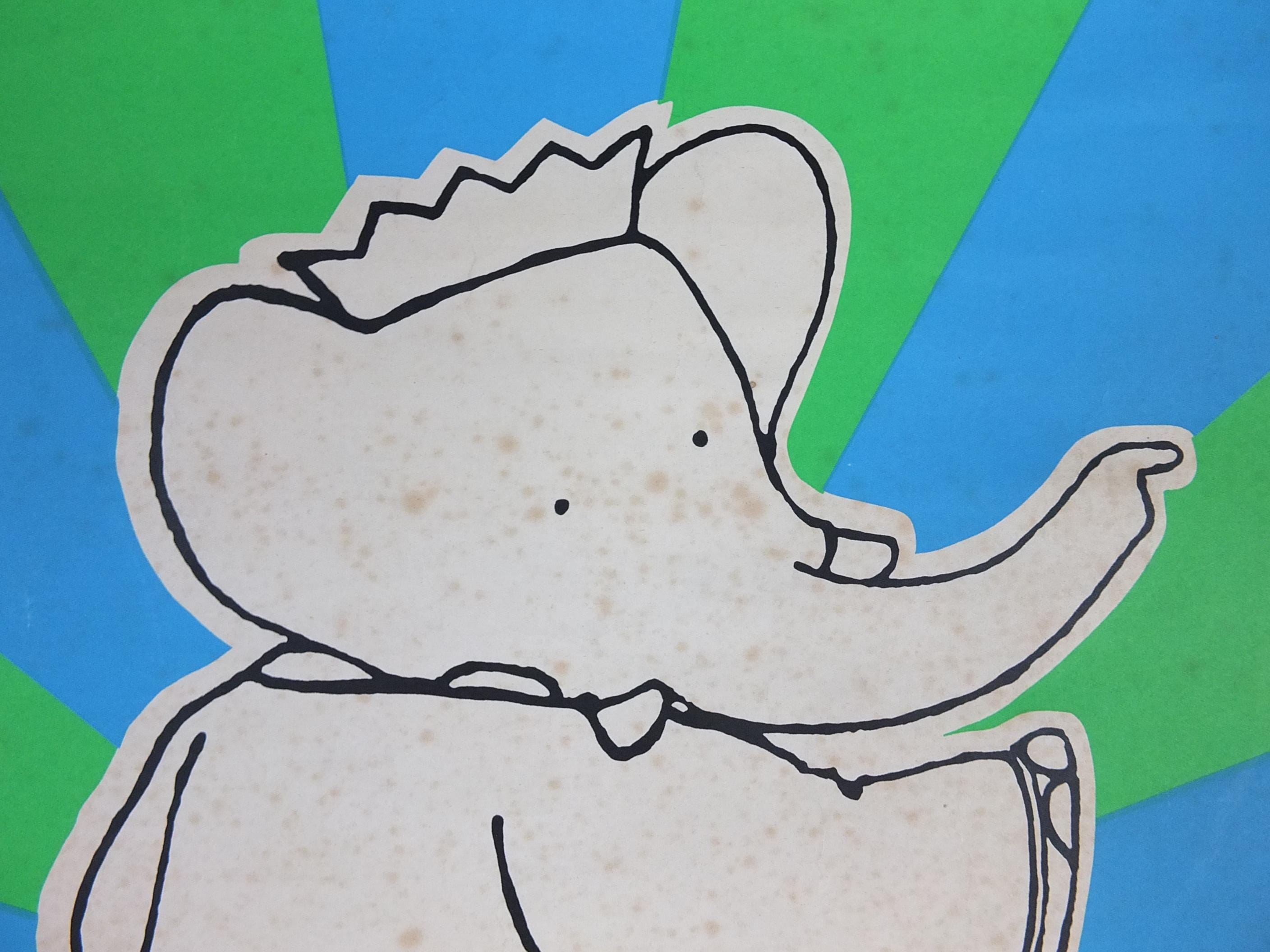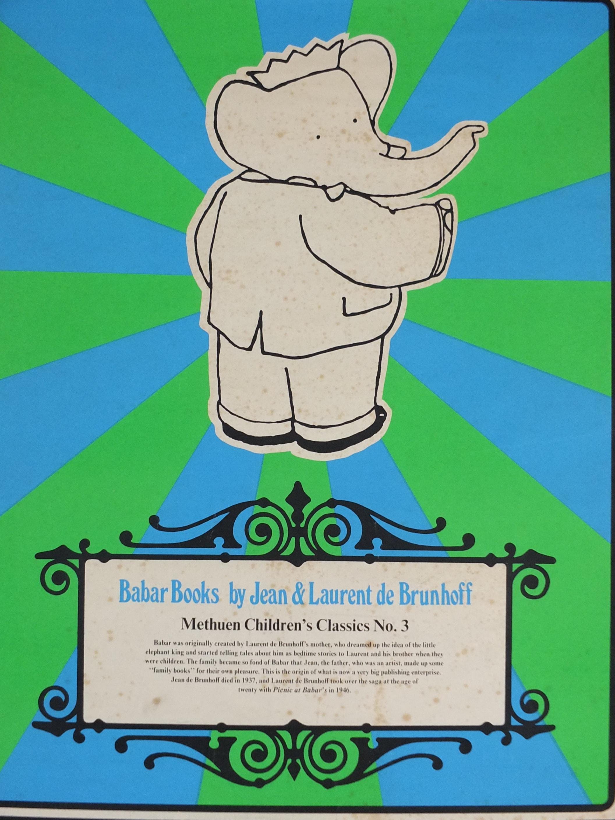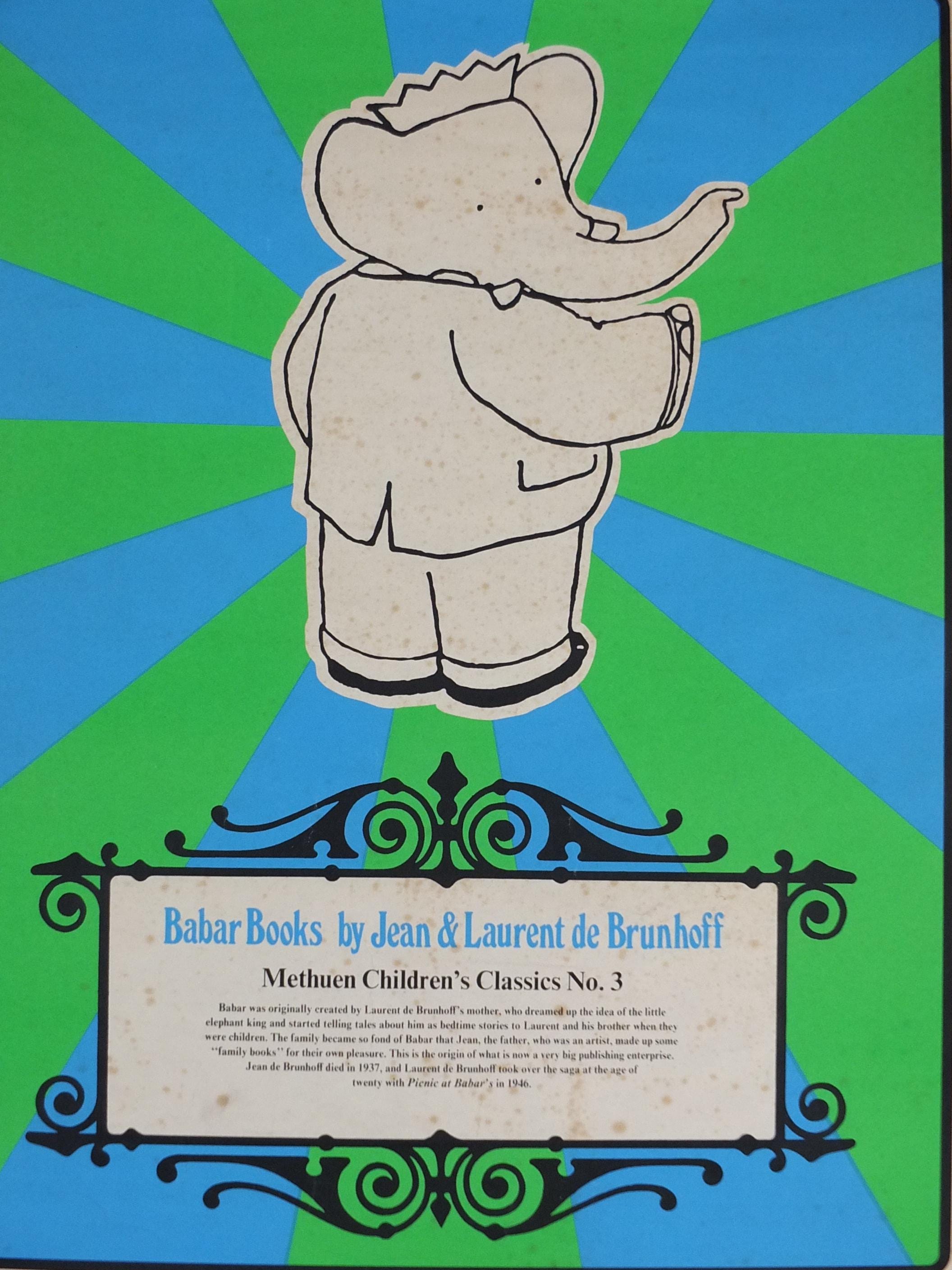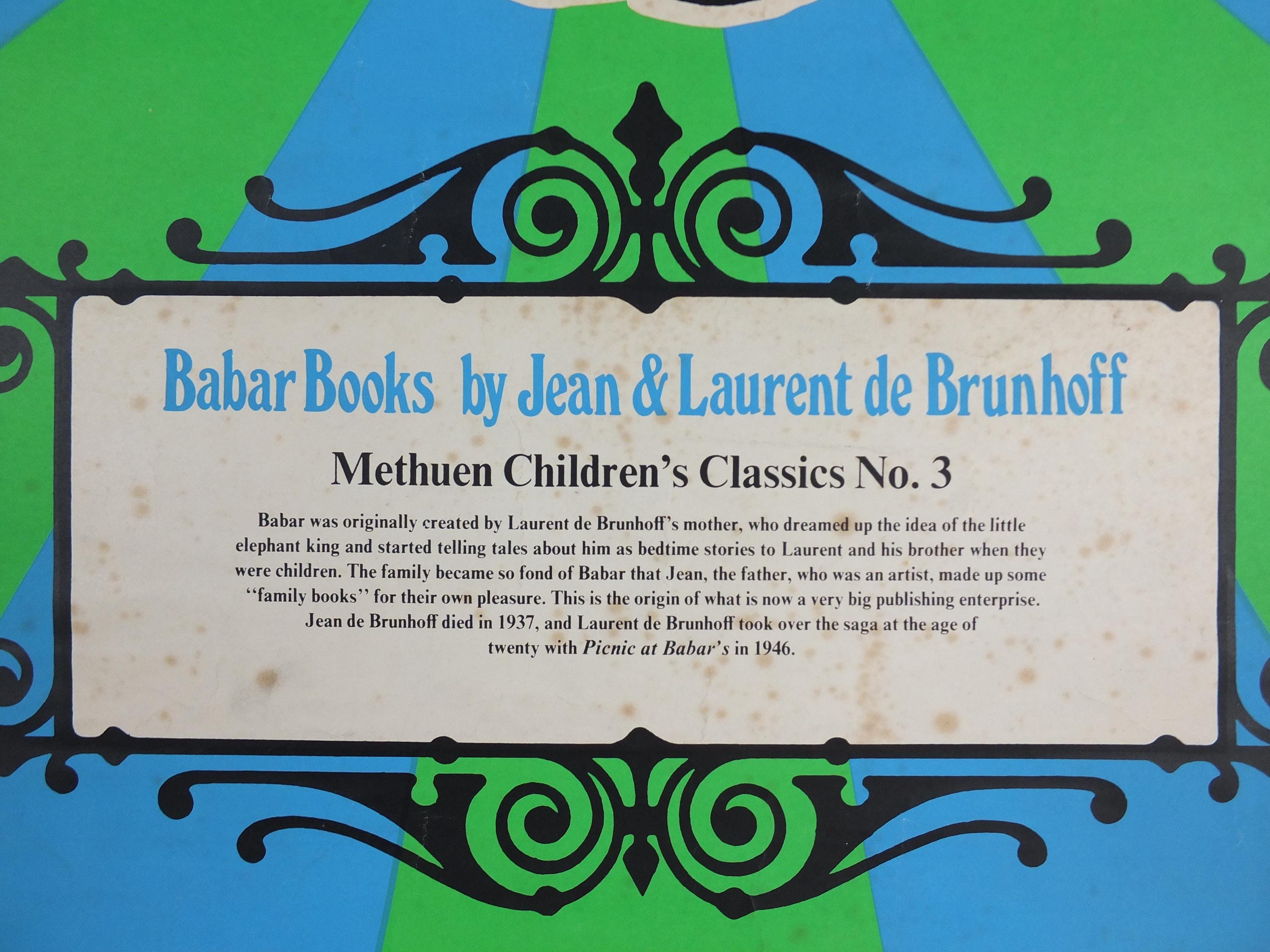 Jean de Brunhoff's Barbarr is a favourite of children across the world. This 1970s poster is advertising a book release from Methuen Childrens Classics No 3. Laurent de Brunhoff continued the tales from his father.
