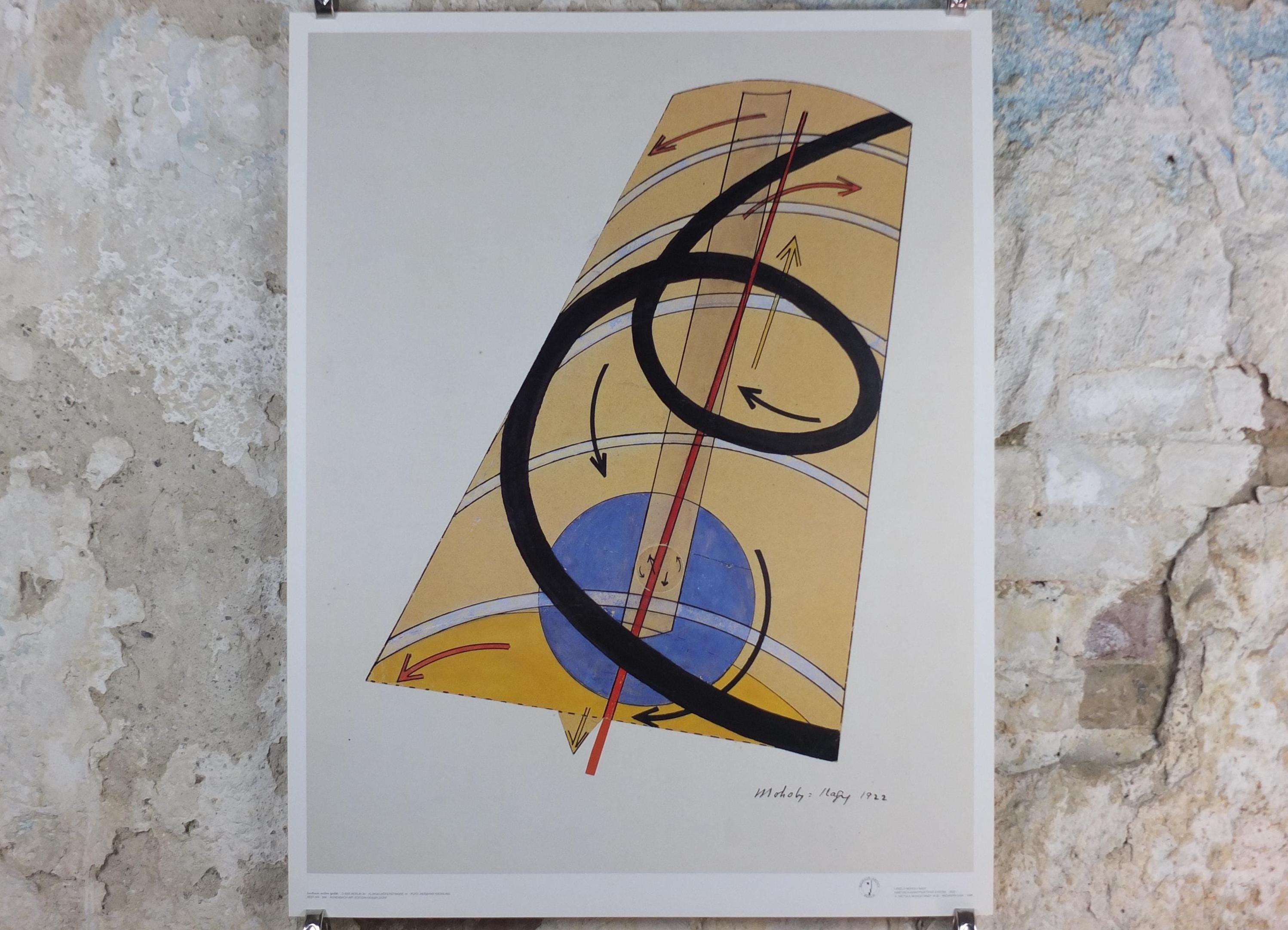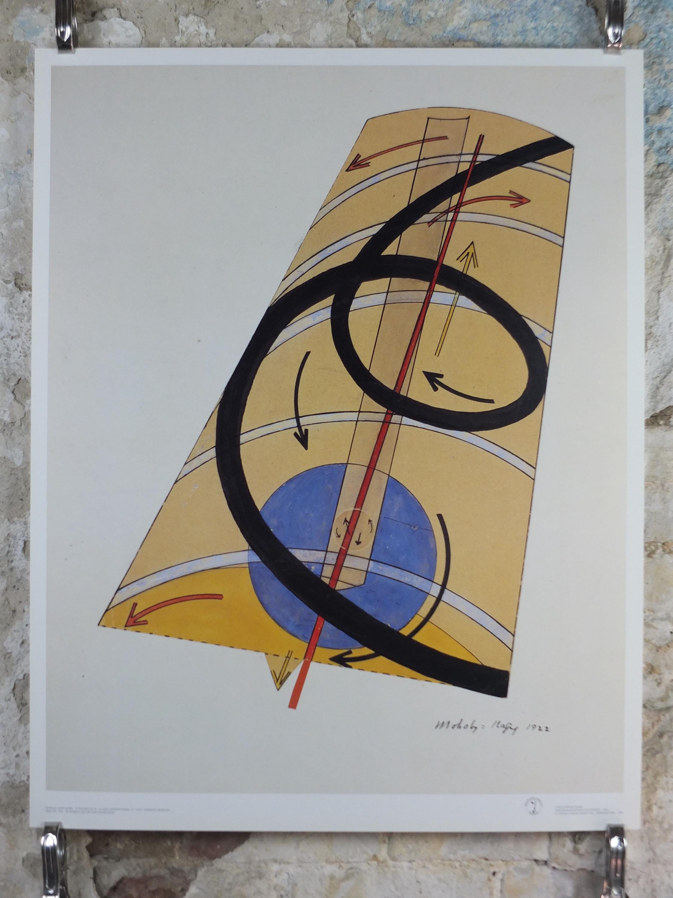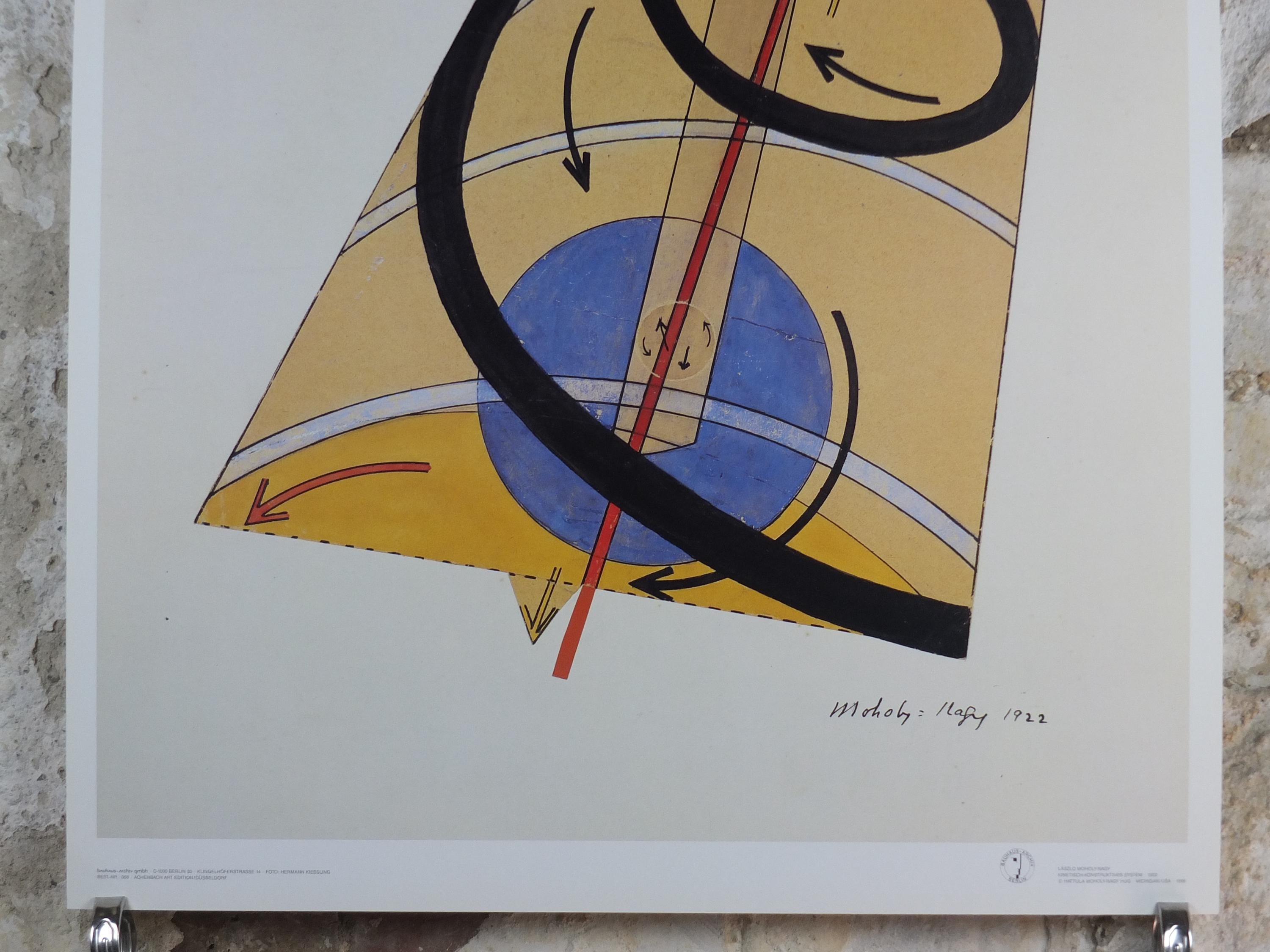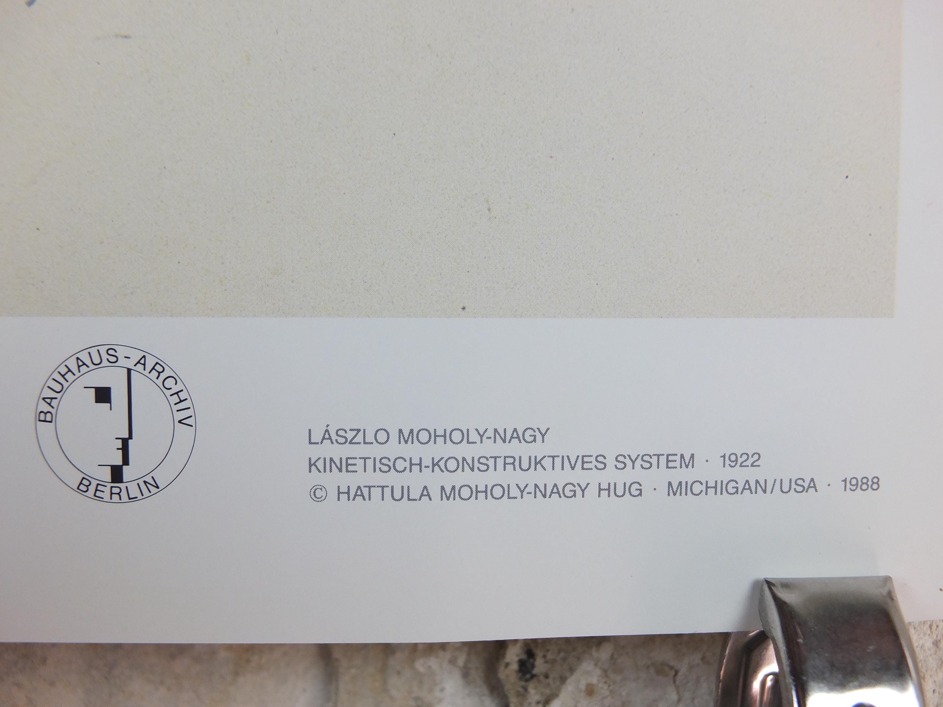 This Laszlo Moholy Nagy exhibition poster is from the Bauhaus Archive, GmbH in Berlin for a 1988 exhibition featuring the Kinetic-Constructive System · 1922.