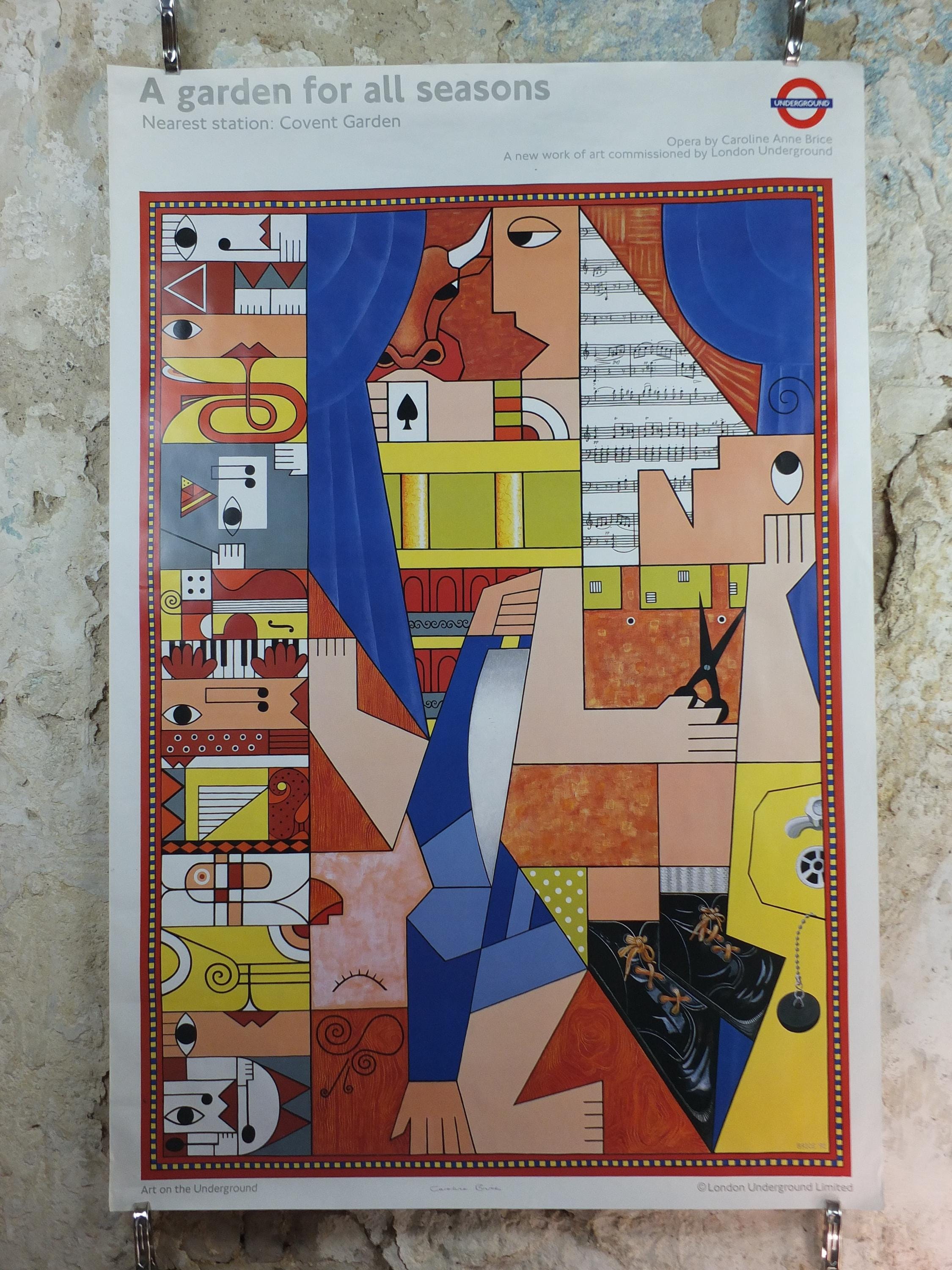 If you're looking for something large and authentic from the travel history of London, then look no further. This authentic hand-signed Tube (London Underground) poster "A Garden for all Seasons" and "Opera" from 1992 is by Caroline Anne Brice.