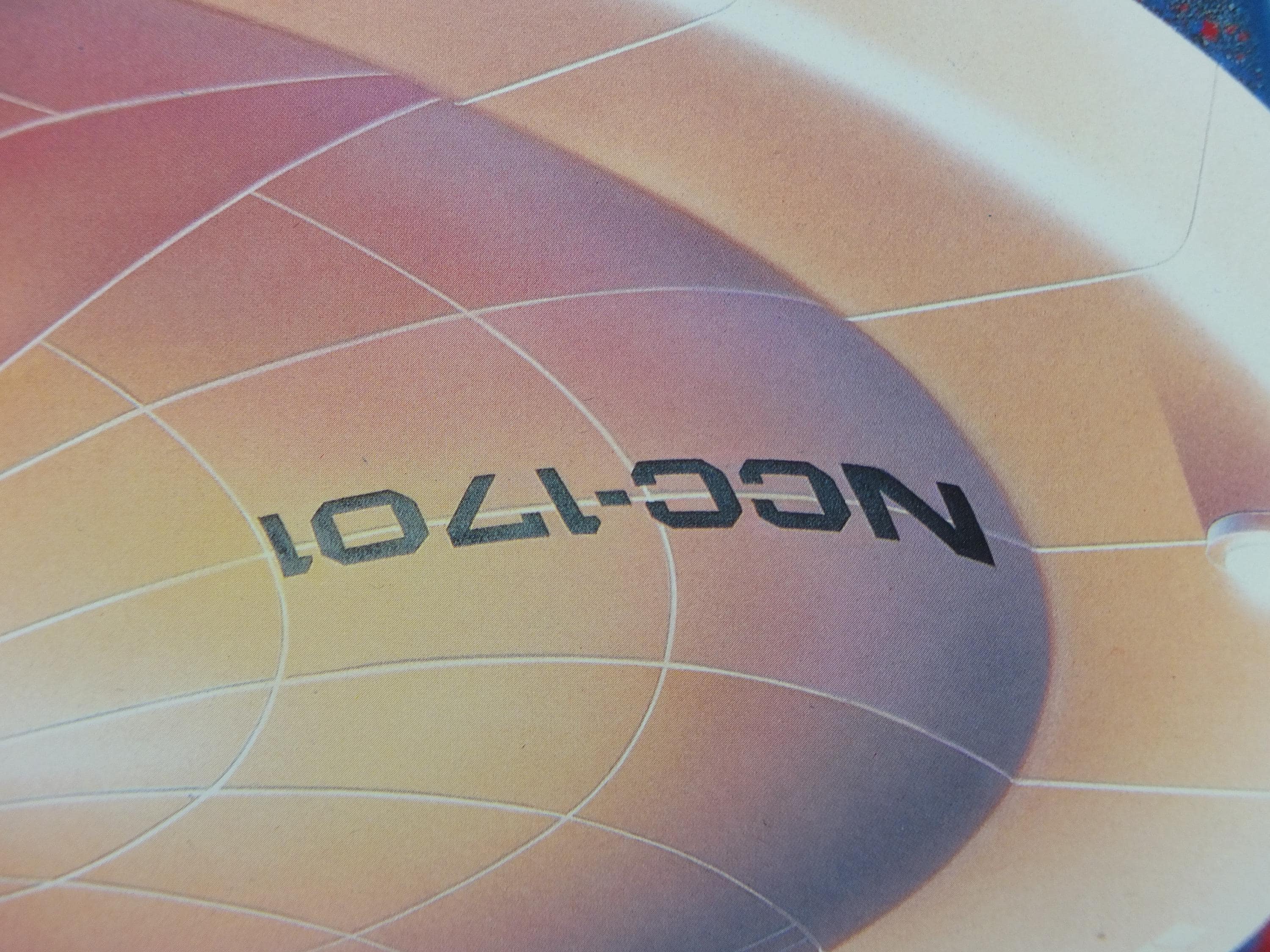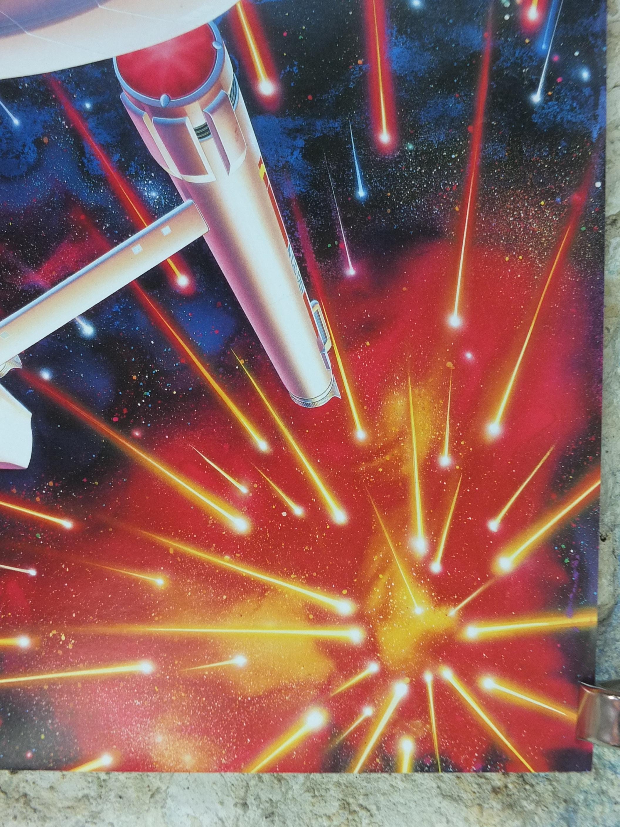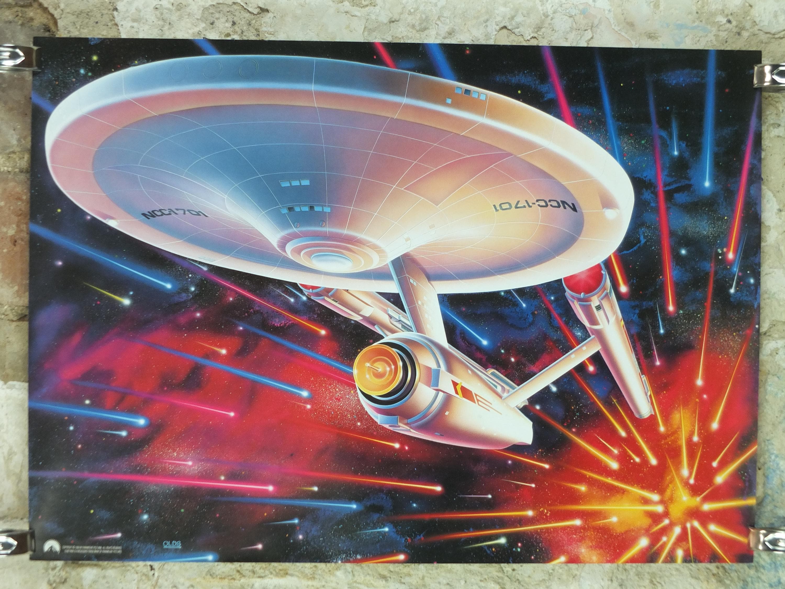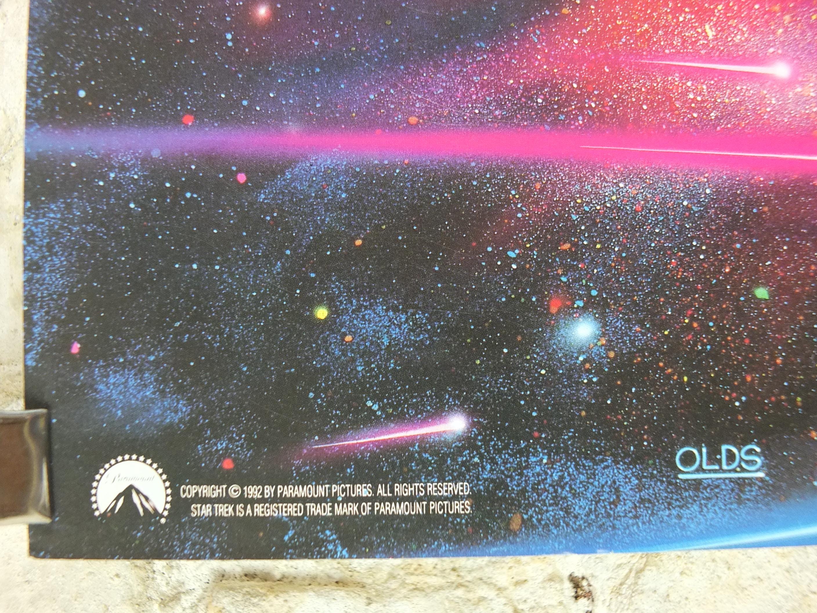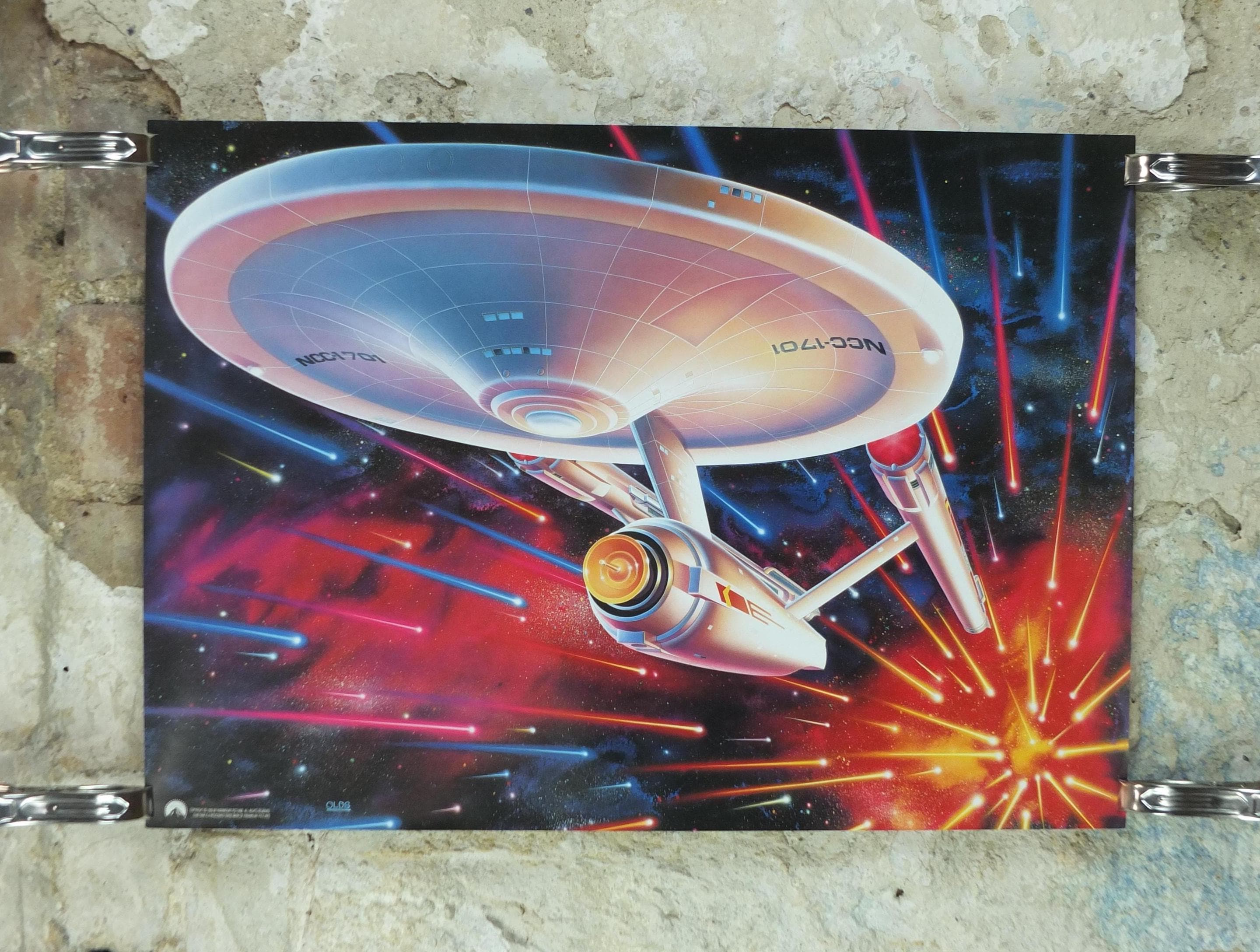 This is Drew Struzan's rendition of the the USS Enterprise from the original Star Trek series from 1992. These science fiction posters were made to commemorate the 25th anniversary of the original Star Trek television show and were available to those who purchased Star Trek VHS tapes.
