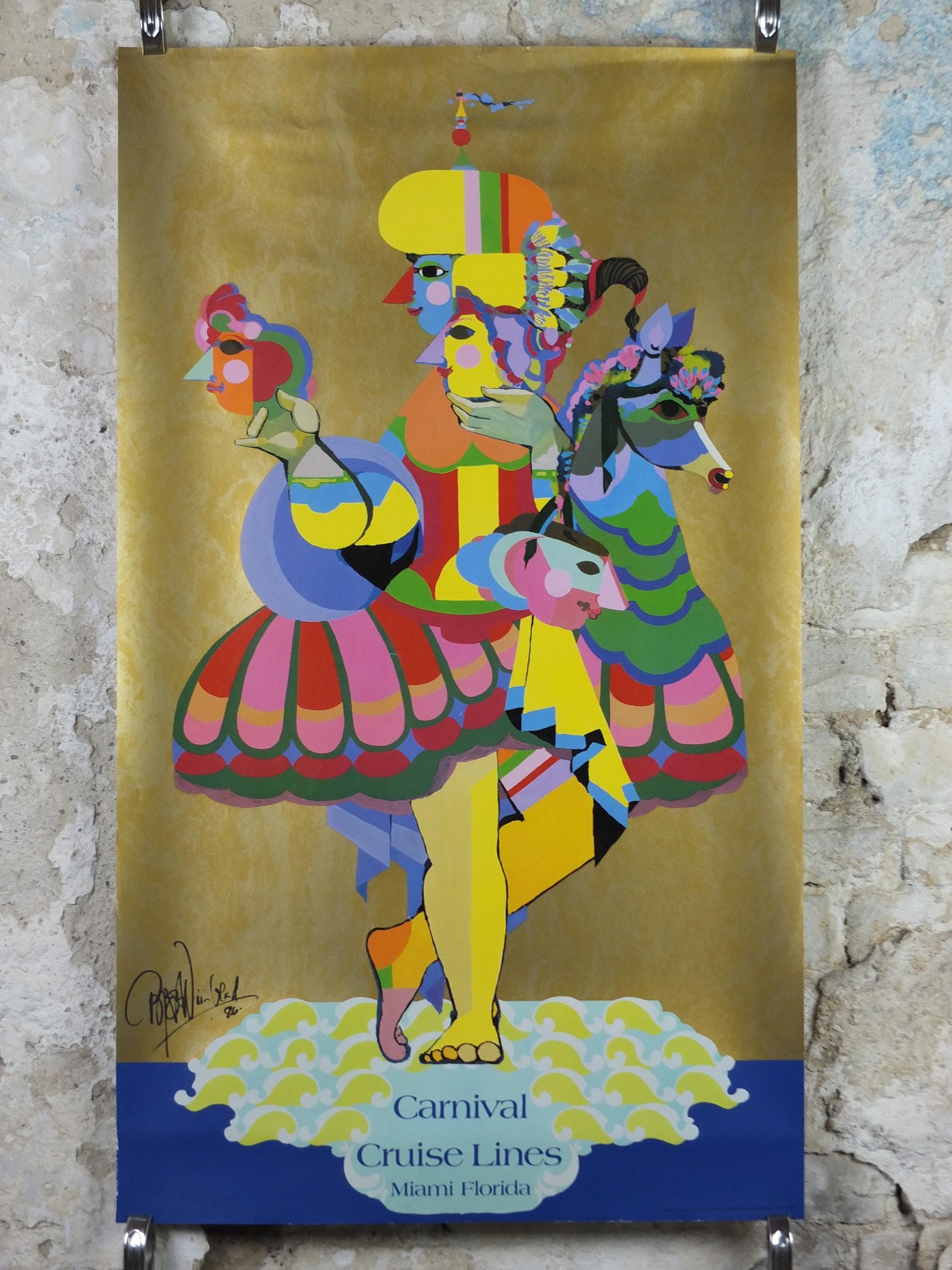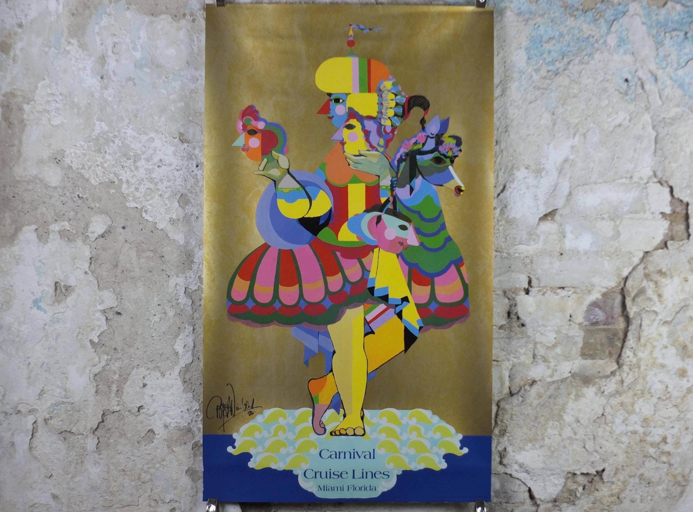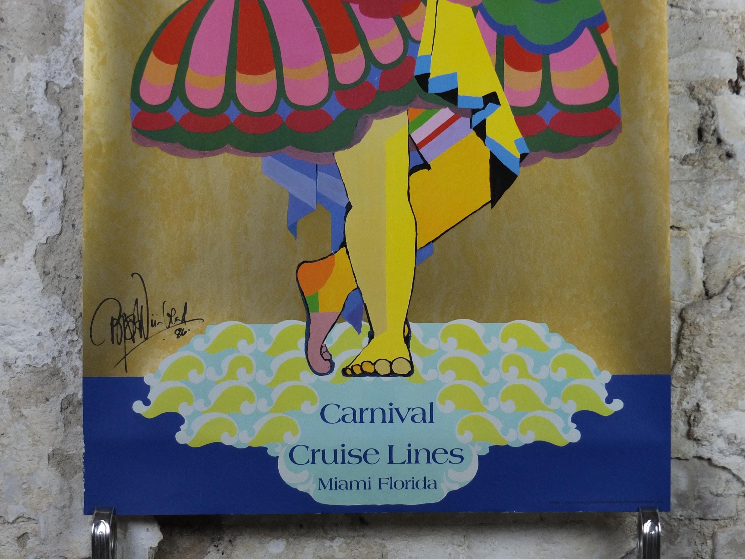 This original beautiful and colourful Bjorn Wiinblad poster for Carnival Cruise Lines from Miami Florida