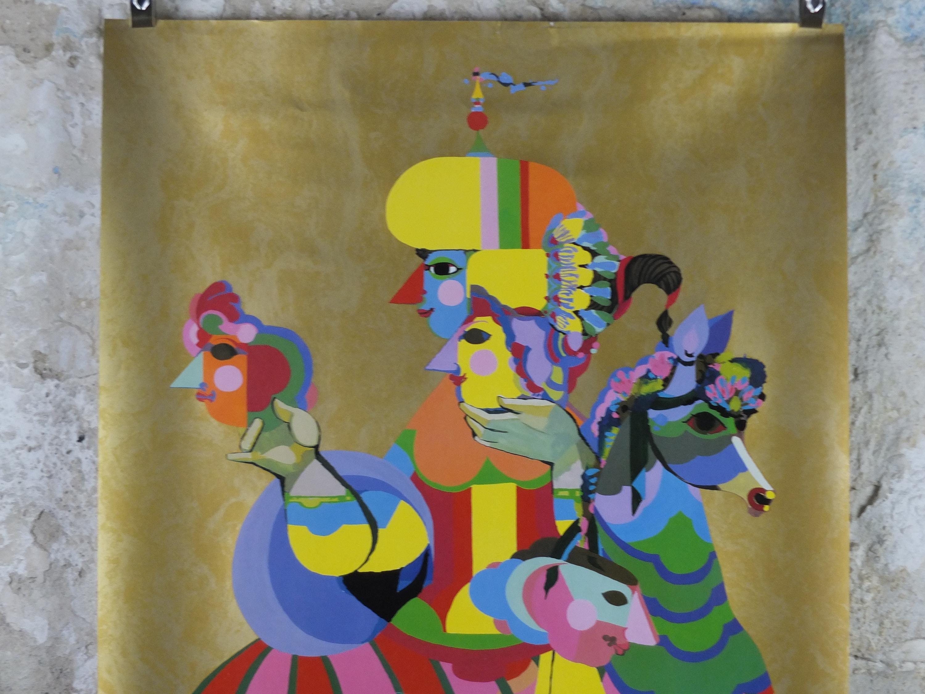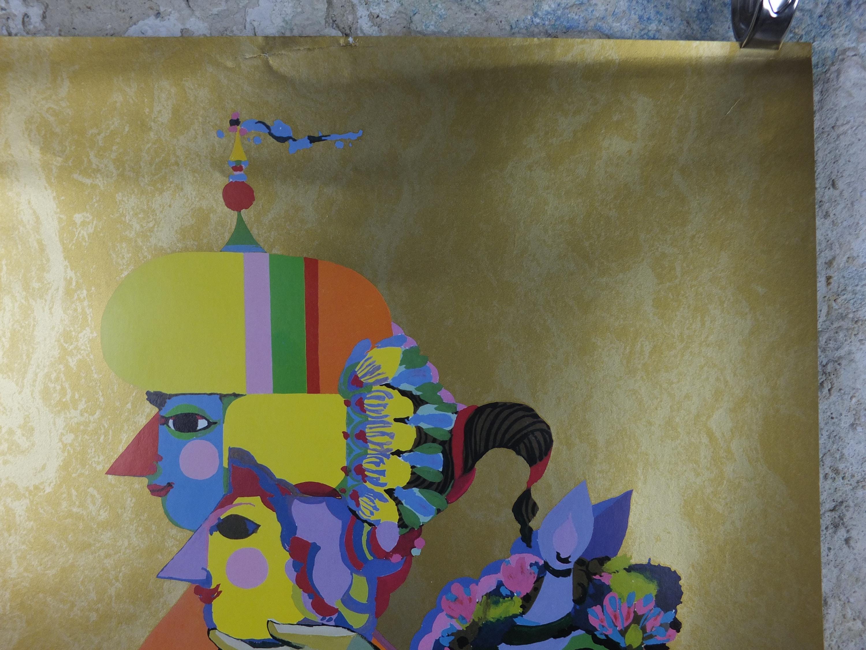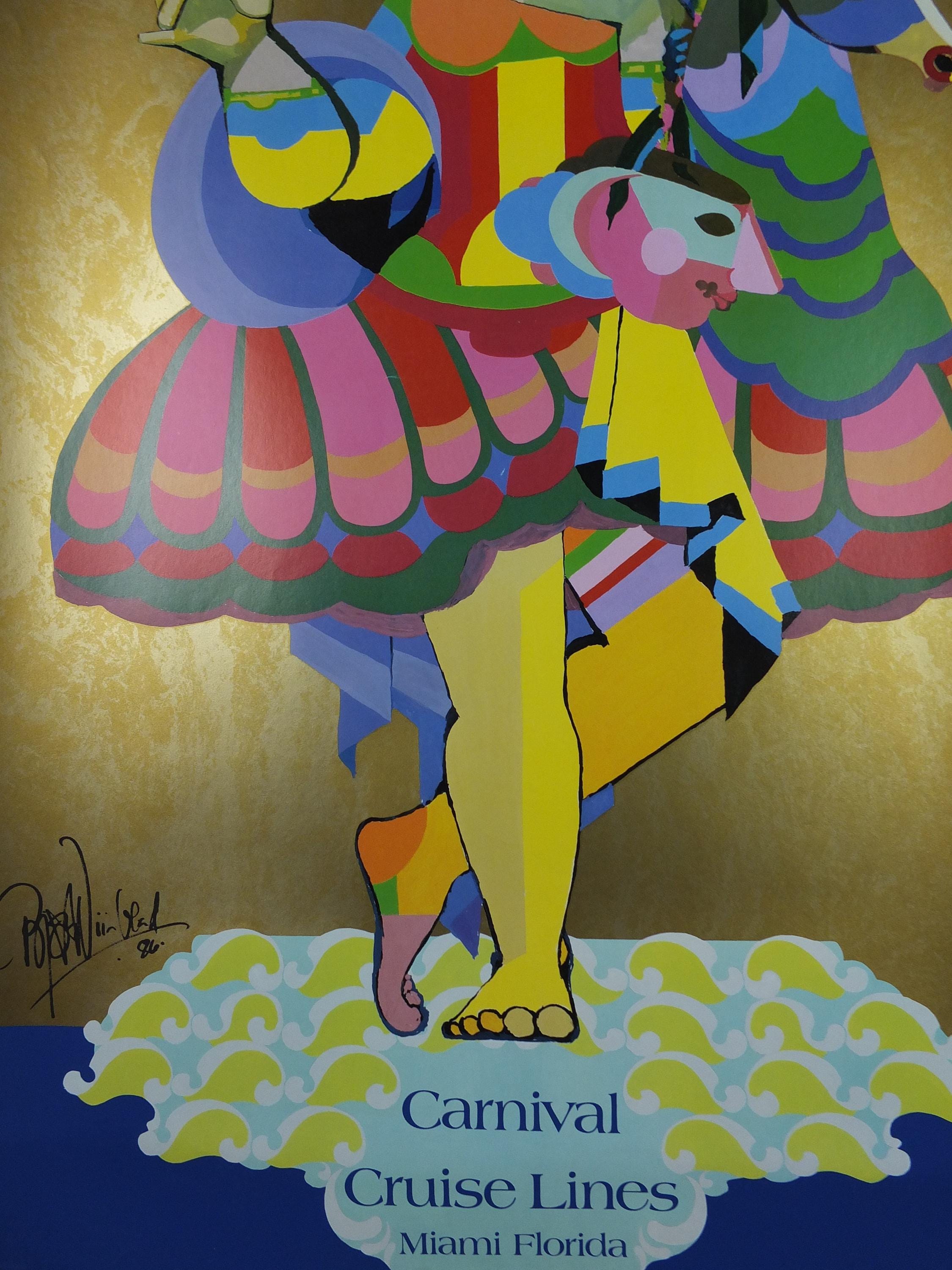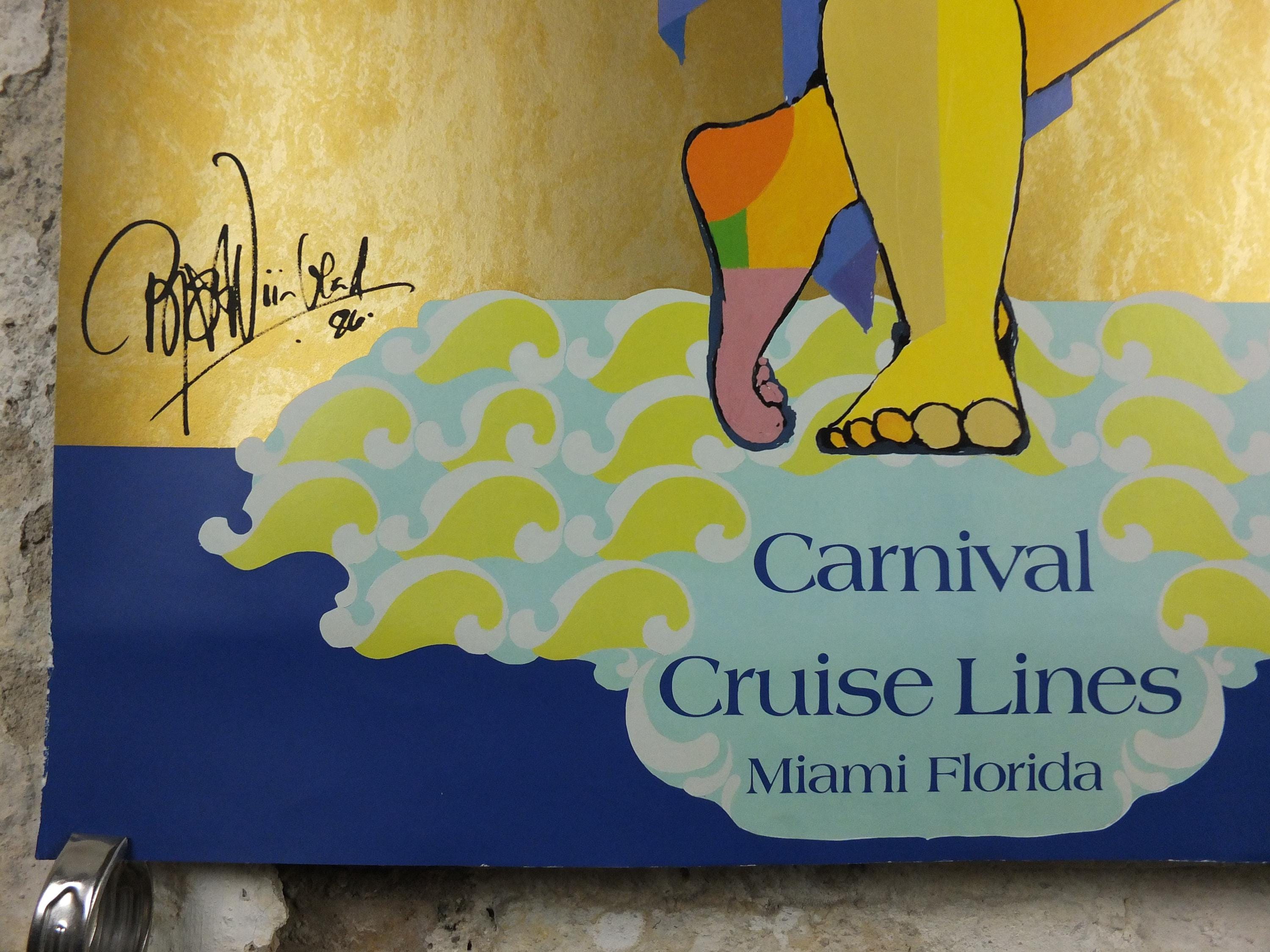 This original beautiful and colourful Bjorn Wiinblad poster for Carnival Cruise Lines from Miami Florida