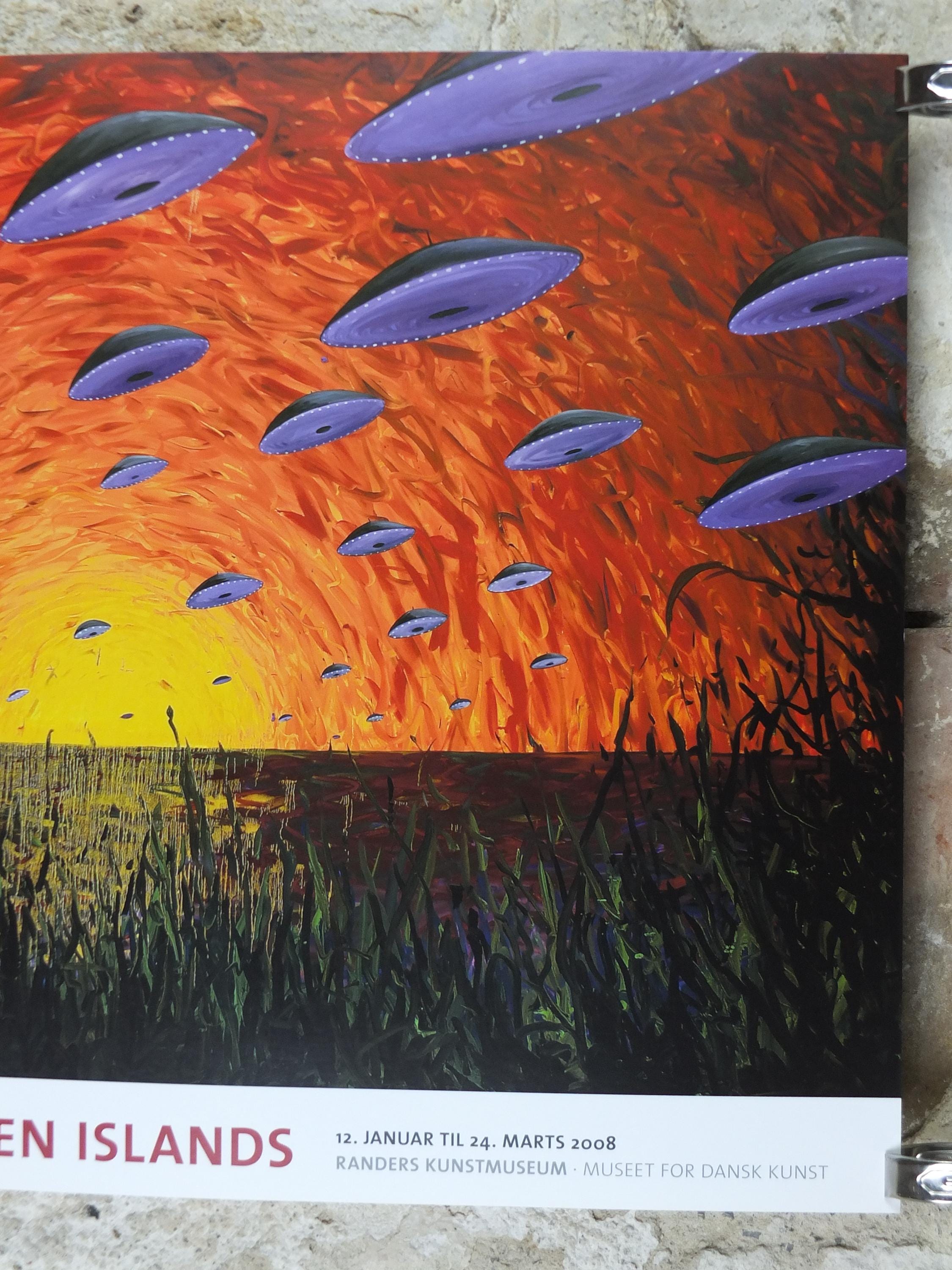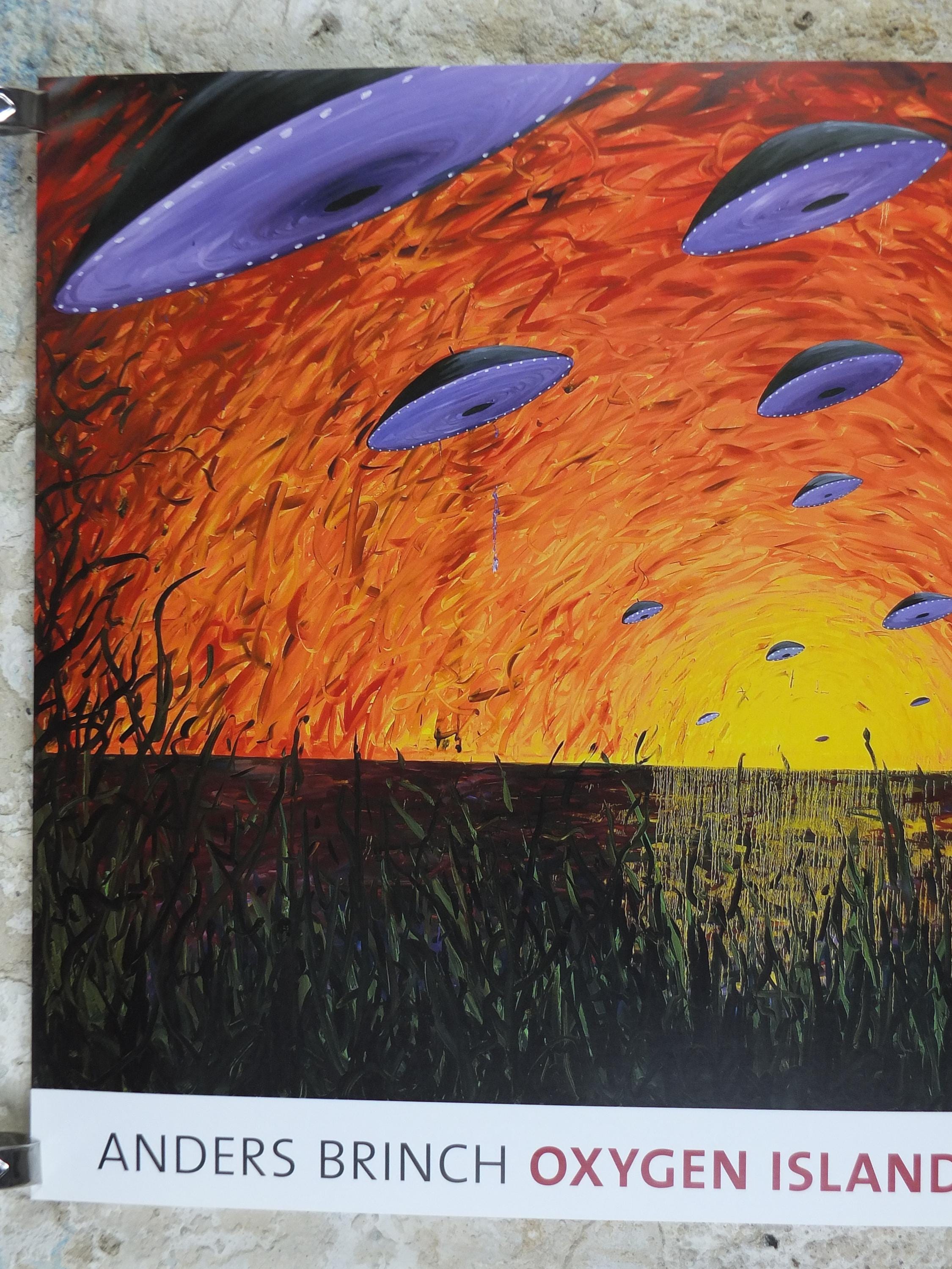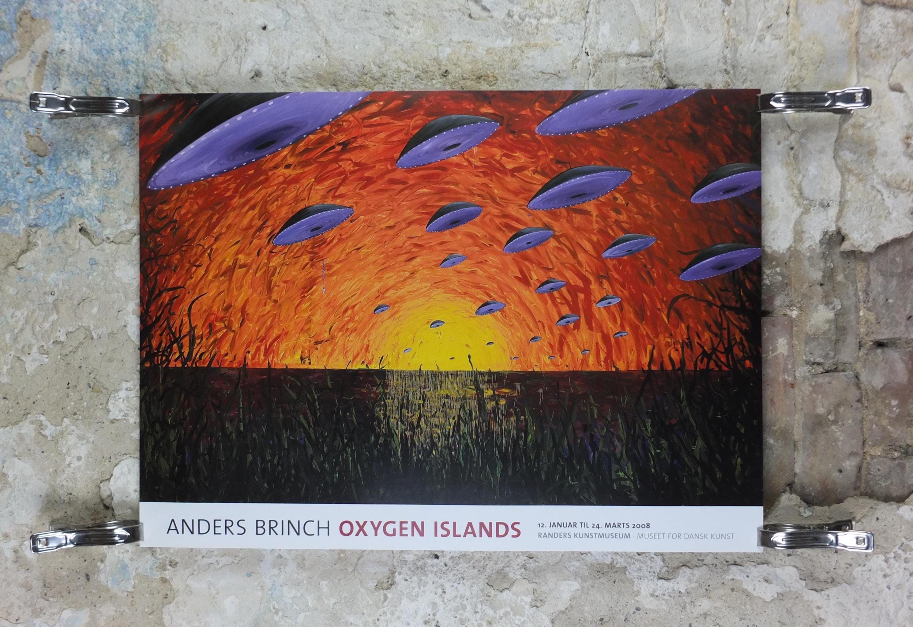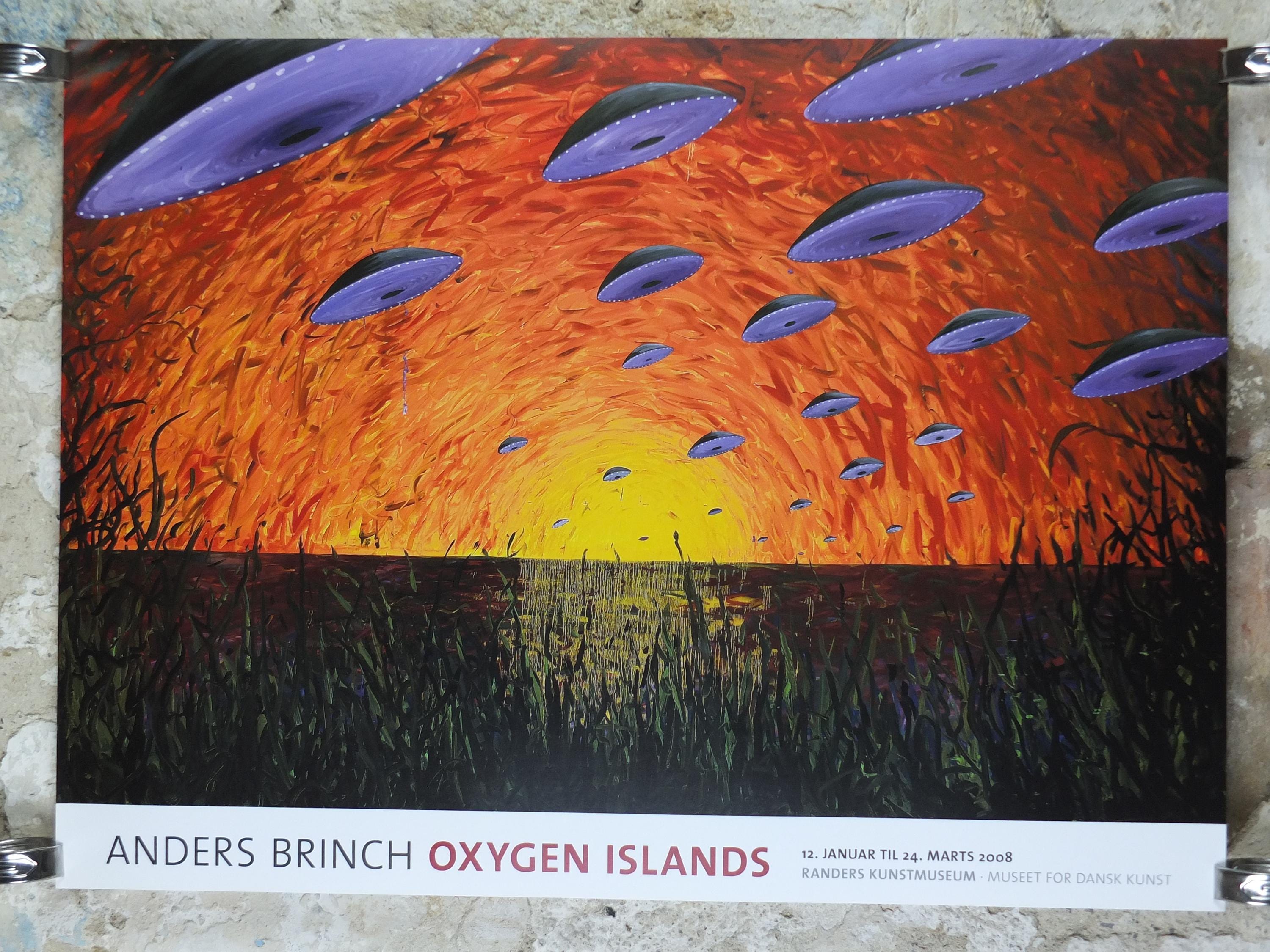 This original Anders Brinch exhibition poster is from the Randers Art Museum – Museum for Danish Art, Denmark for the 2008 exhibition featuring "Oxygen Islands" from 2007.