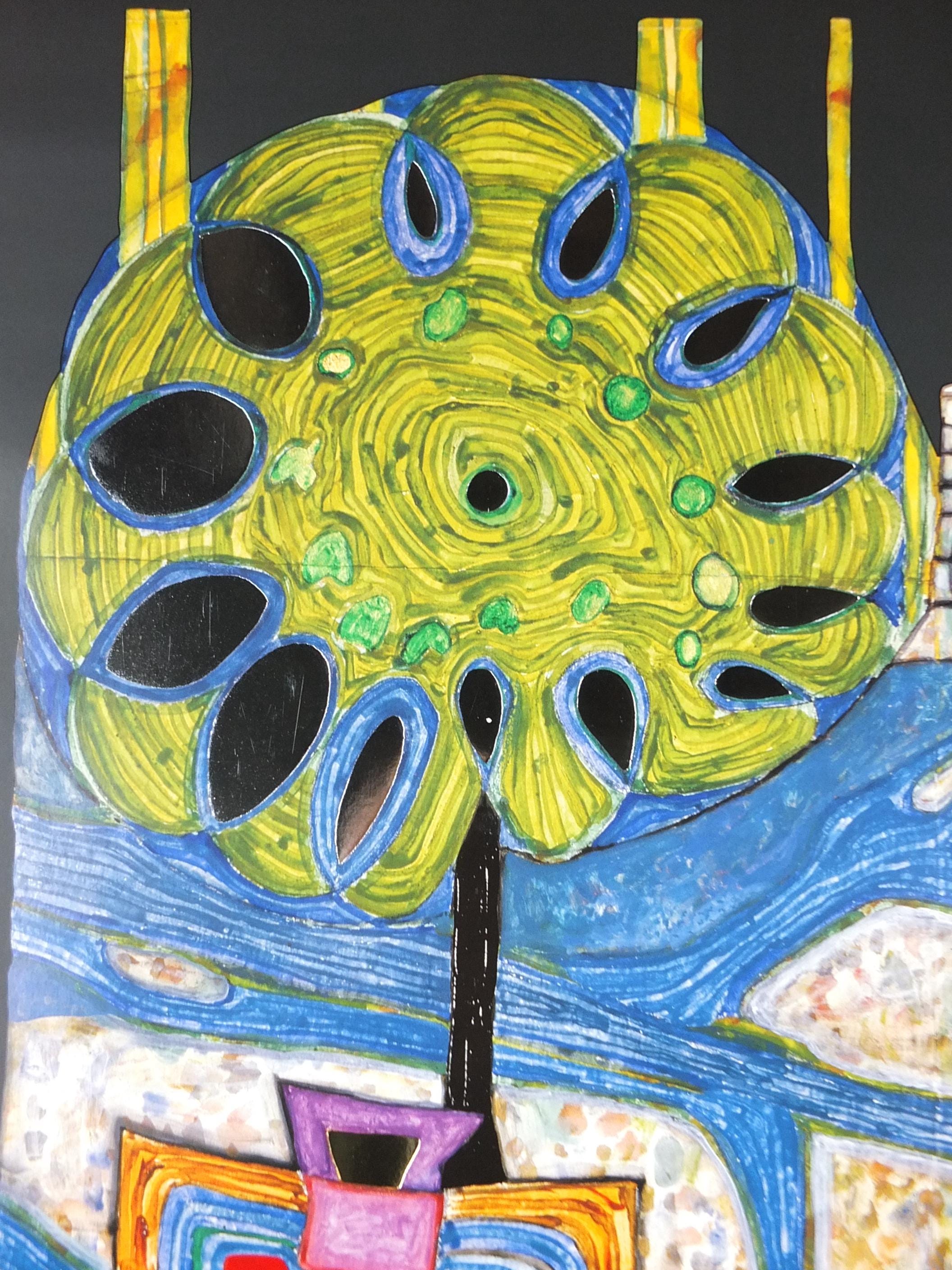 This is a Friedensreich Hundertwasser poster from 2007 of his 1987 work "Tropenchinese" or "Tropical Chinese" from the Hundertwasser Collection.