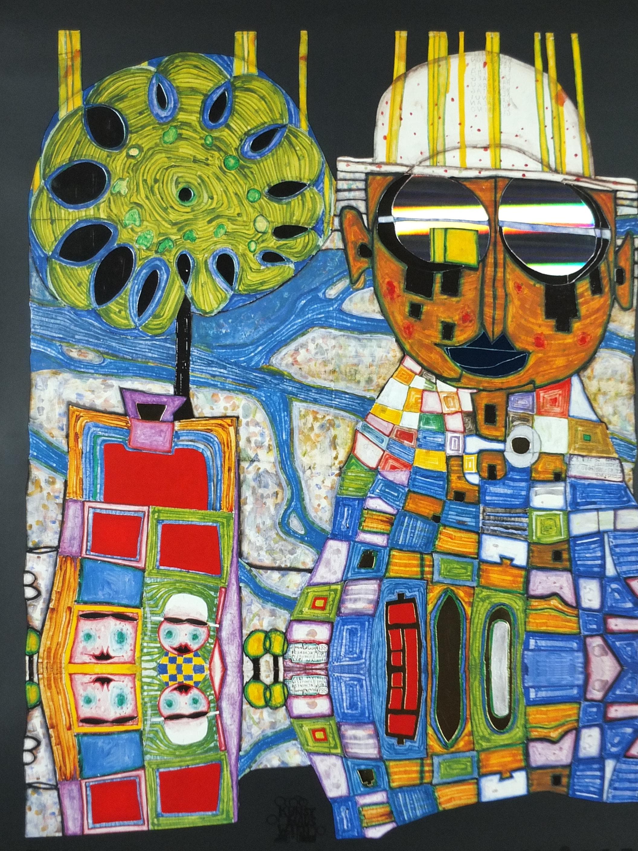 Hundertwasser's comment on the work, "My division of labour for print-graphics production was in full force: Japan for wood-block prints, Paris for lithography, Venice for silkscreen printing and Vienna for engraving and copperplate engraving. I think there is no better way of dividing up and utilising the traditional mastery in the various sectors of print graphics."