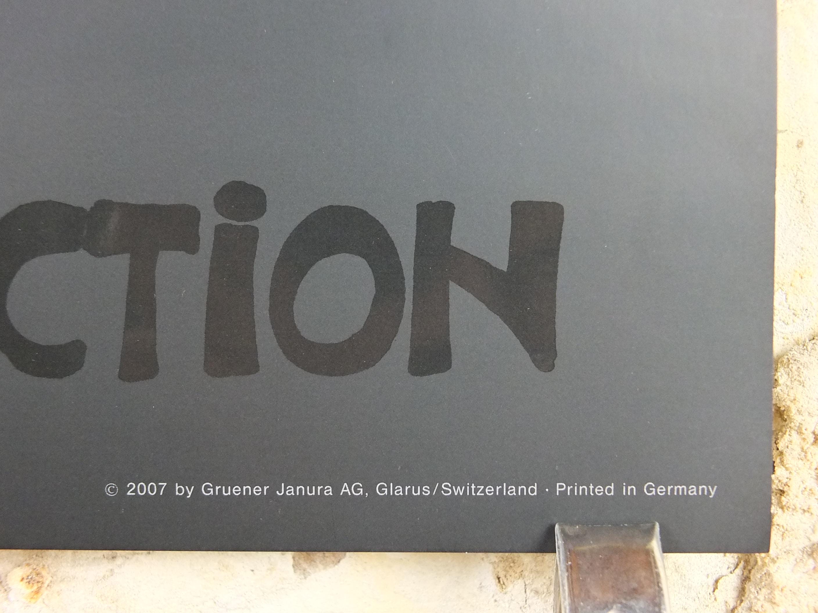 The printing process for this poster is very different to most. It is produced using an 8-color premium offset printing process on 250 g/m² Chromolux paper. In a complicated process there were blue, glitter blue and shiny glossy reflective foil. The process takes four different printing companies to complete.