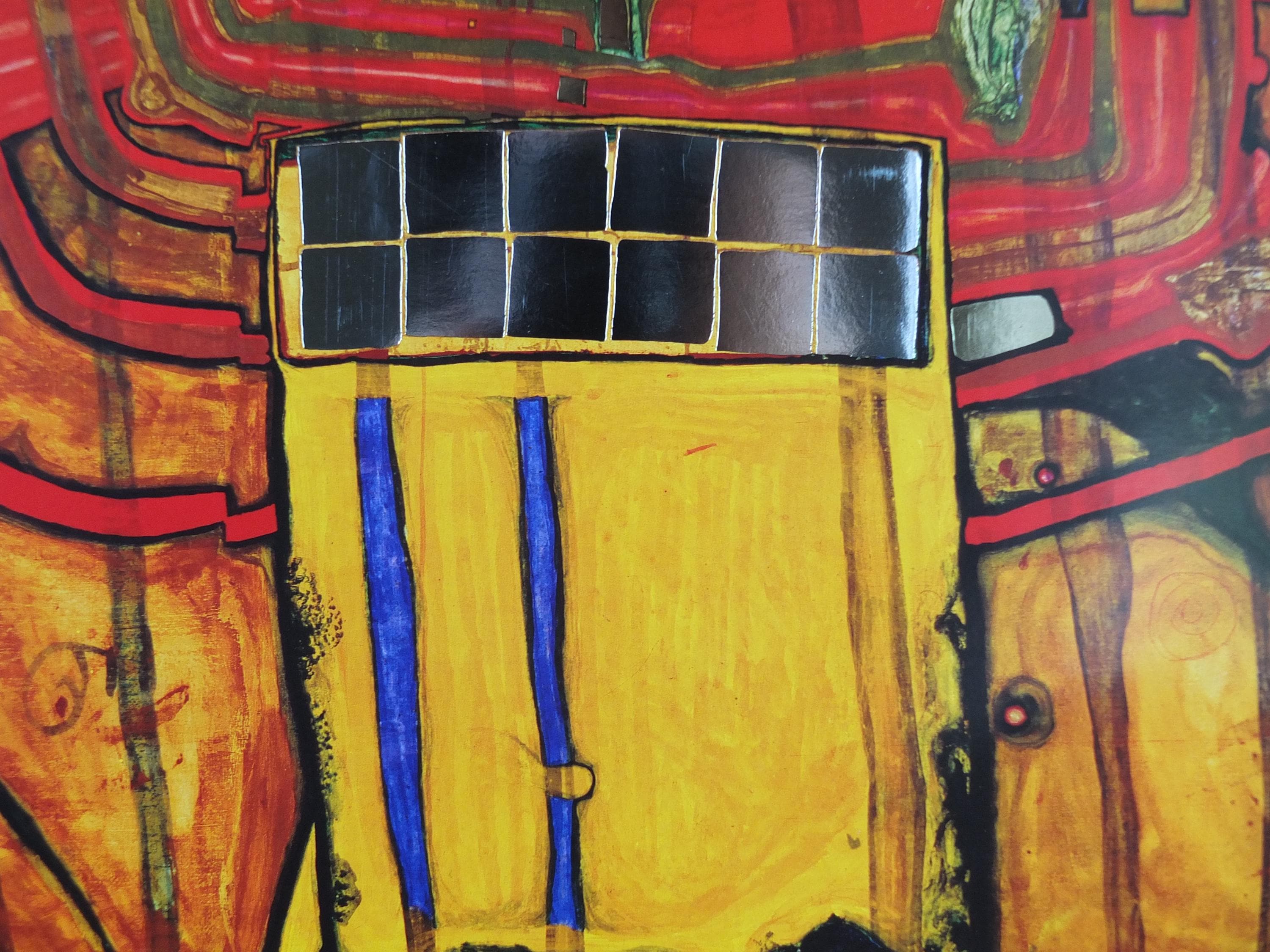Commissioned by and created for Österreich Werbung (Austrian National Tourist Office), Vienna, in 1991, together with a second poster dedicated to the environment (see APA 247). The poster was printed in six language versions. In 1992 it was redesigned by Hundertwasser for his architecture travelling exhibition "Kreative Architektur - Gleichnis der Schöpfung" (Creative Architecture in Harmony with Nature), 1992/93.