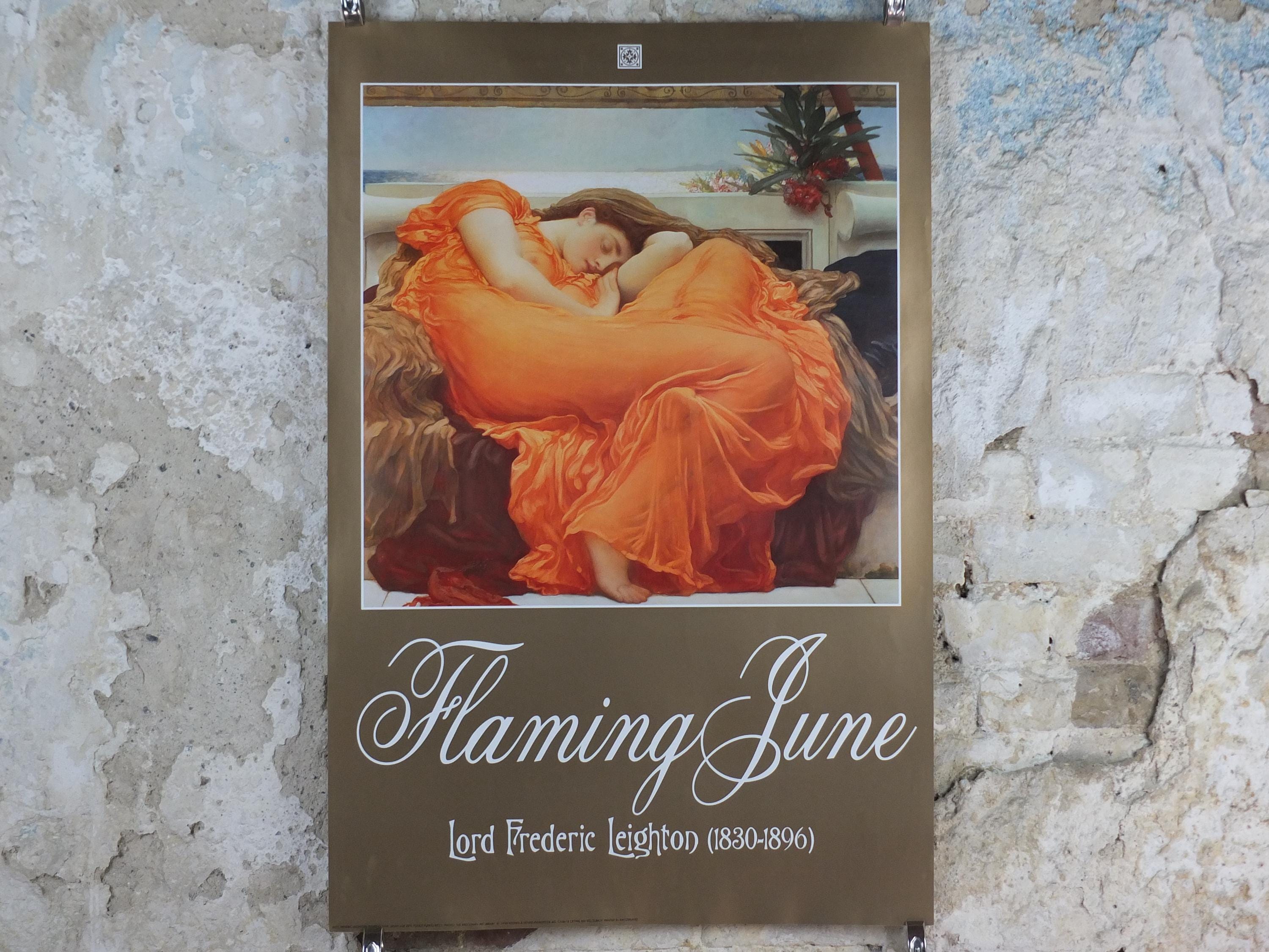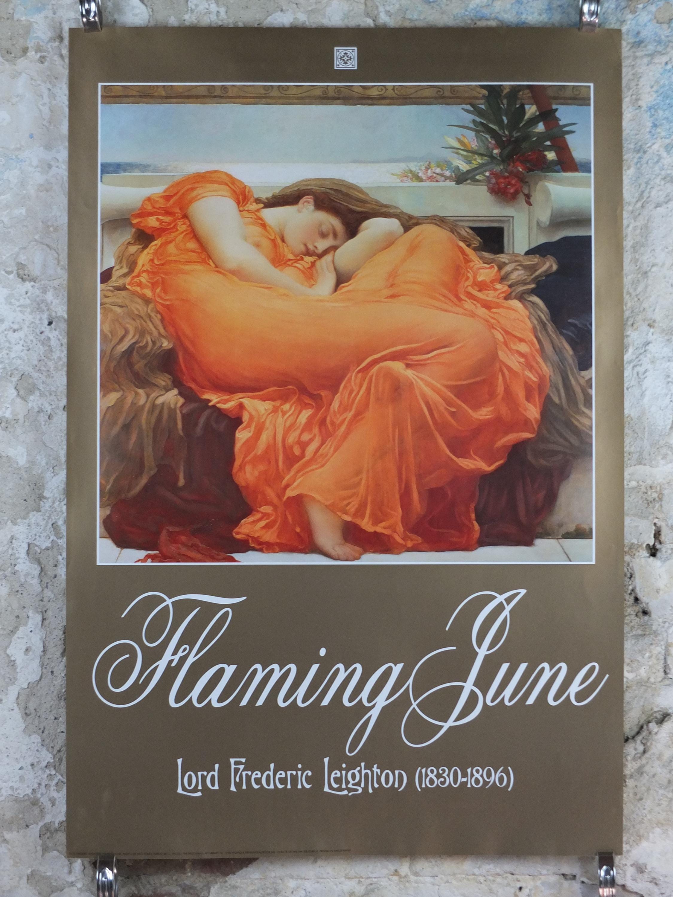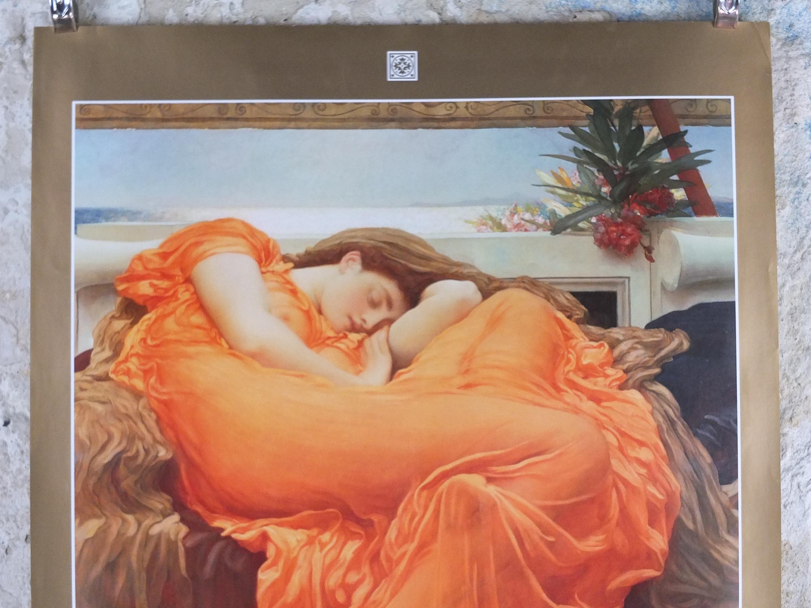 This poster shows "Flaming June" from Lord Frederic Leighton who painted in the academisim and pre-Raphealite art styles.