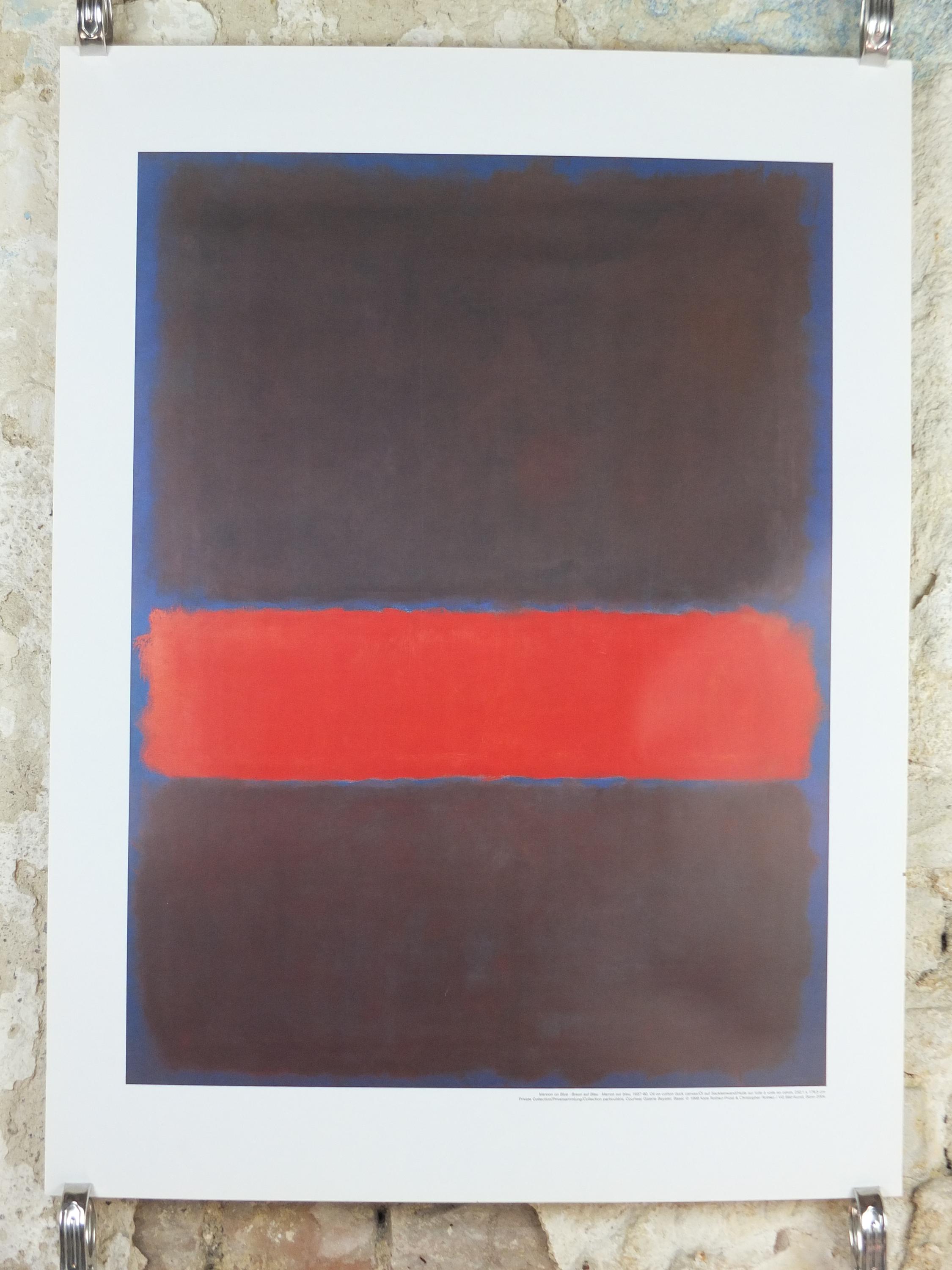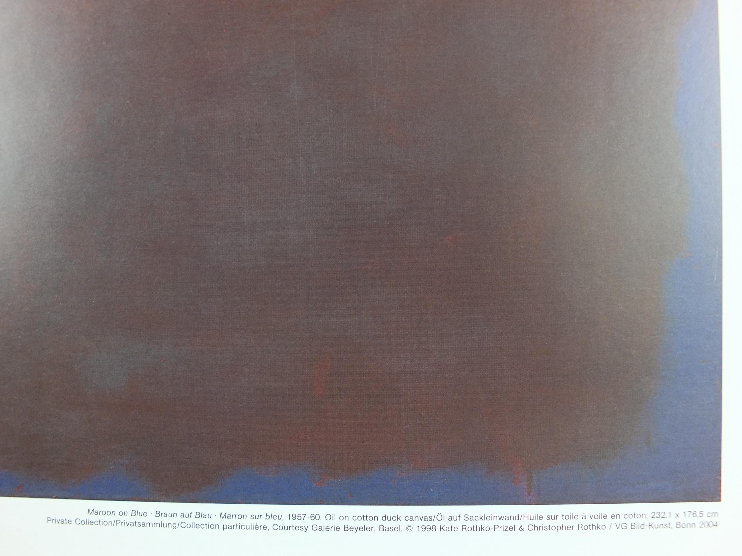 This Mark Rothko poster is from the Galerie Beyeler in Basel, Switzerland for a 1998 exhibition featuring his work "Maroon on Blue" from 1957-60.