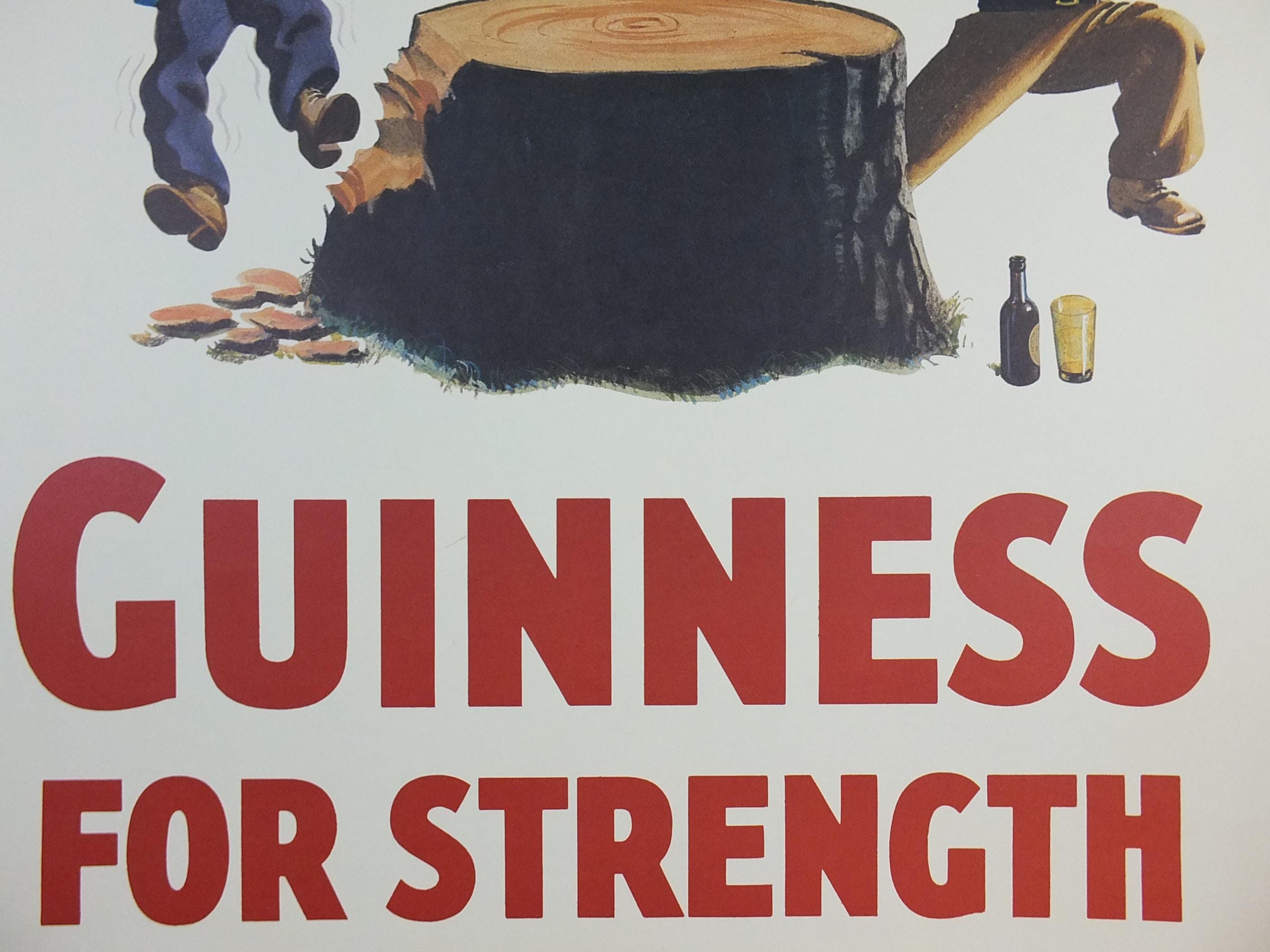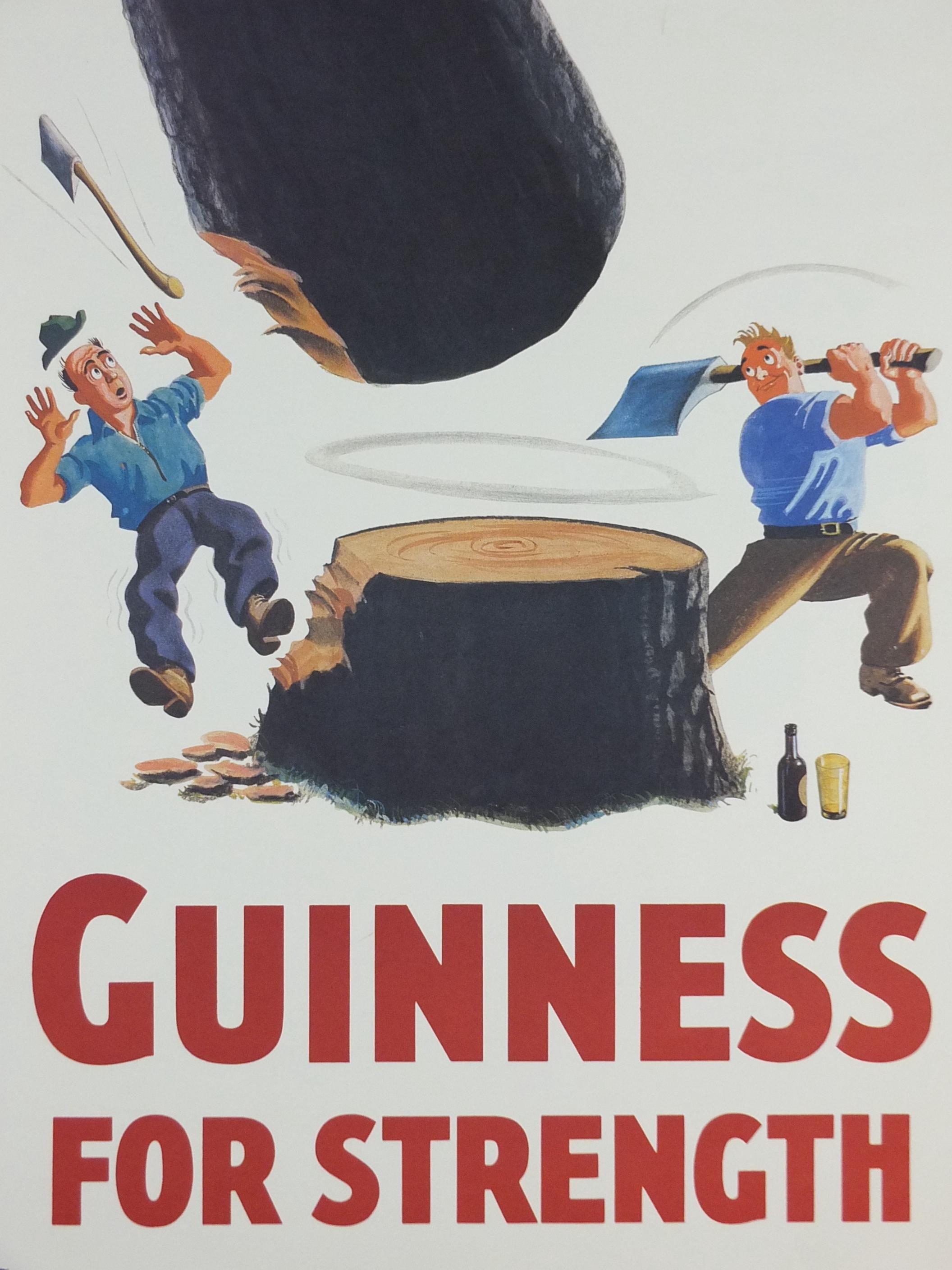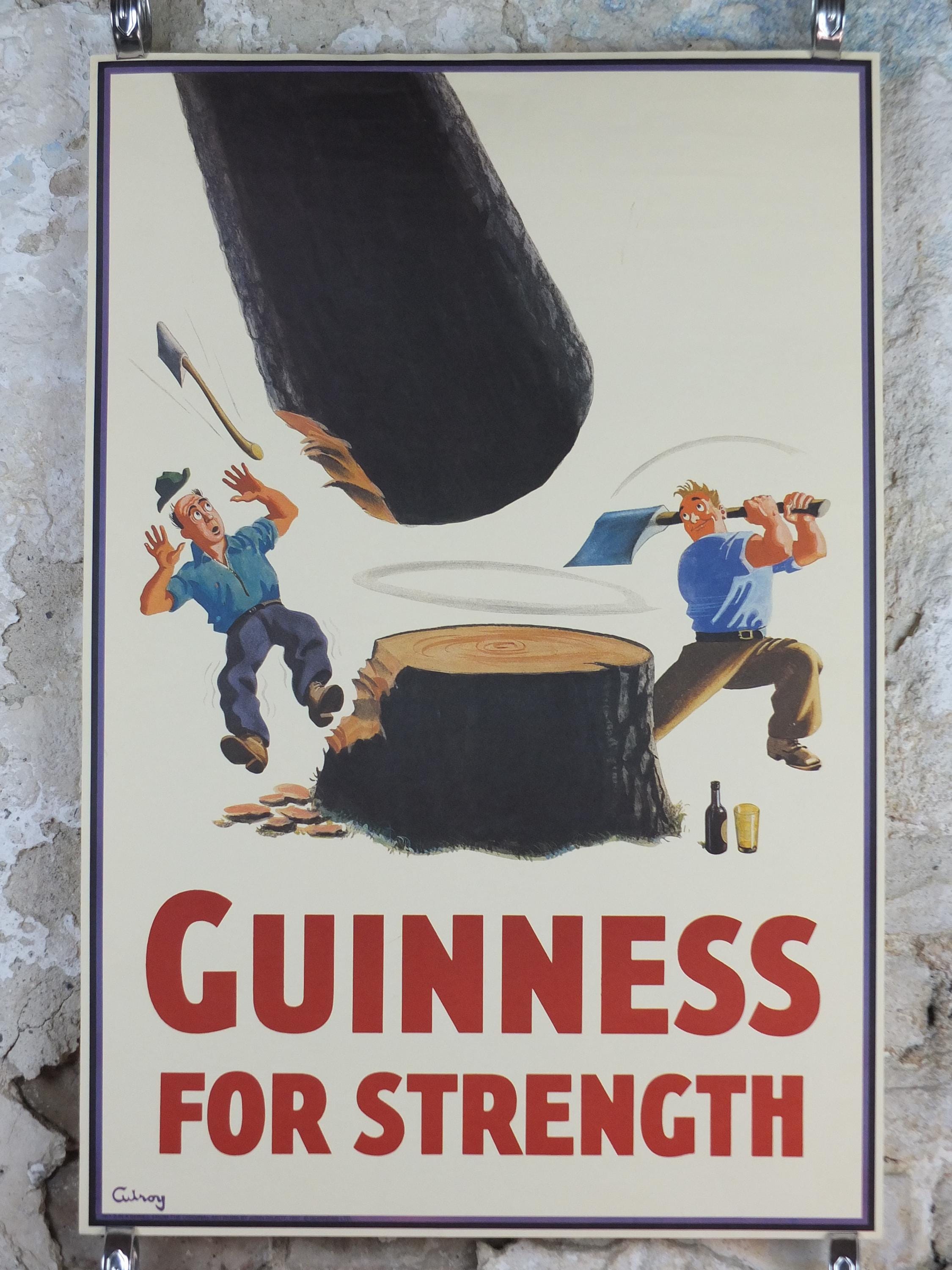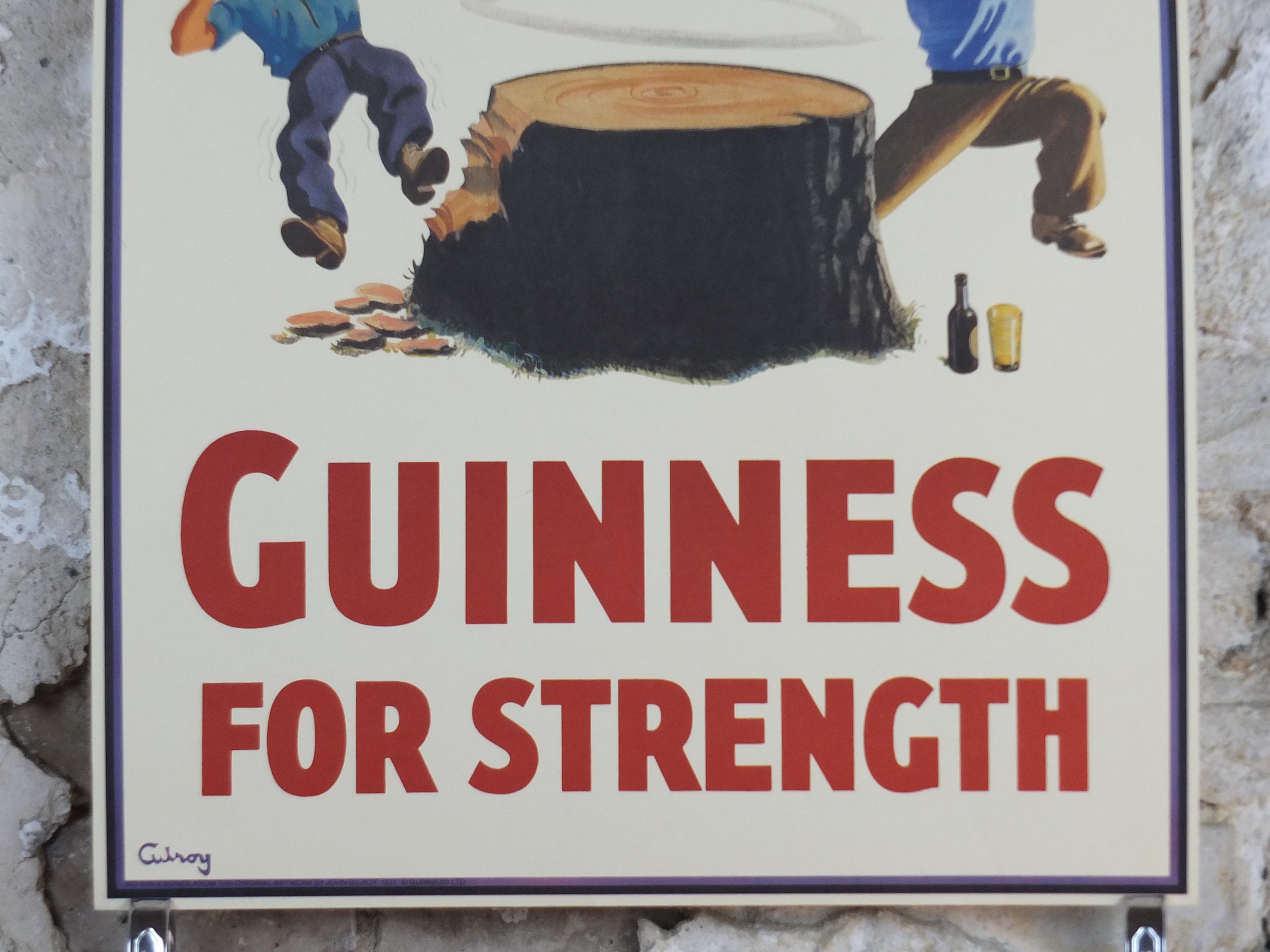 This is a mid 1990s poster from the Guinness Museum in Dublin. It shows a very strong wood cutter or tree surgeon chopping down a big tree with one chop. Like Popeye with his spinach, only it's a Guinness!