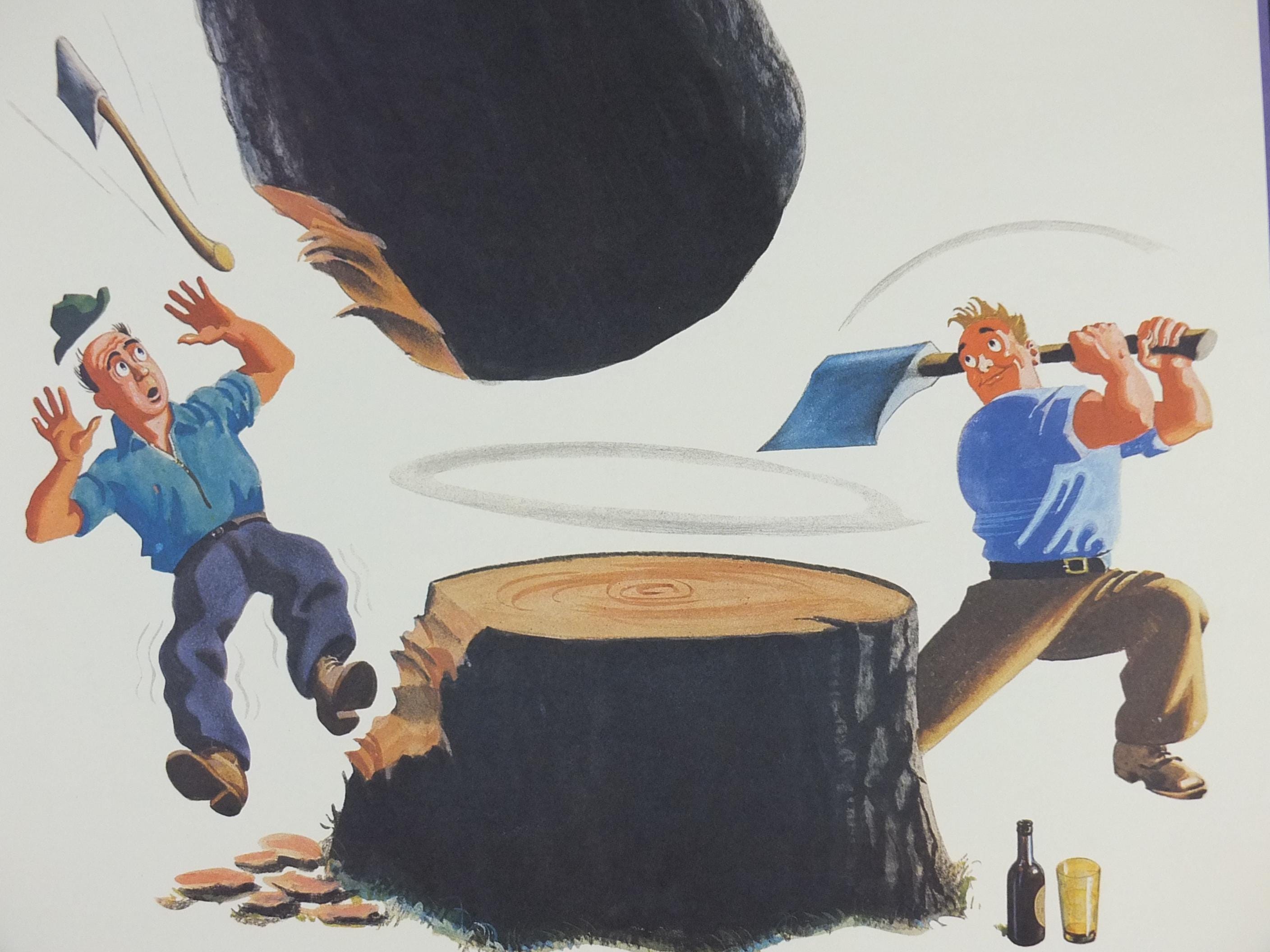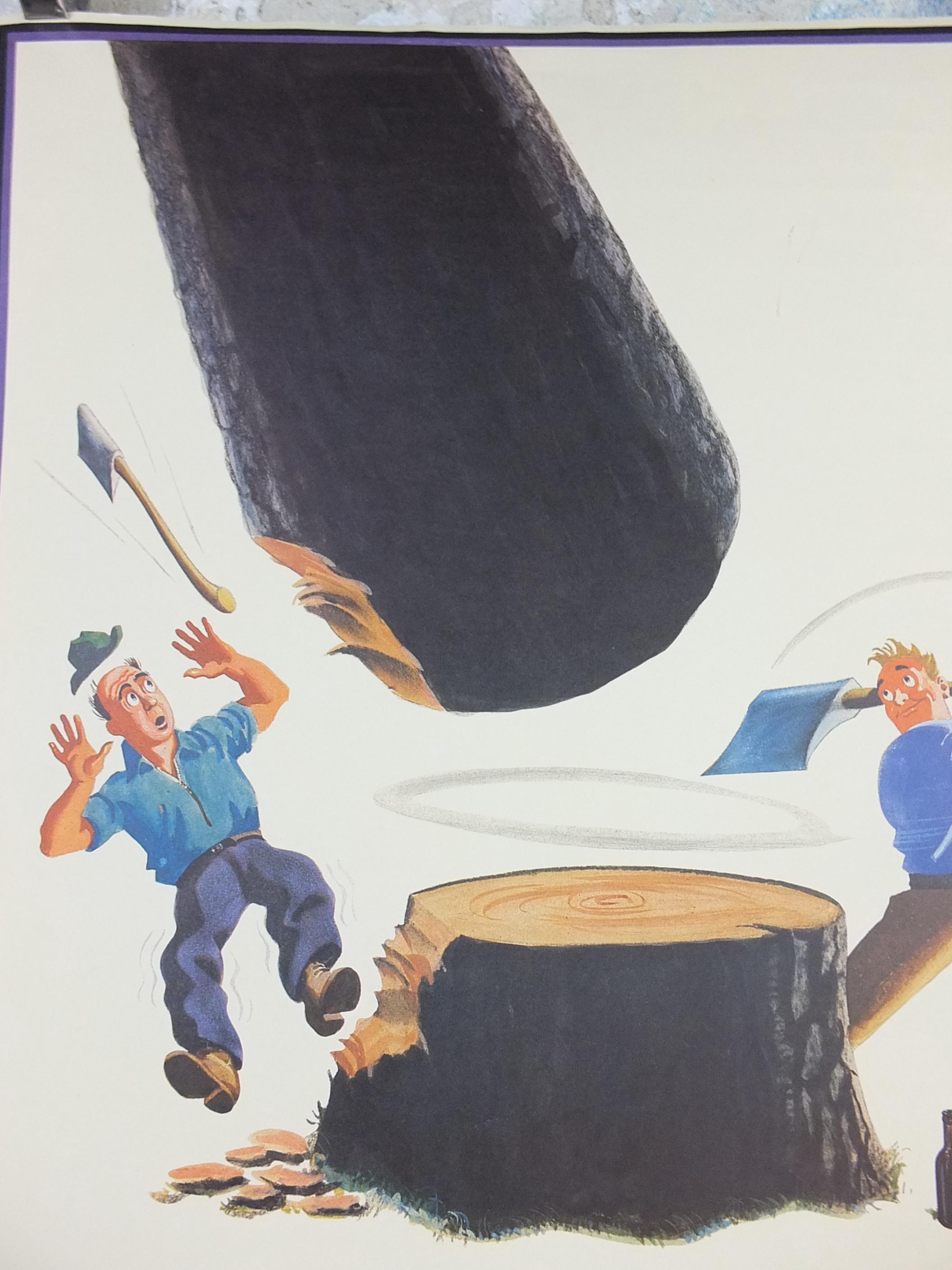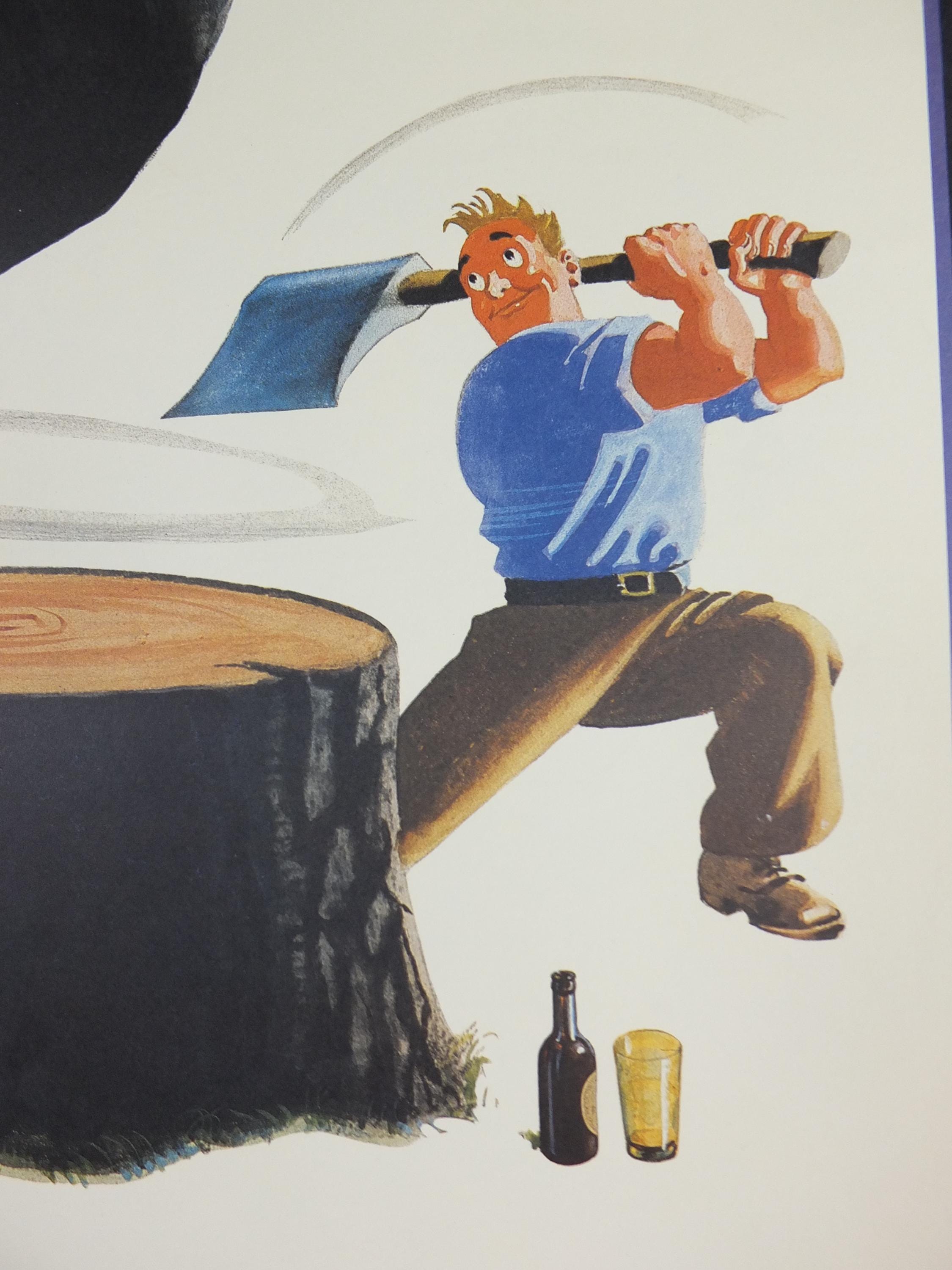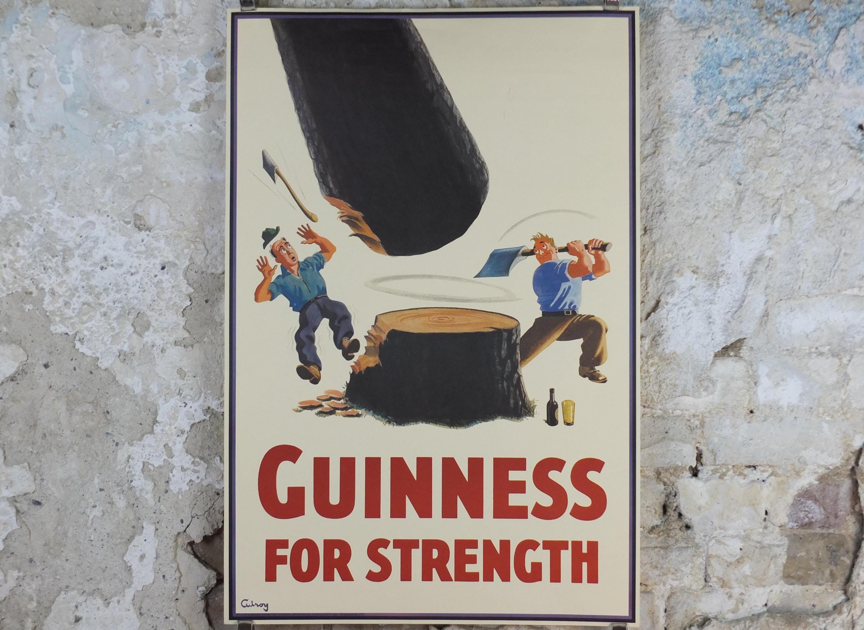 This is a mid 1990s poster from the Guinness Museum in Dublin. It shows a very strong wood cutter or tree surgeon chopping down a big tree with one chop. Like Popeye with his spinach, only it's a Guinness!