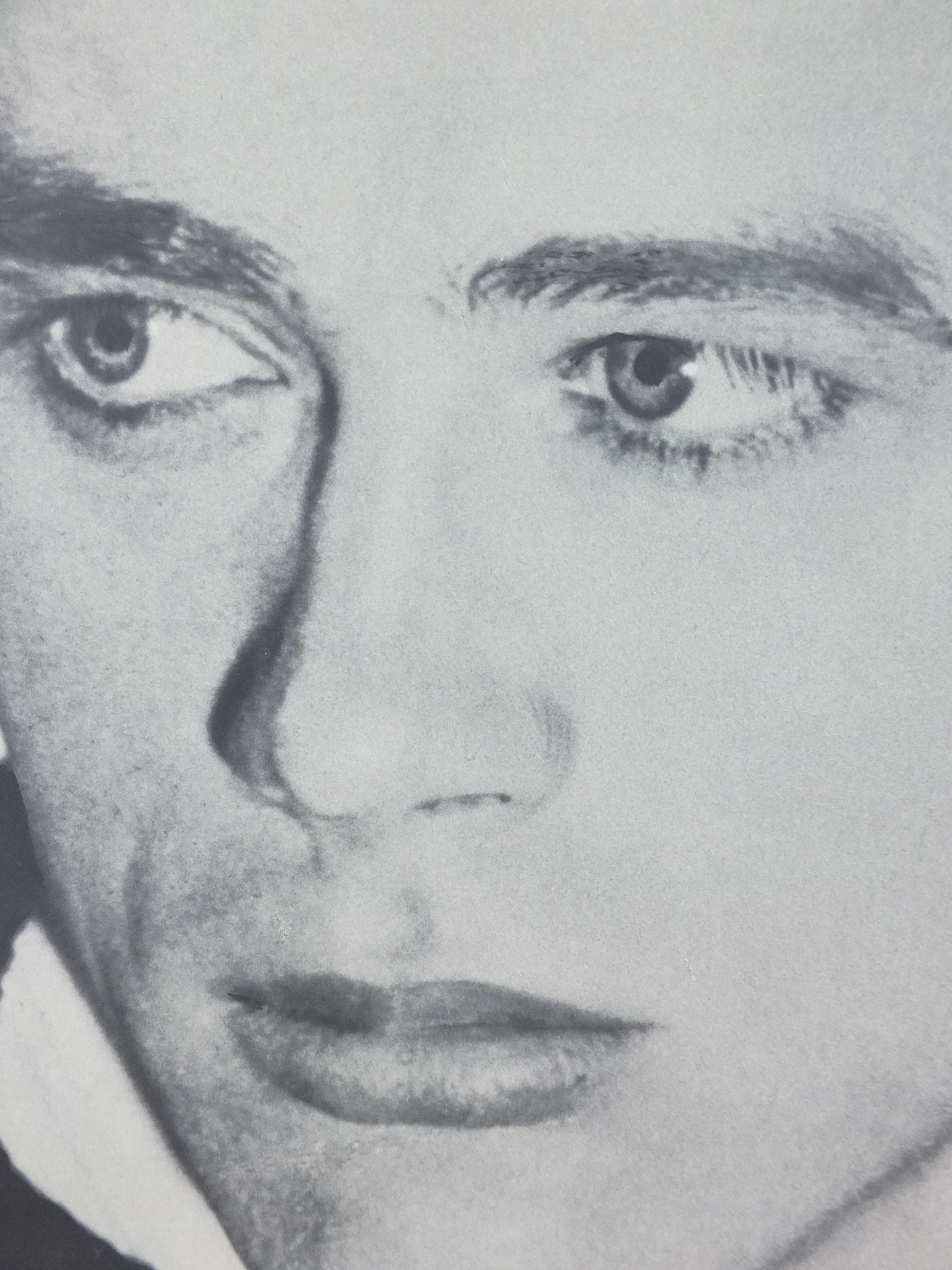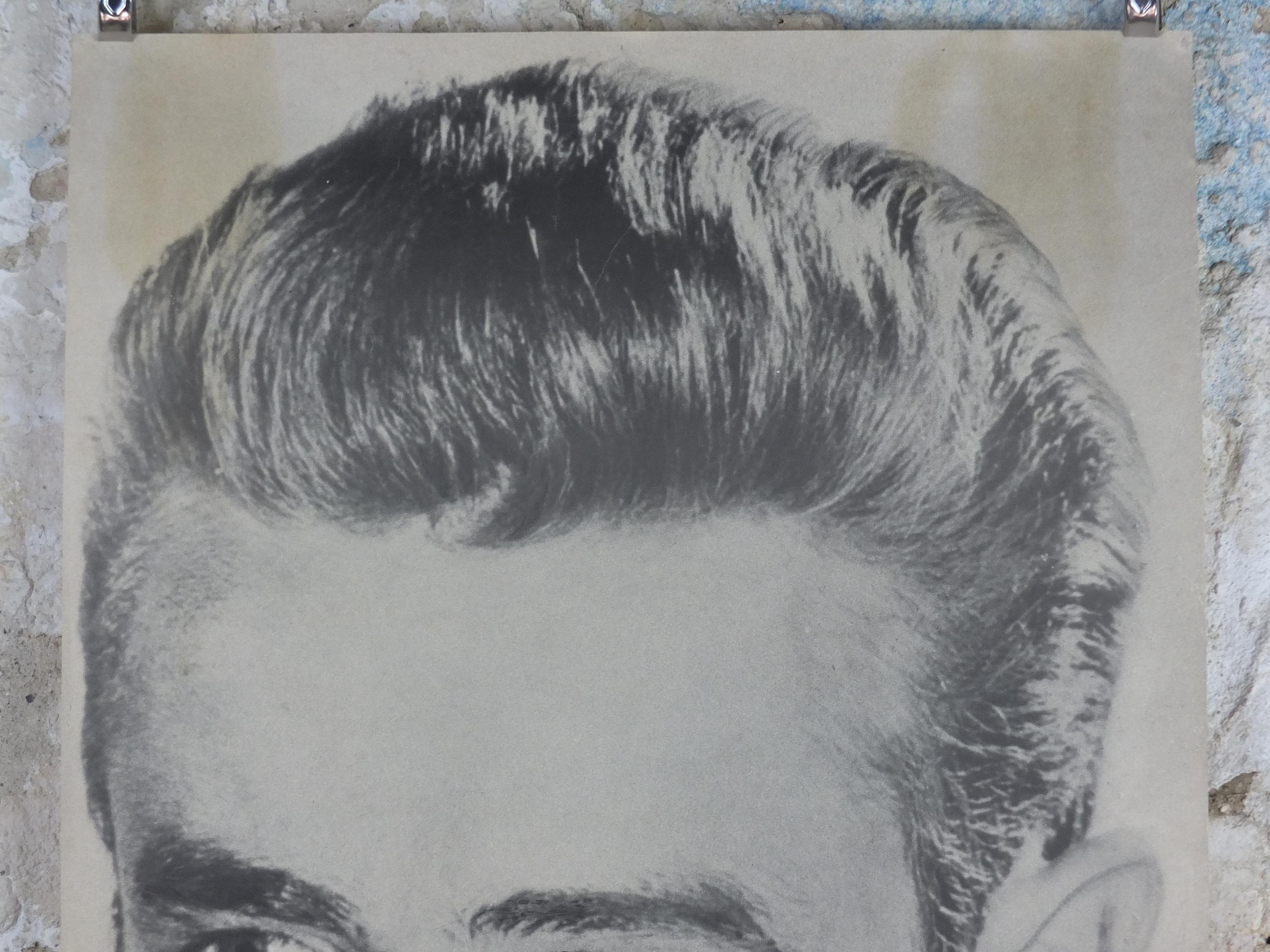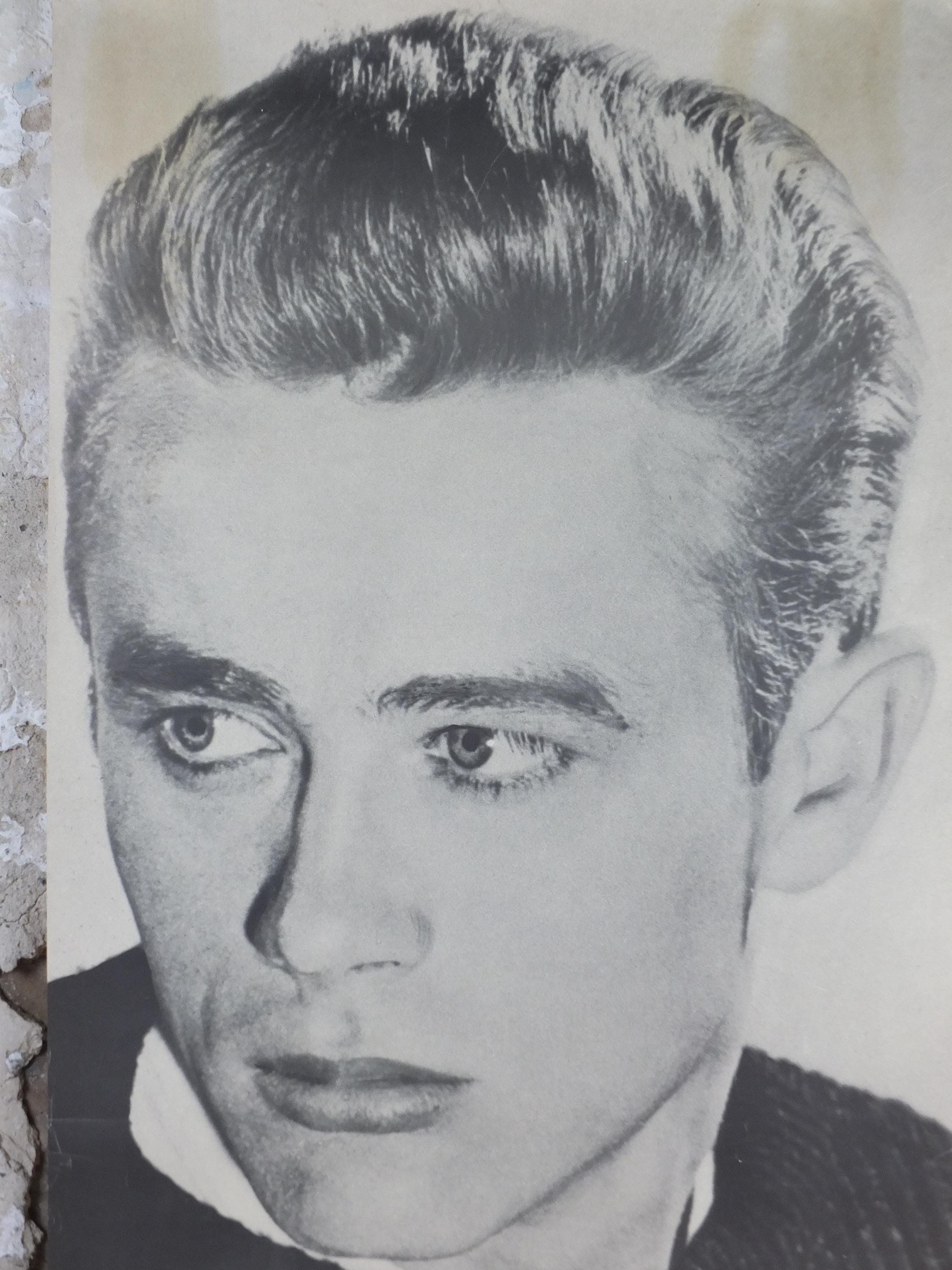 This is a vintage poster from the 1980 of James Dean from the movie "Rebel Without a Cause". Its a close-up image of his intense yet vulnerable gaze, the poster is likely marketed to capture his overall "Rebel" persona associated primarily with Rebel Without a Cause.