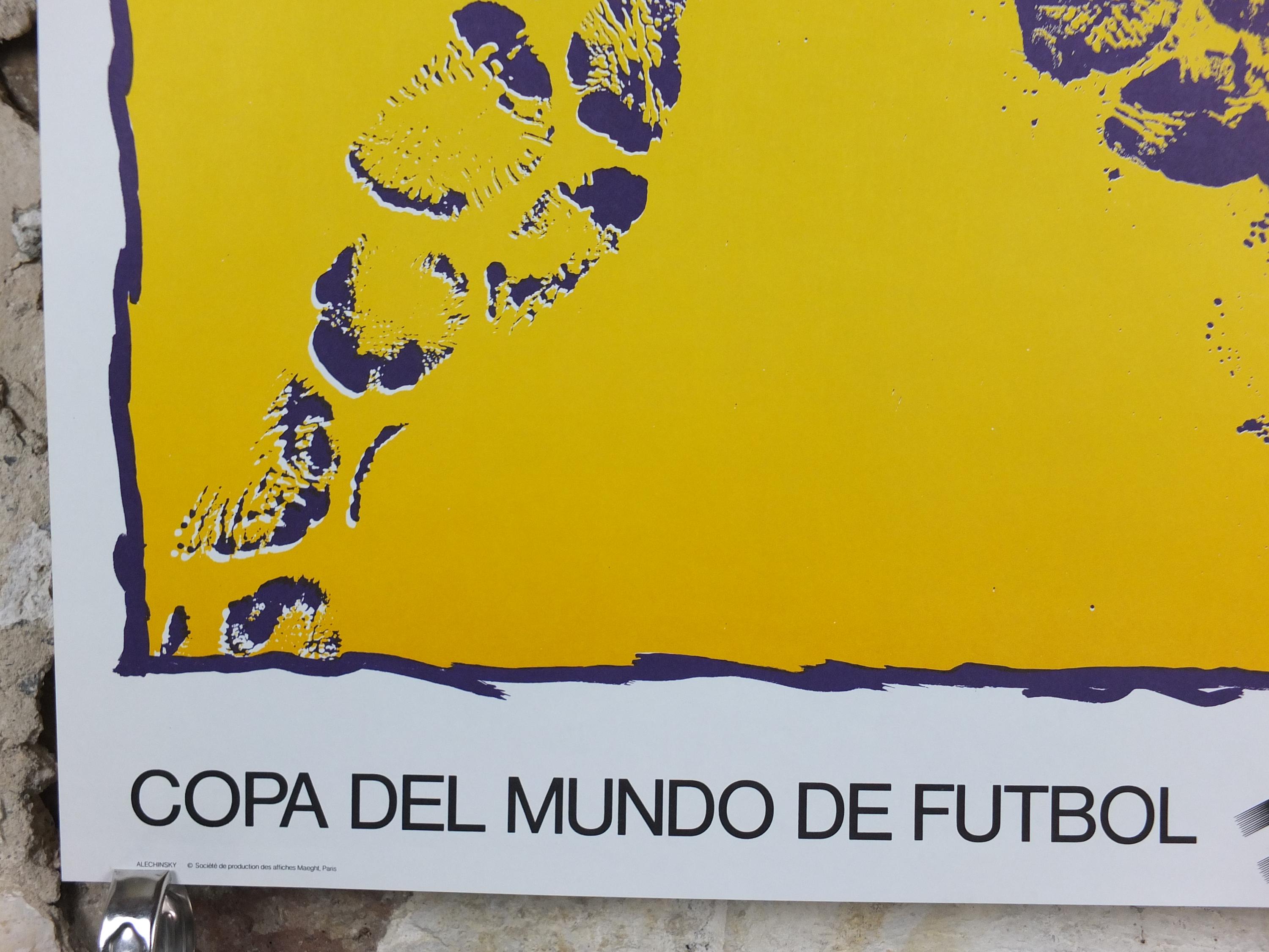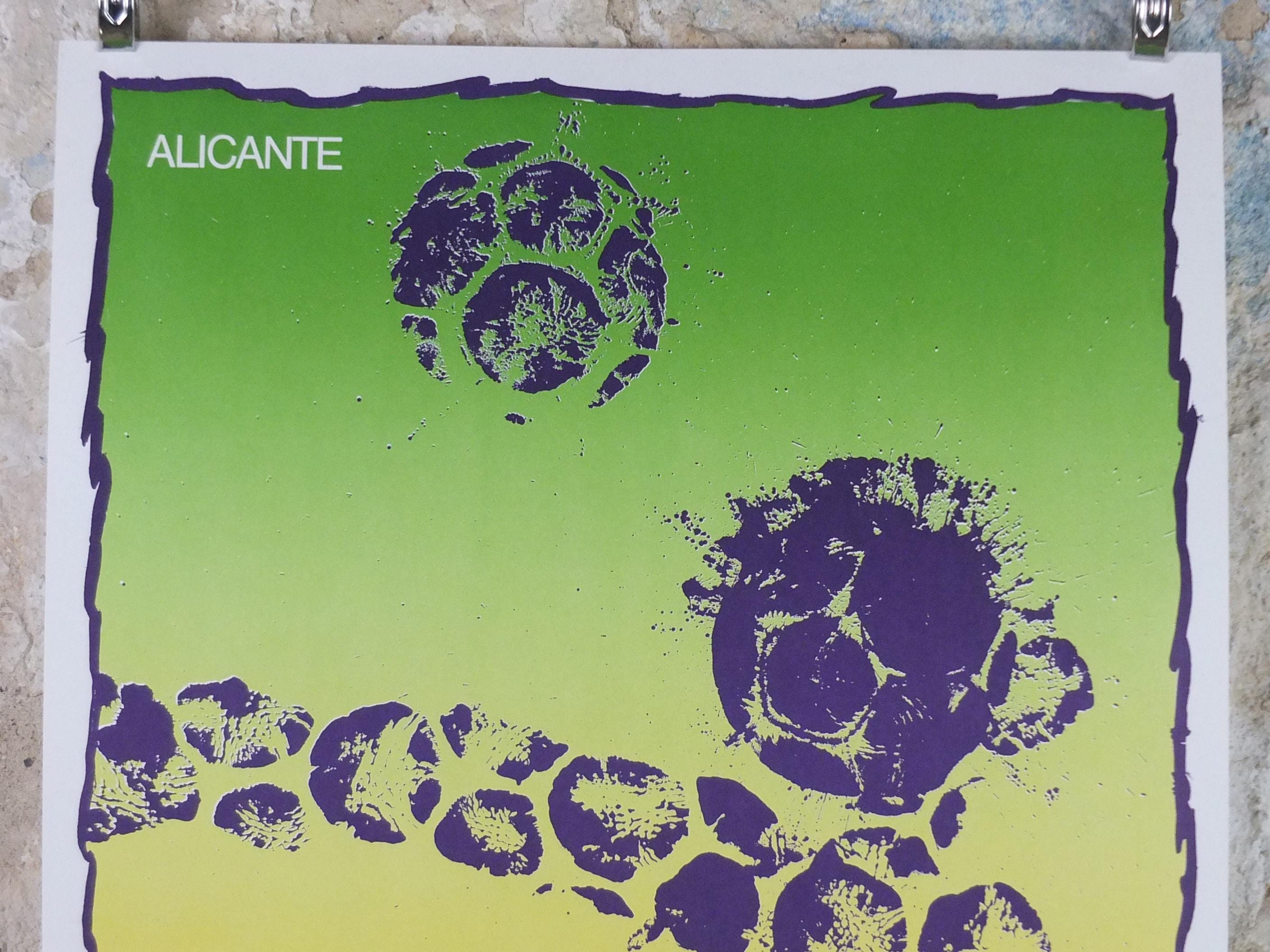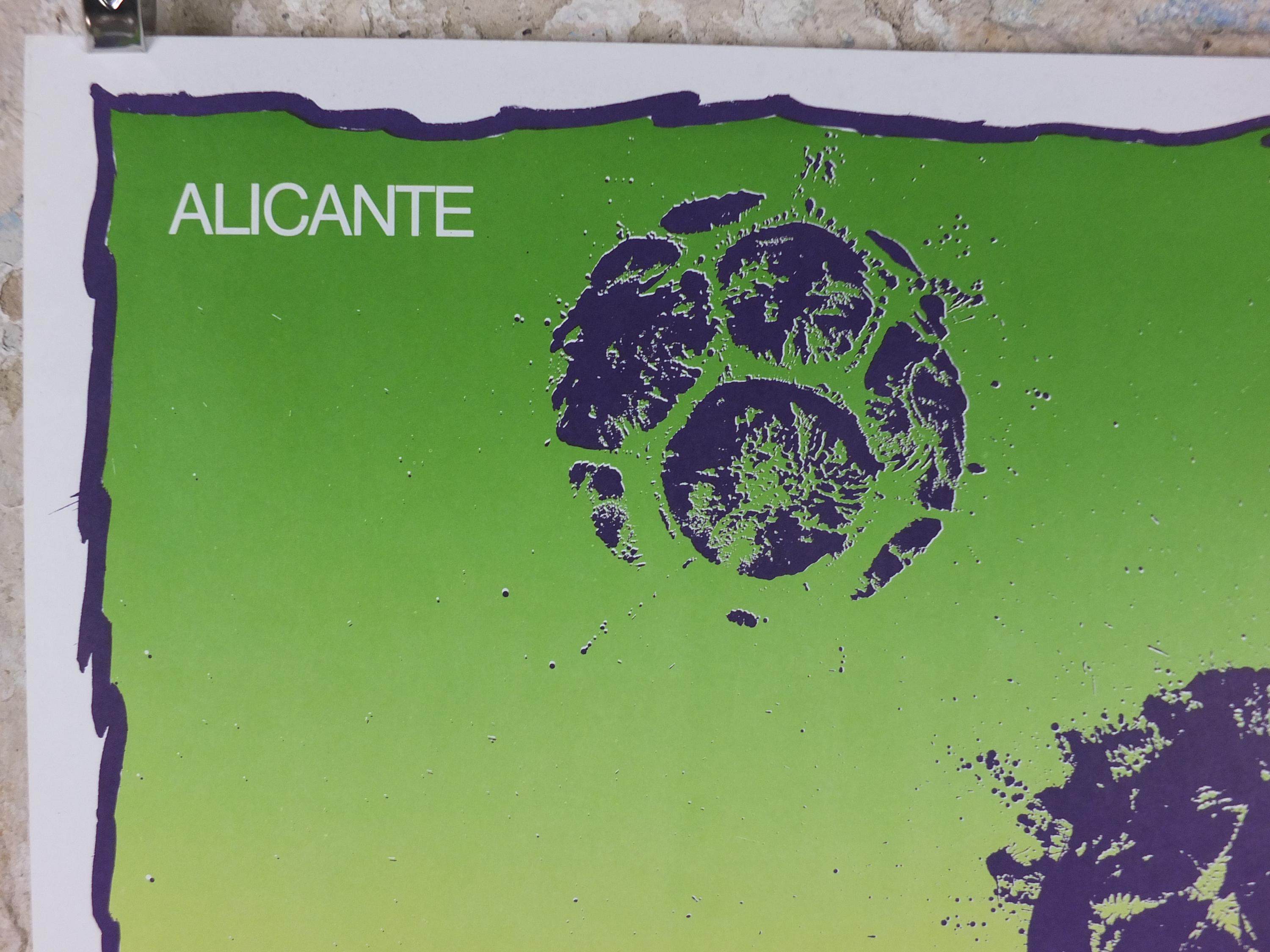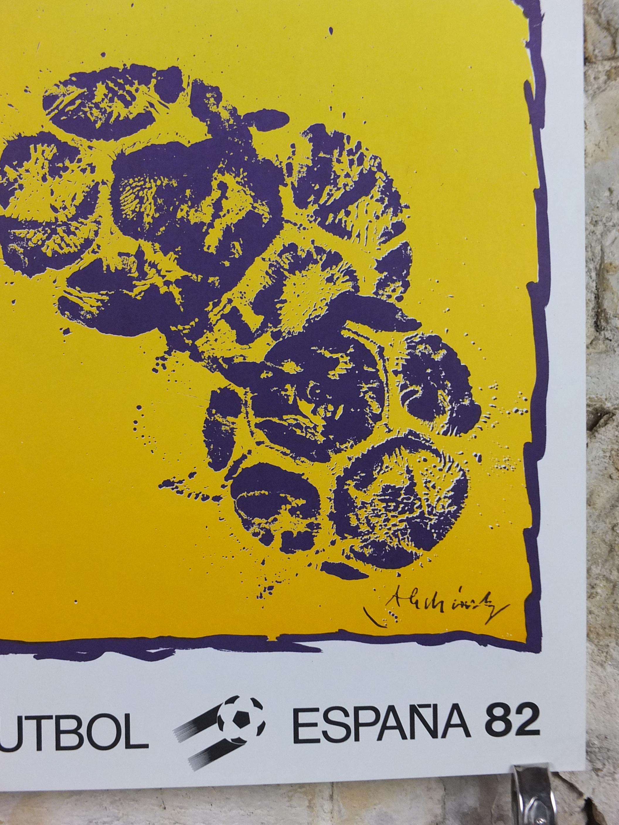 This an original World Cup poster of the Vigo stadium from Spain's 1982 World Cup Football showing the Alicante location with an imprint tracking of a football.