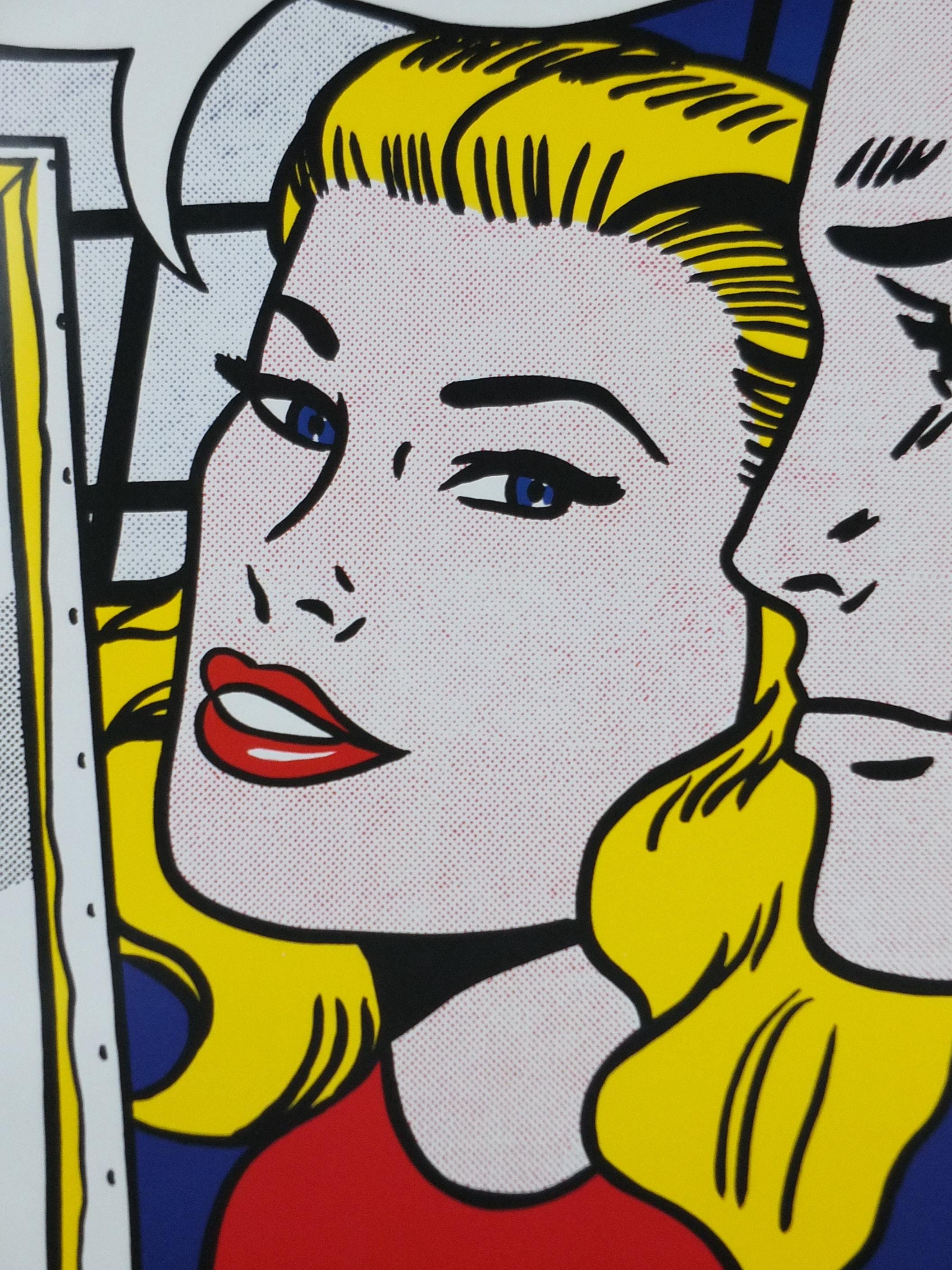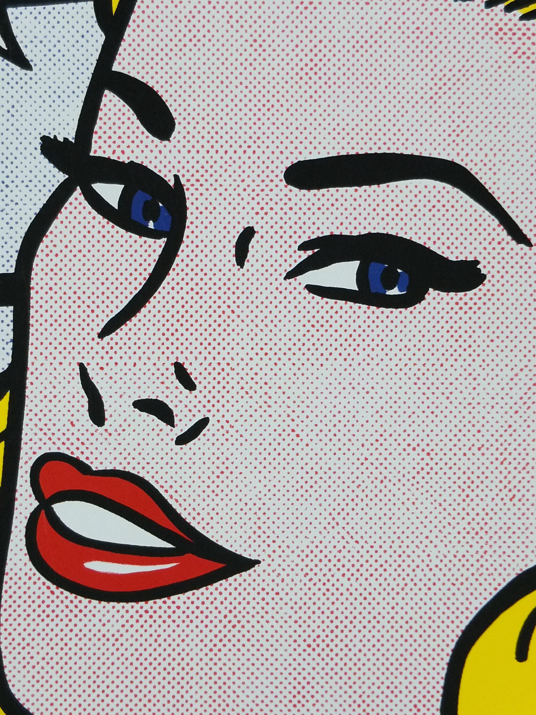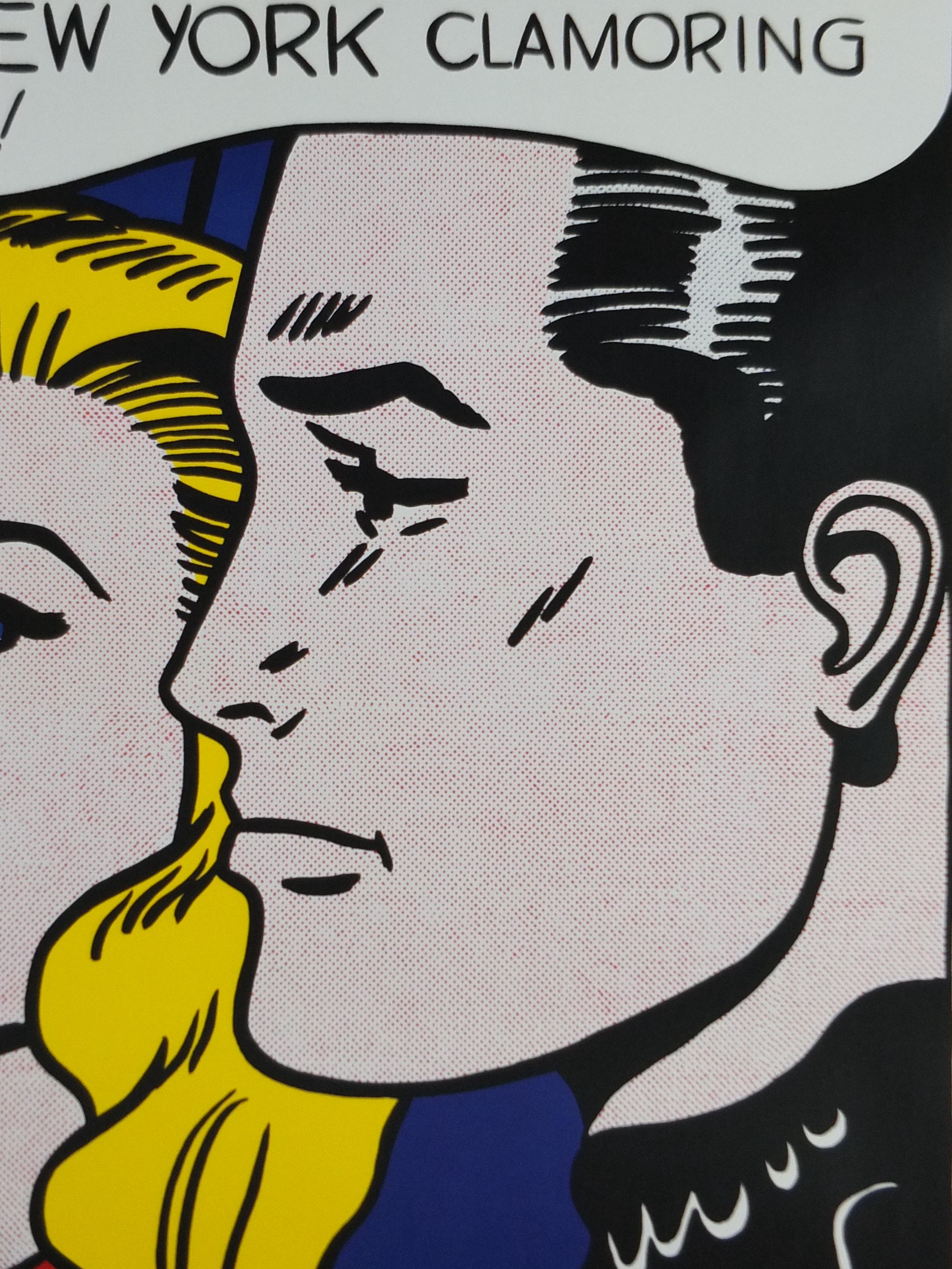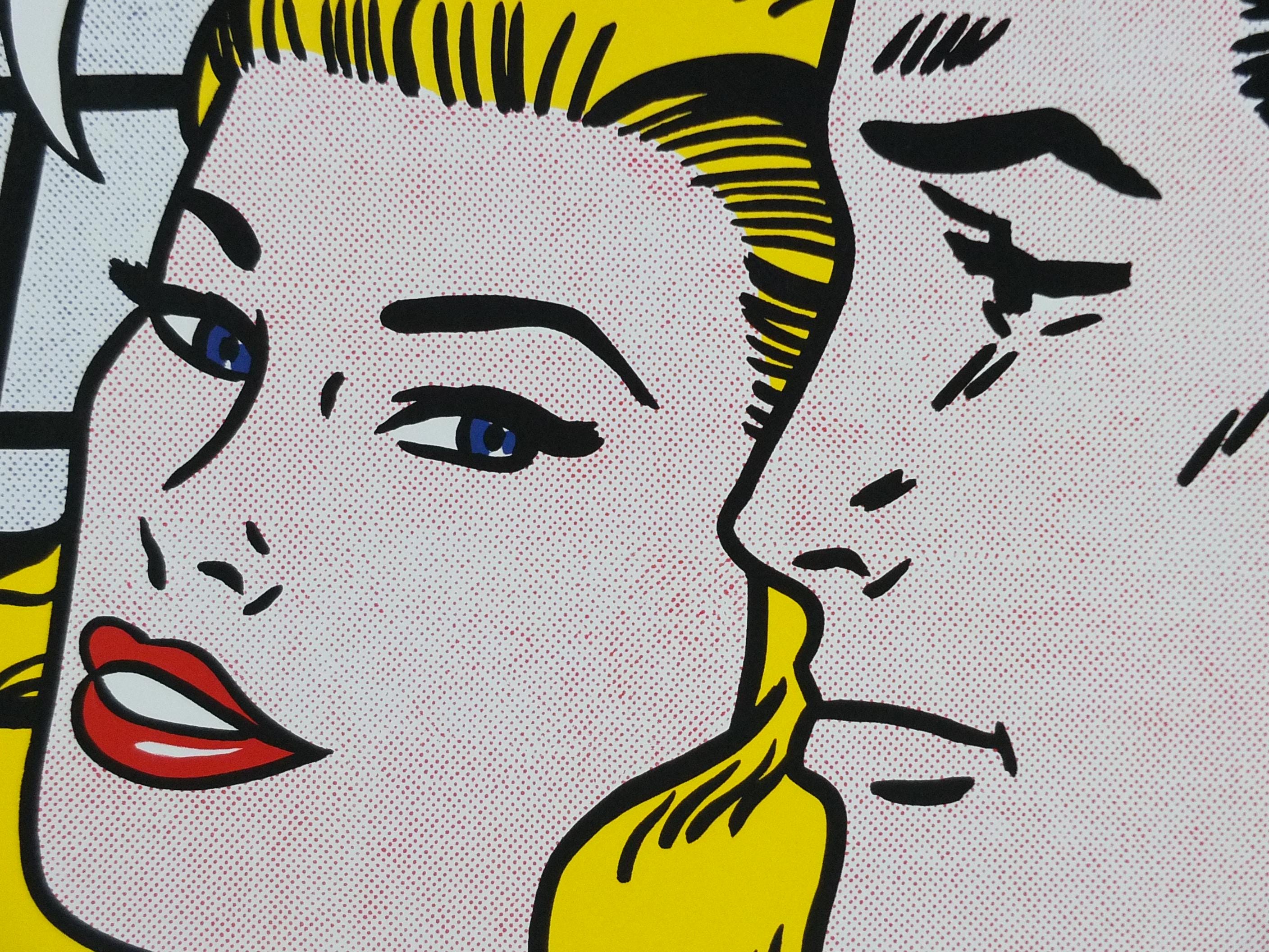 It features a man and a woman in a dramatic, close-up scene, typical of Lichtenstein's appropriation of mid-20th-century romance and war comic book imagery.